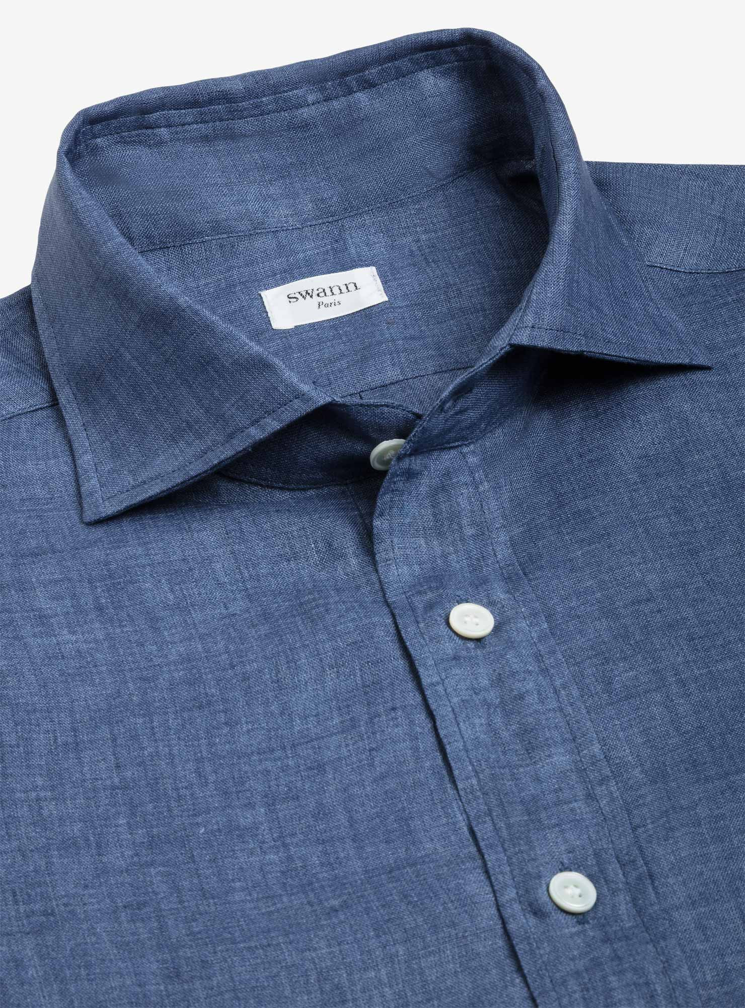 Chemise Lin Uni Bleu
