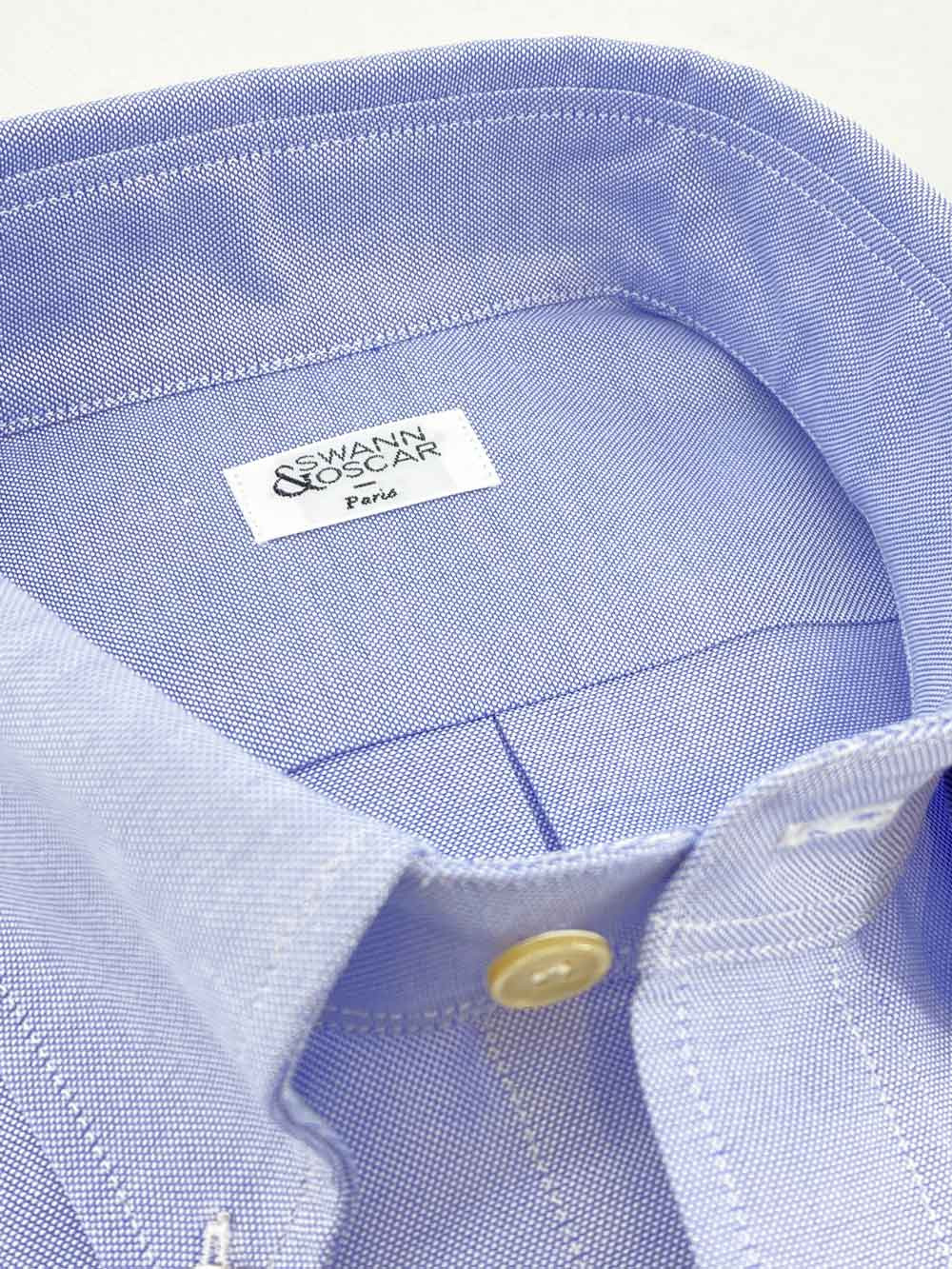 Oxford uni bleu Albini. Un grand classique, une construction solide à porter hiver comme été qui va se patiner et gagner en confort avec le temps. Probablement notre meilleure qualité d'oxford épais.