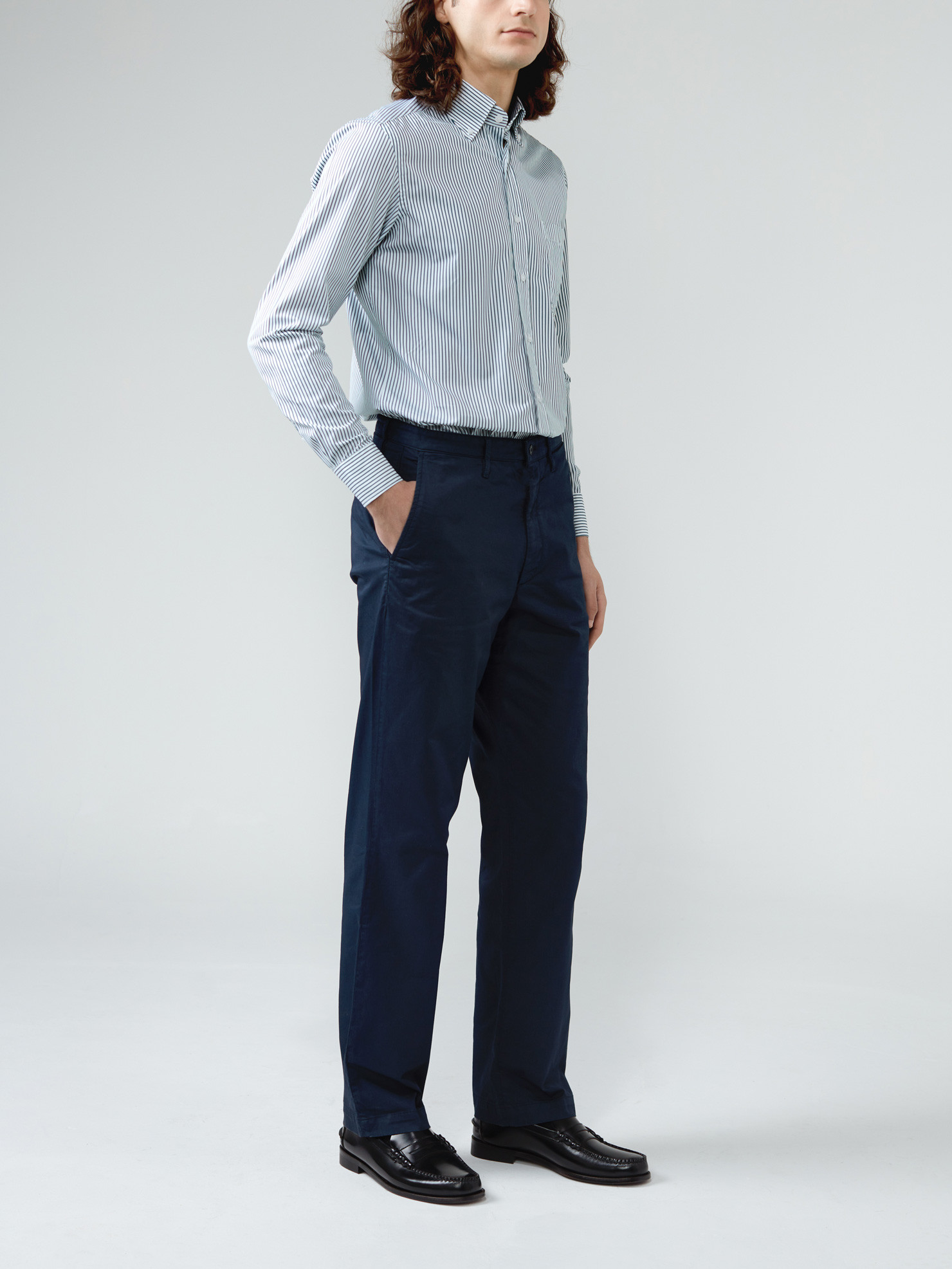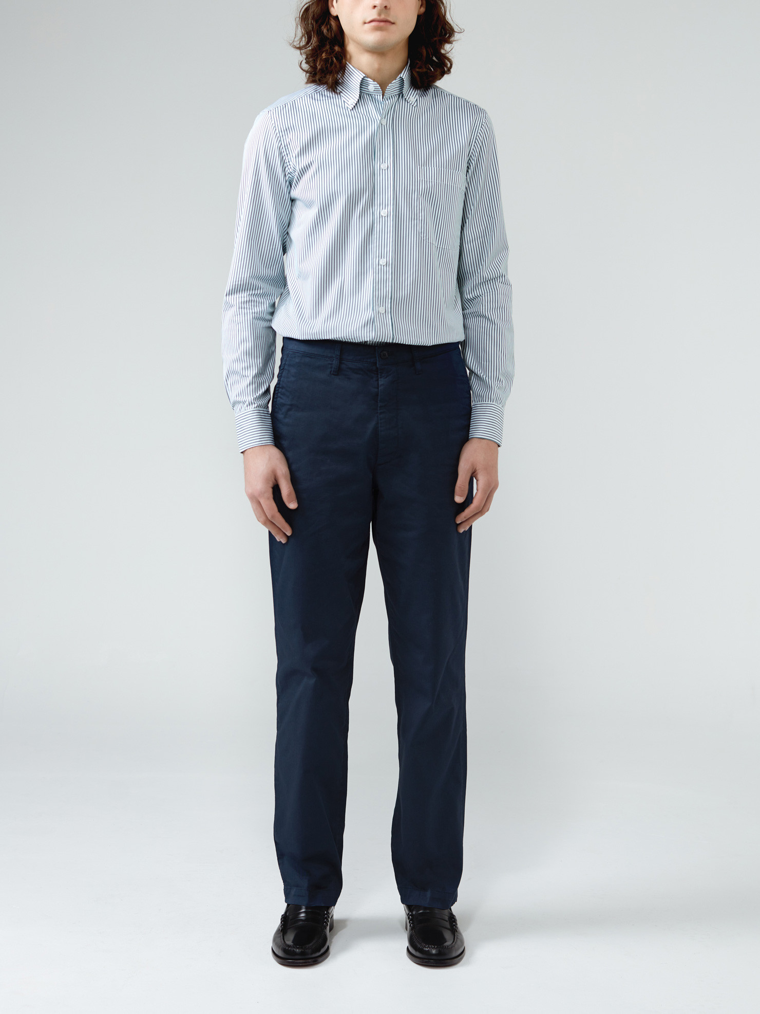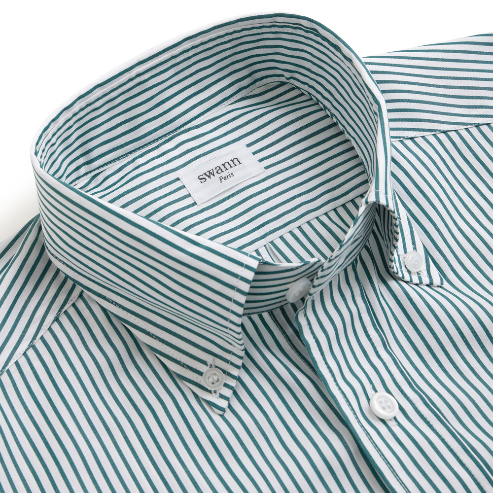 Popeline rayée vert 120's double retors. Larges rayures, idéal pour une chemise d'été élégante sous un blazer ou très décontractée avec un col button down très souple.
