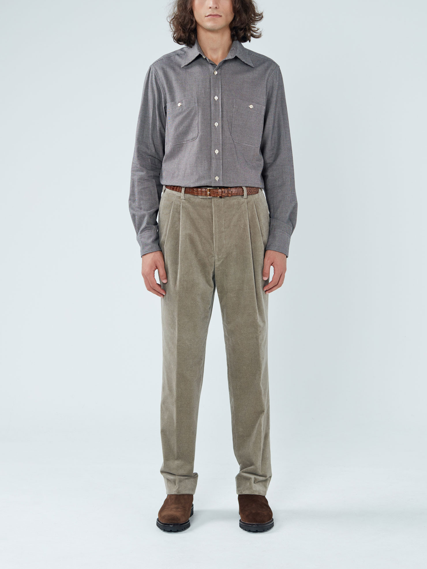 Tous nos vêtements sont coupés à la demande, nous pouvons donc réaliser la coupe ou le style que vous souhaitez indépendamment des modèles présentés ici. Demandez-nous.