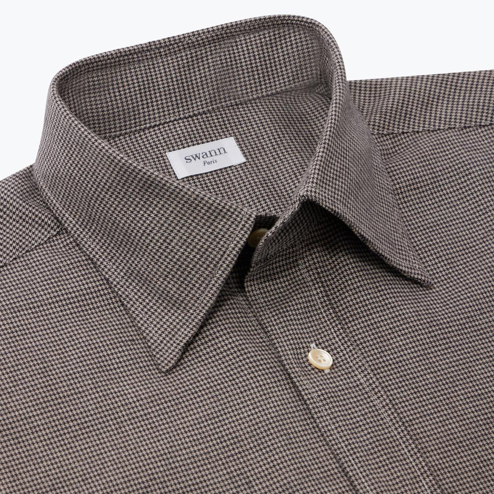 Tissu Thomas Mason en Flannelle de coton, pied de poules marron. Confortable et élégant tout l'hiver, même à Chamonix !