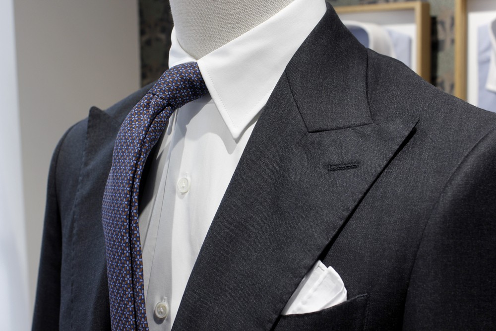 Tous nos vêtements sont coupés à la demande, nous pouvons donc réaliser la coupe ou le style que vous souhaitez indépendamment des modèles présentés ici. Demandez-nous.