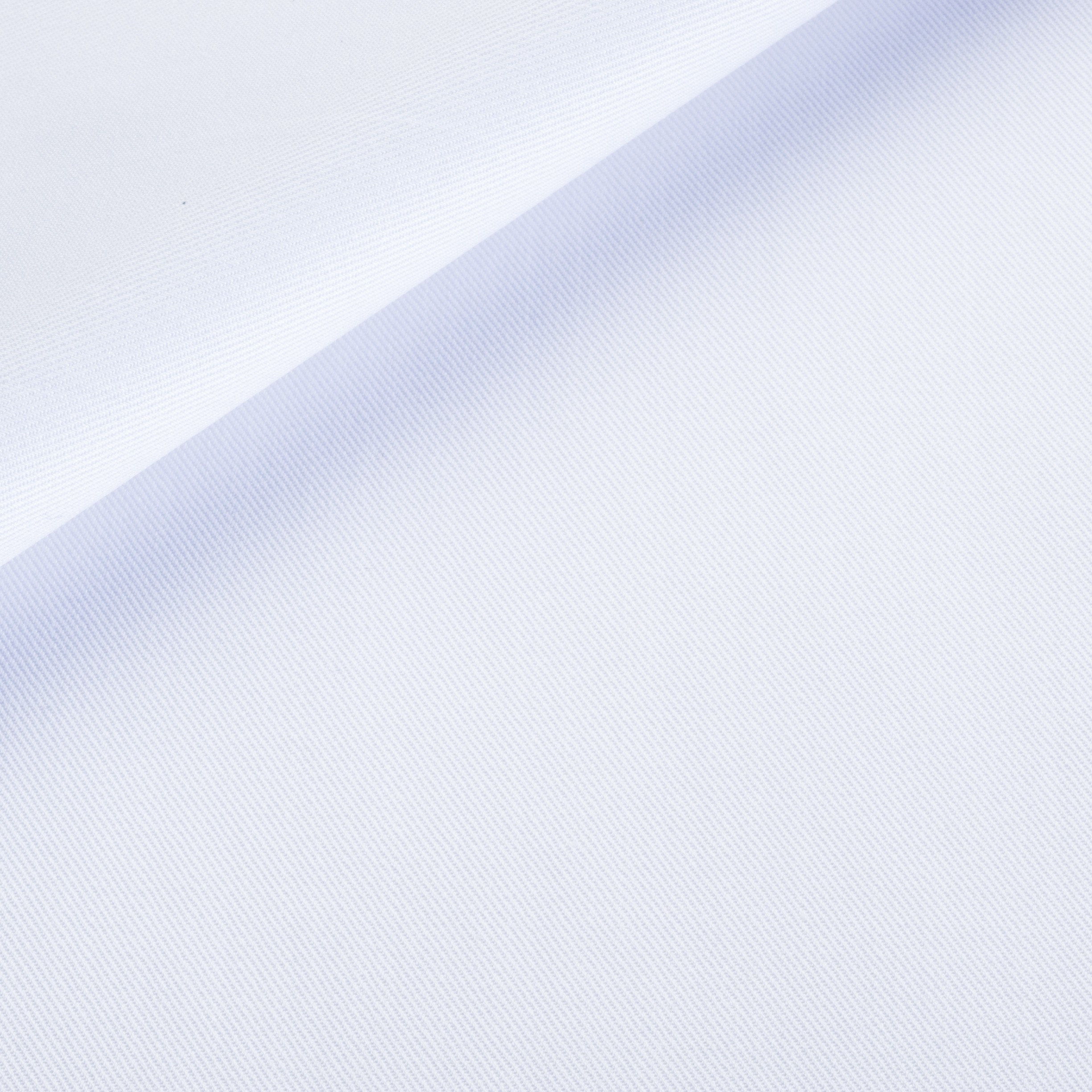 Twill 140's blanc, superbe : très soyeux, léger et non transparent. Pour des chemises habillées d'été et de demi saison, très agréables à porter.