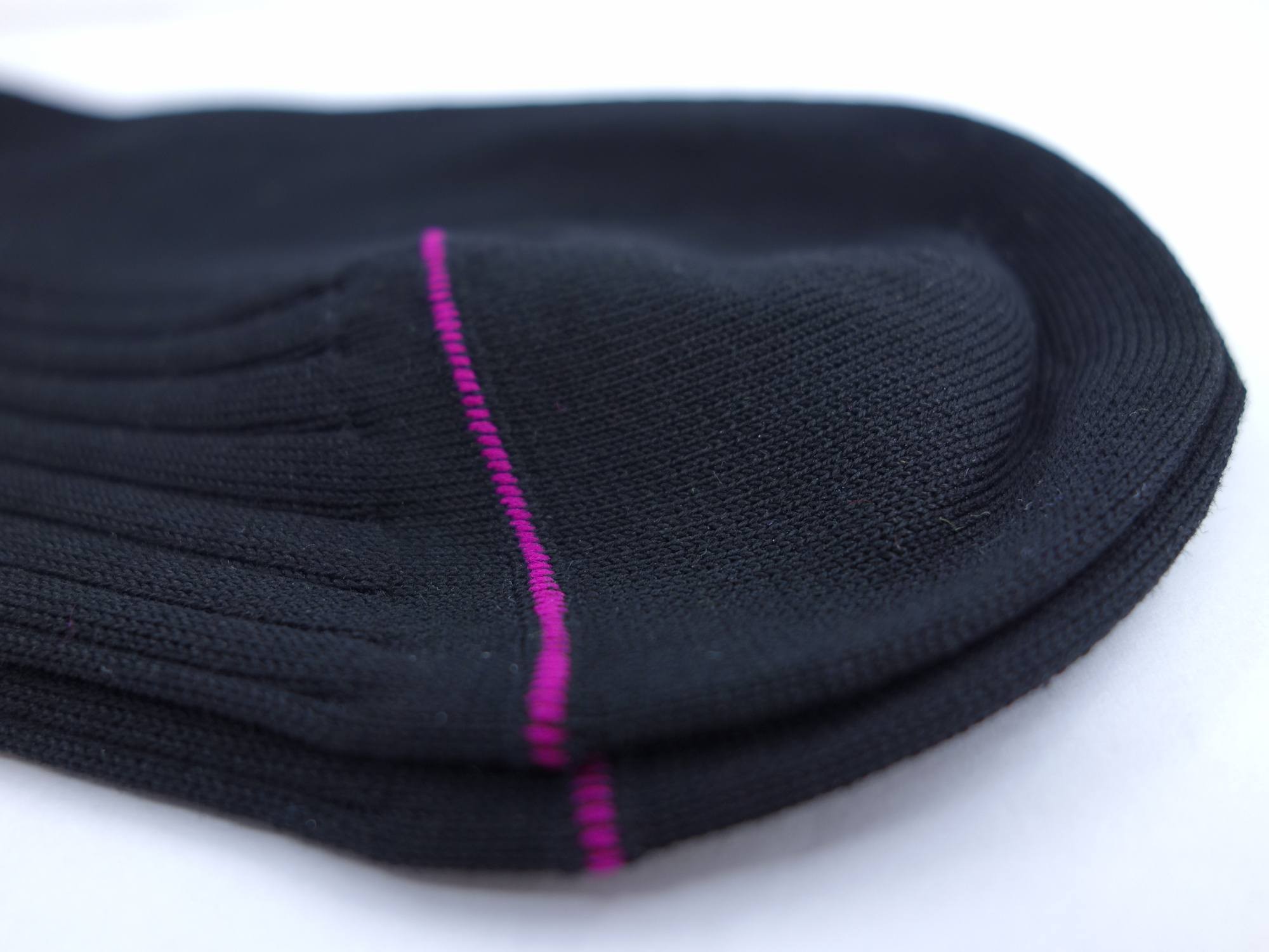 Chaussettes. Afin d'assurer une meilleure longévité à nos chaussettes nous avons associé au fil d'écosse (83%) un fil de Polyamide (17%). Le Polyamide a en fait une très bonne solidité et résiste plus à l'abrasion qu'un fil naturel. Les chaussettes sont légèrement moins fines, mais préservent un très beau rendu grâce à leur composition majoritairement tricotée en double fil d'Ecosse. Les fils très longues fibres de coton (ELS - Extra Long Staples) utilisés, garantissent la plus belle des qualités. Le double fil d'Egypte permet quant à lui d'avoir un meilleur confort et plus de solidité. La pointe de la chaussette est renforcée tout comme le talon. L'élastique très large en haut de tige assure un excellent maintient de la chaussettes tout au long de la journée sans pour autant pour vous serrer le mollet. Ces chaussettes sont remaillées à la main en Italie.