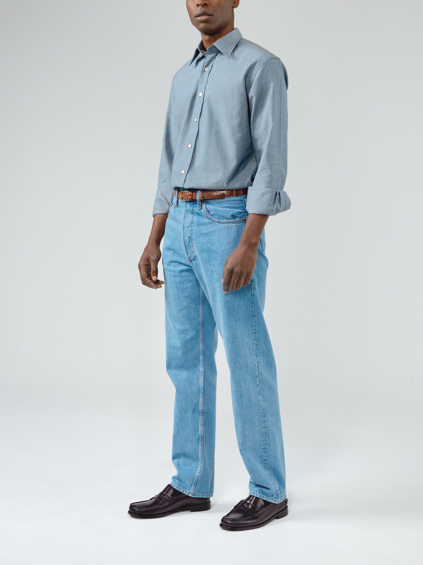 Chemise Chambray Uni Bleu