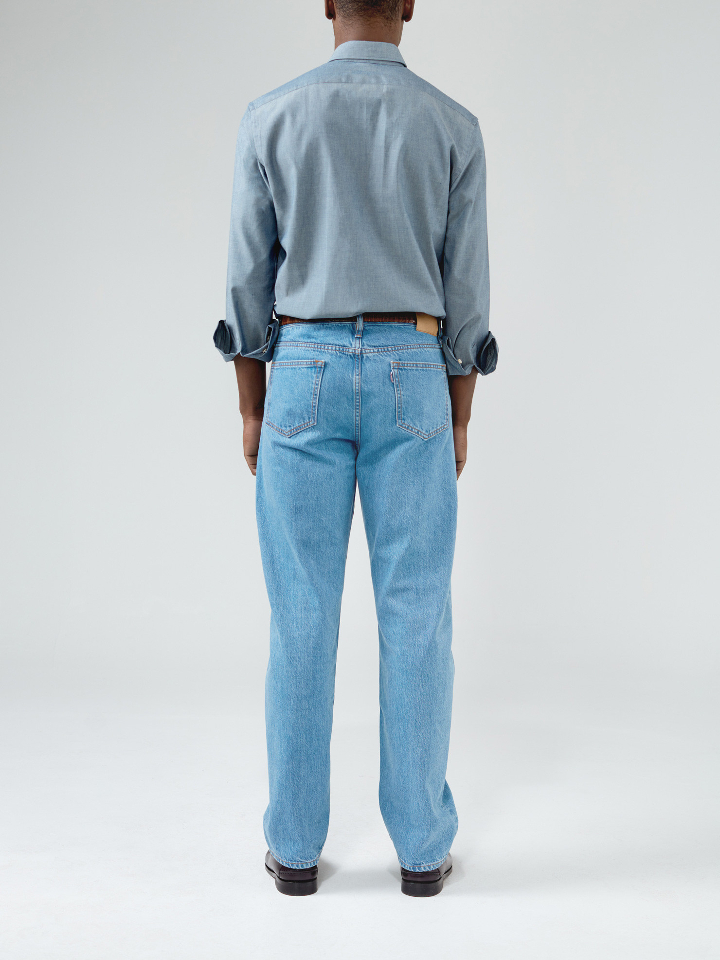 Chambray de chez Albini bleu. Tissu denim qui va délaver au gré des lavages. Avec ce tissu, optez pour un col très souple ou sans triplure pour un rendu très sport.