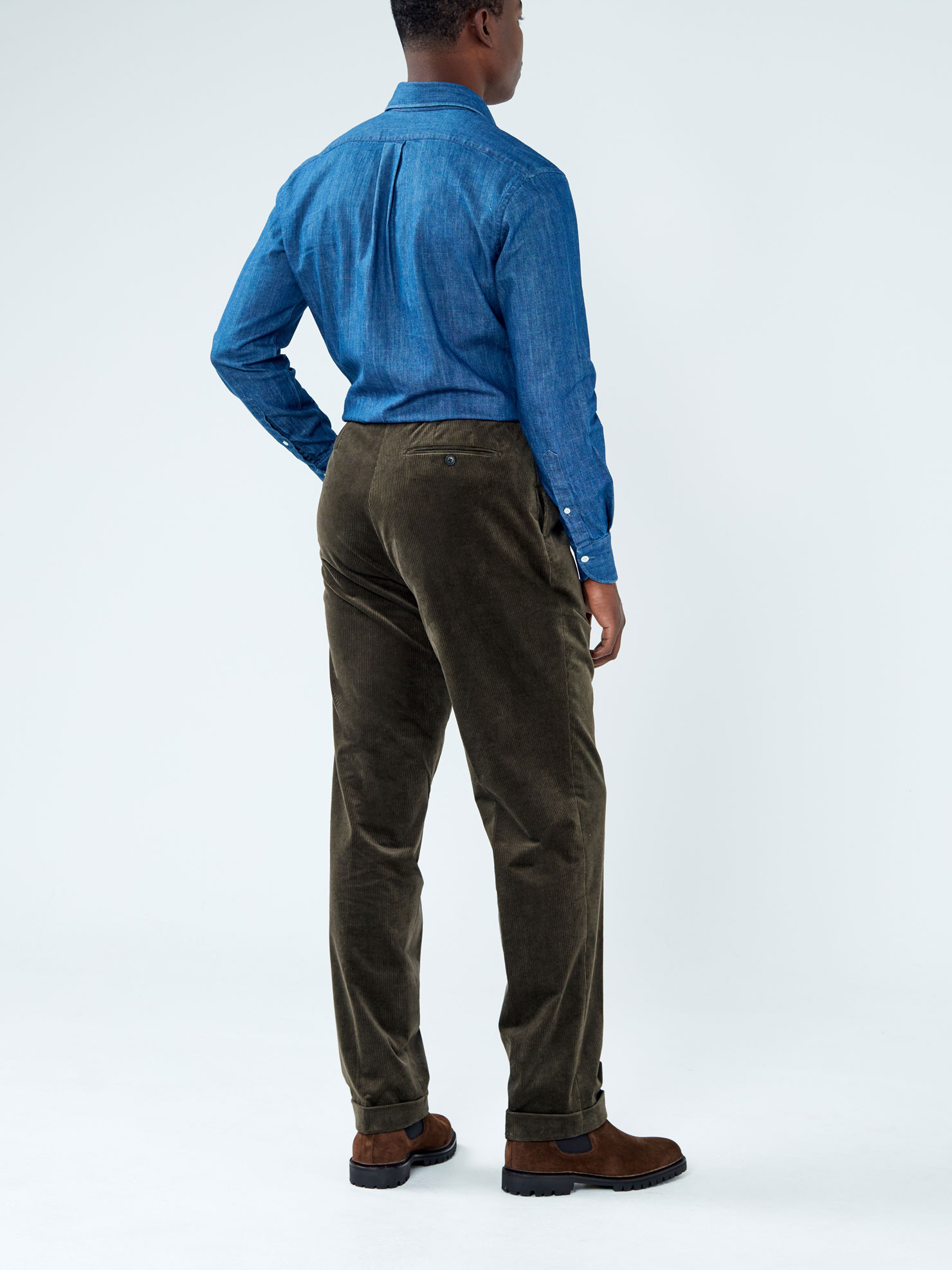 La chemise est montée avant d'être lavée pour lui donner un aspect patiné. Délaver des chemises sur mesure en tenant compte du rétrécissement est une technique complexe que notre atelier maitrise à la perfection. Tout est fait à la main, depuis le patron jusqu'au montage, en passant par la coupe.