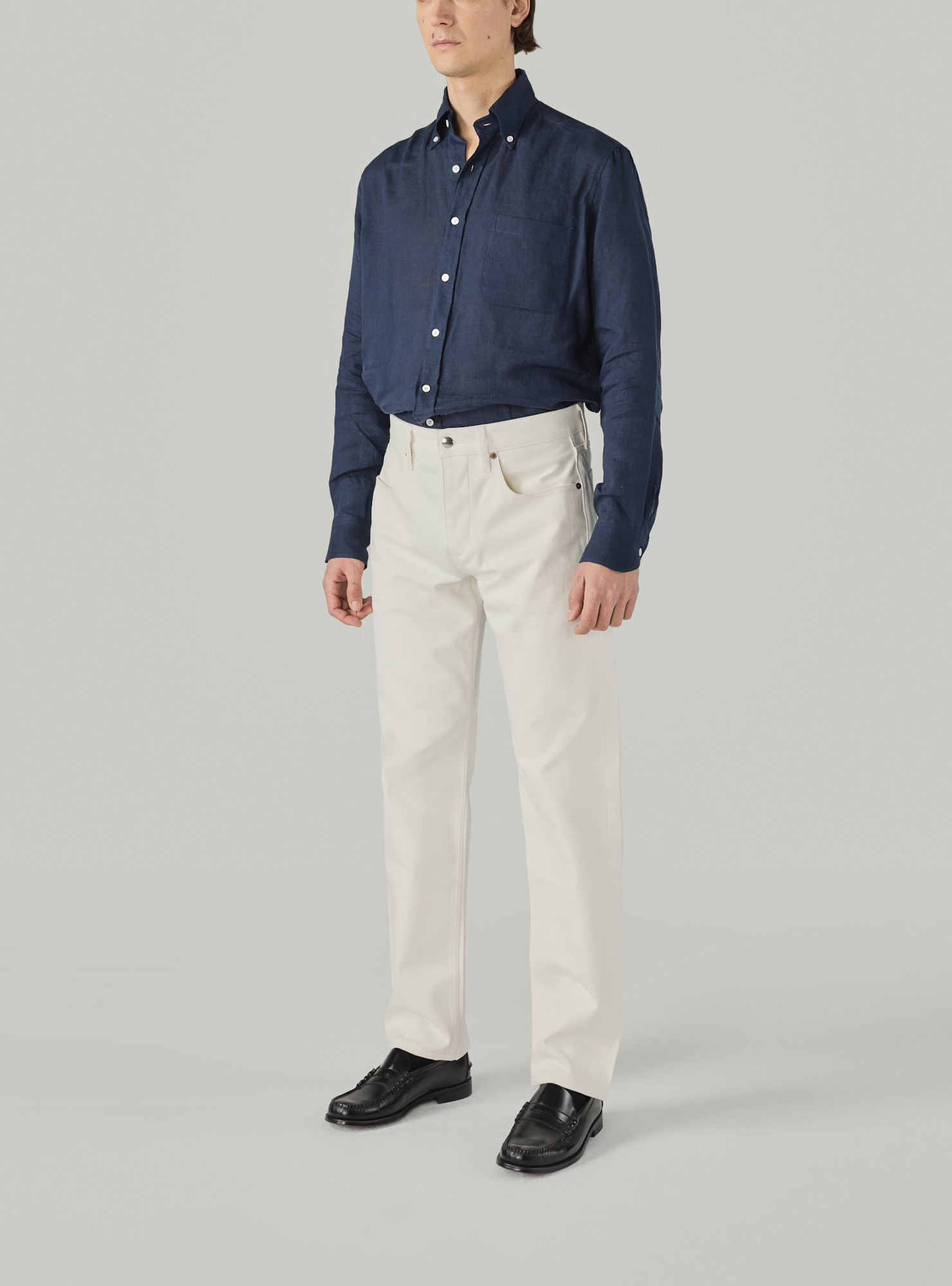 Tous nos vêtements sont coupés à la demande, nous pouvons donc réaliser la coupe ou le style que vous souhaitez indépendamment des modèles présentés ici. Demandez-nous.