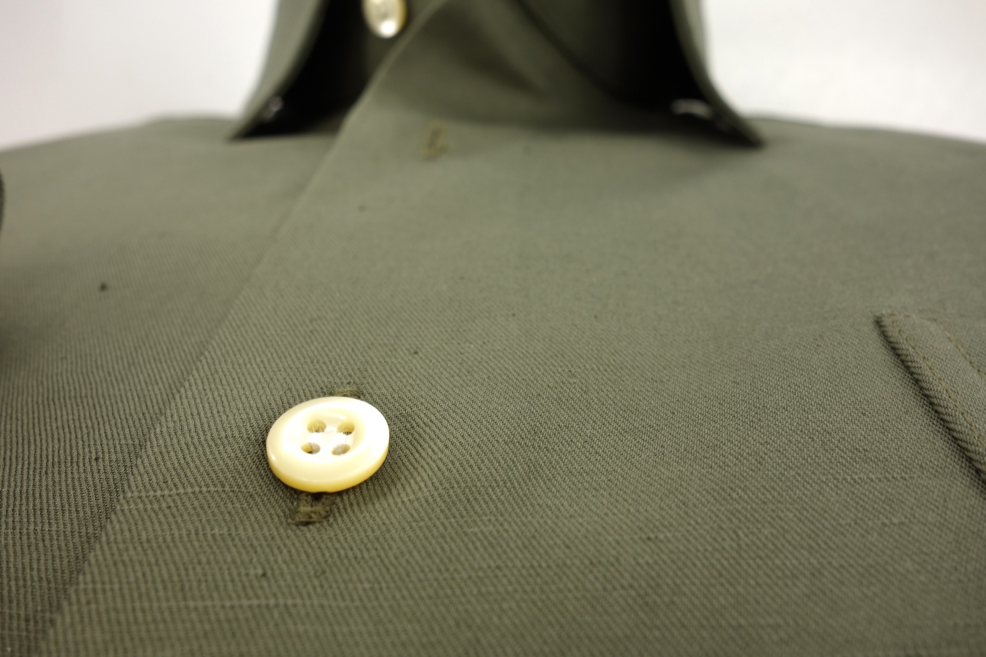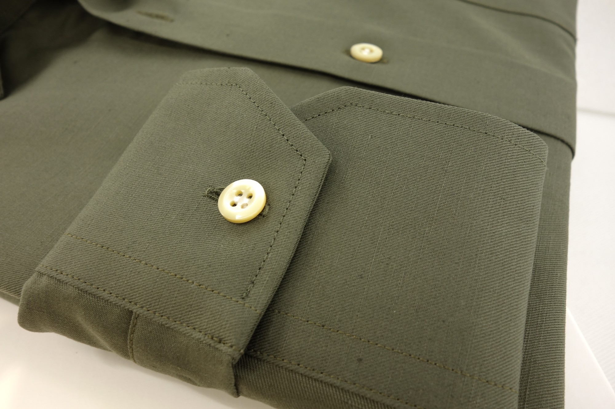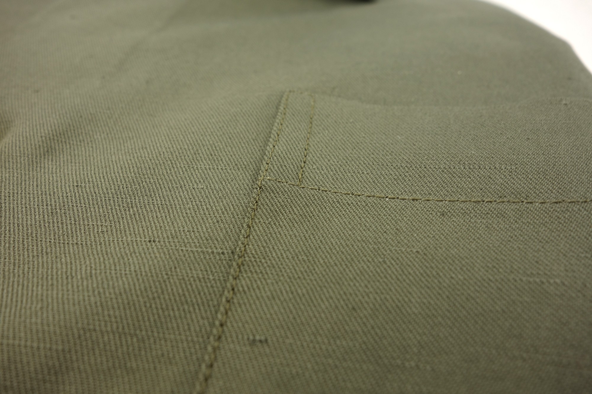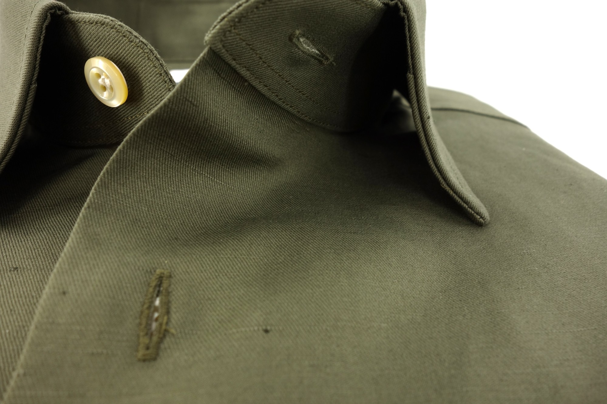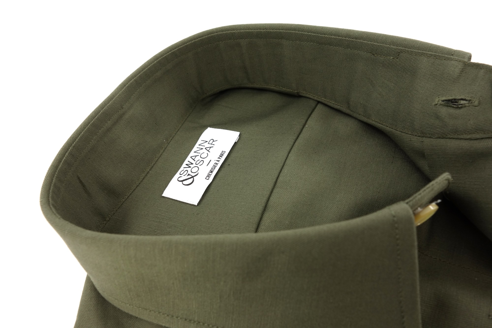Gabardine de coton et lin kaki C'est un tissu idéal pour des chemises type saharienne avec poches plaquées à rabat. L'été sur la plage ou l'hiver dans le Sahel !