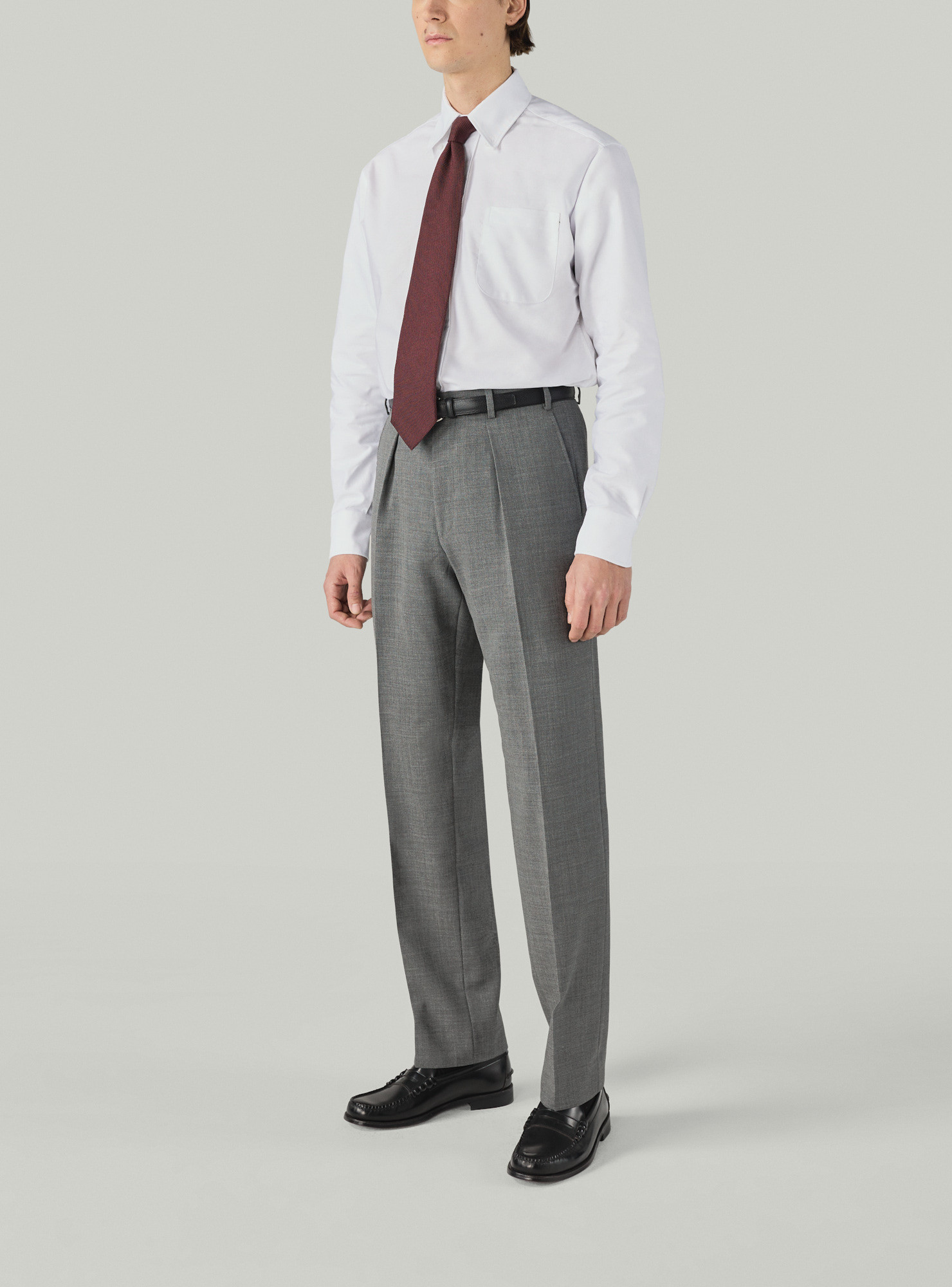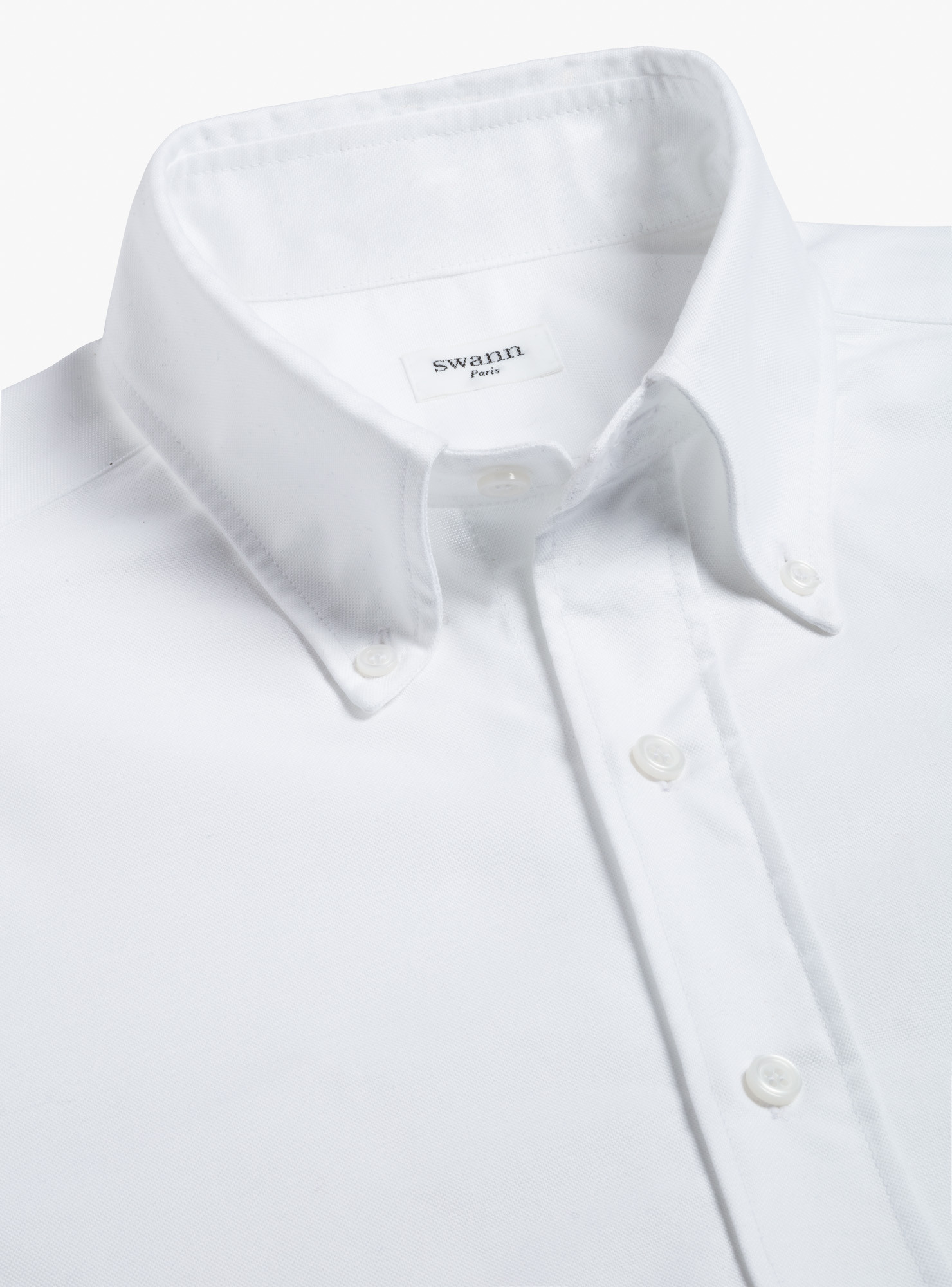 Oxford épais uni blanc, tissé en Italie. Un tissu composé de fils très solides et particulièrement épais comme l'était l'oxford originel. Cette qualité d'oxford est une réédition d'une qualité de tissu légendaire de chez Thomas Mason