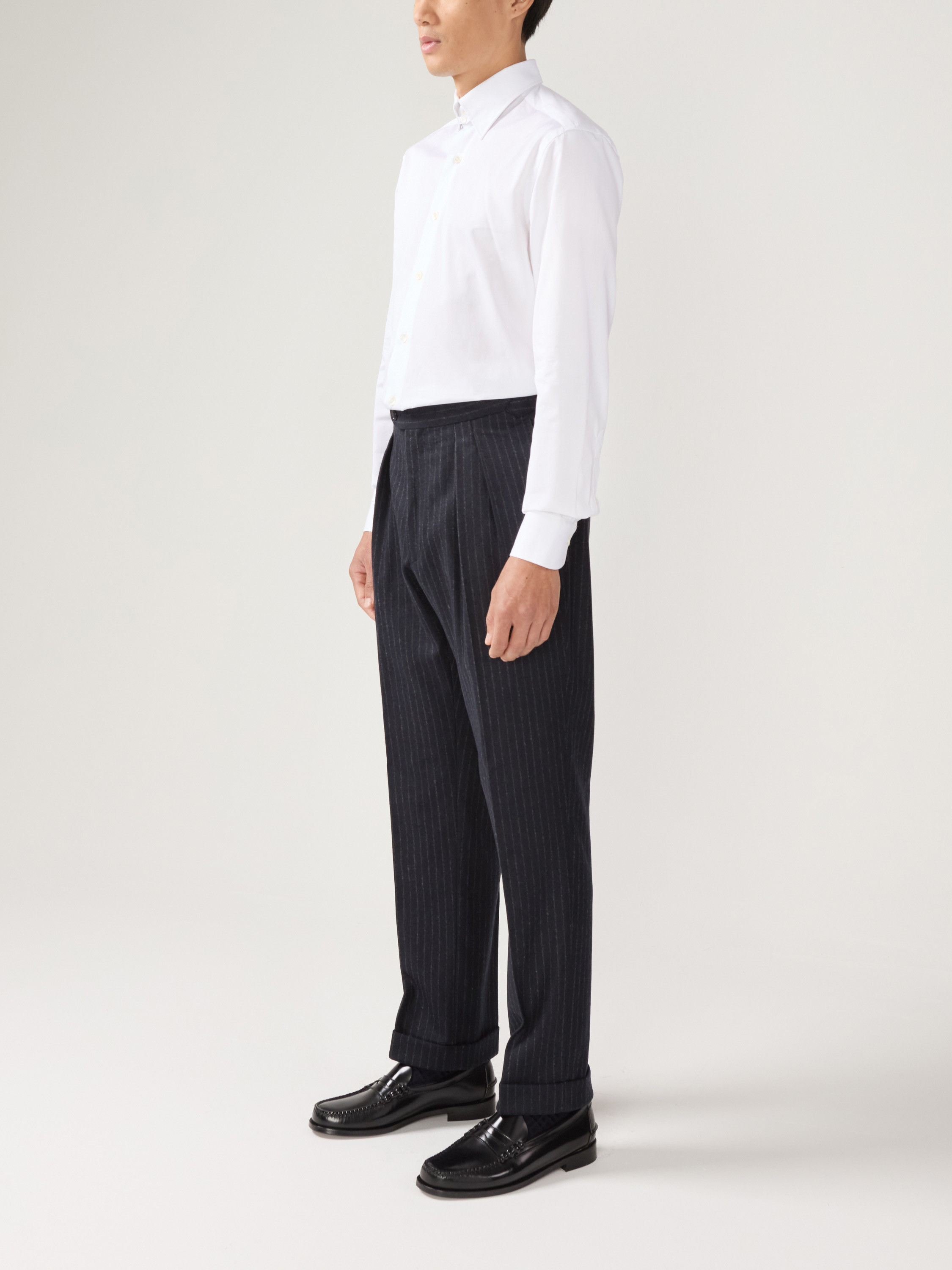 Tous nos vêtements sont coupés à la demande, nous pouvons donc réaliser la coupe ou le style que vous souhaitez indépendamment des modèles présentés ici. Demandez-nous.
