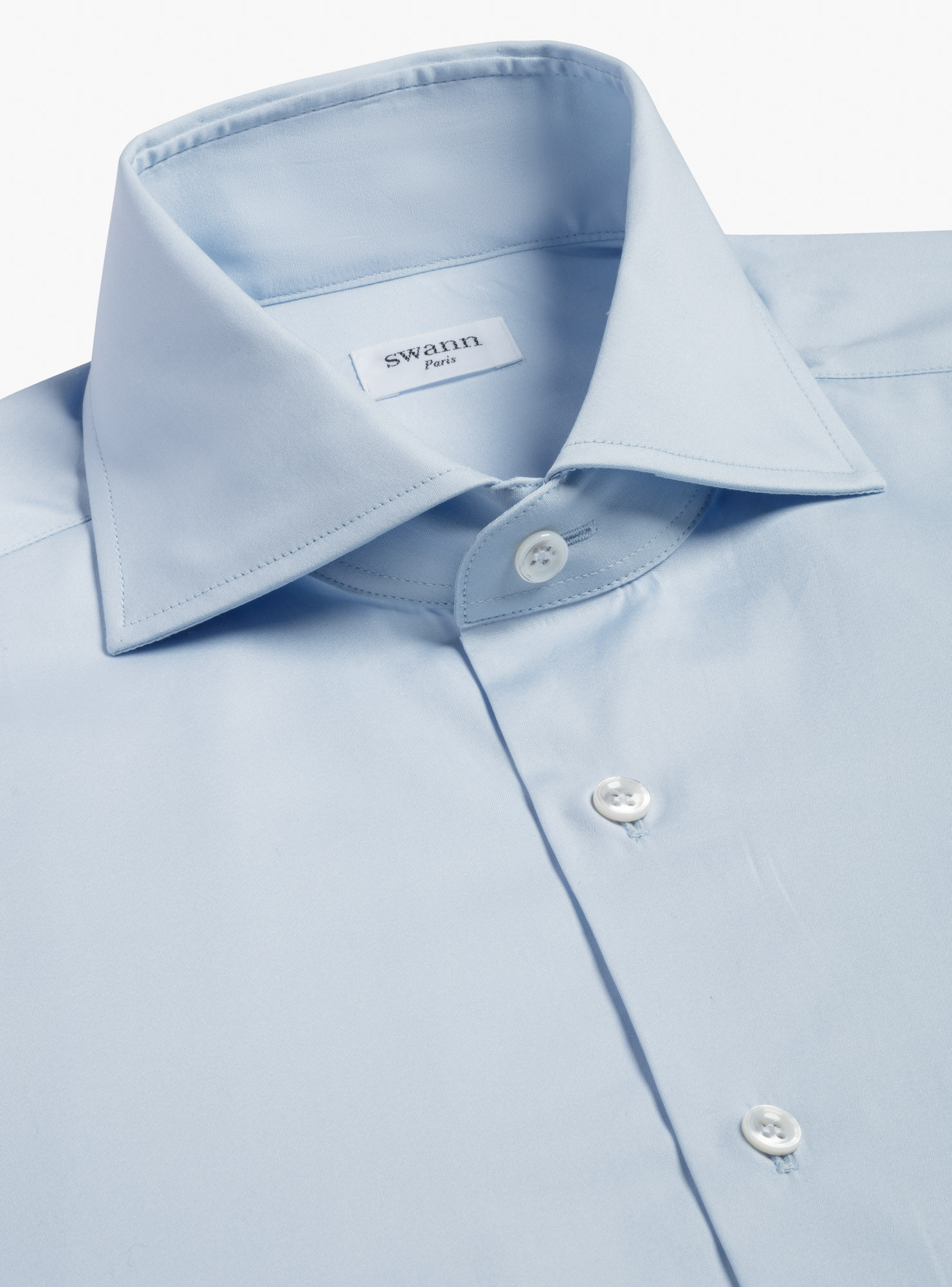 Popeline Albini bleu ciel double retors. Un bleu pâle élégant, idéal pour une chemise habillée.