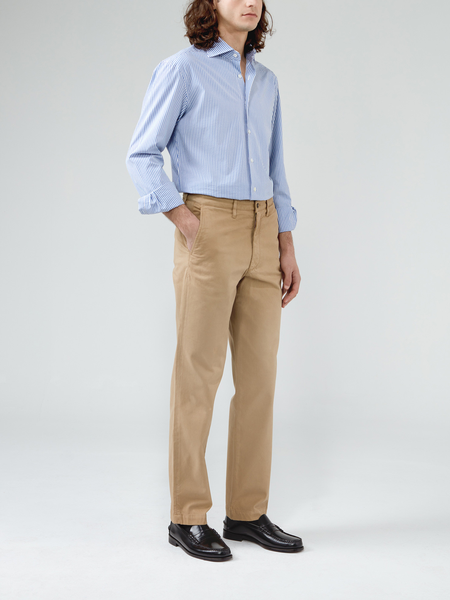Tous nos vêtements sont coupés à la demande, nous pouvons donc réaliser la coupe ou le style que vous souhaitez indépendamment des modèles présentés ici. Demandez-nous.