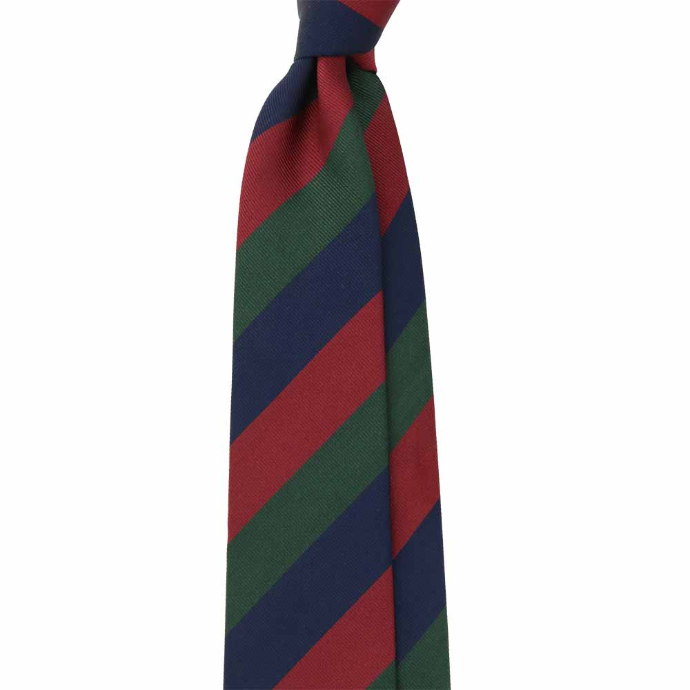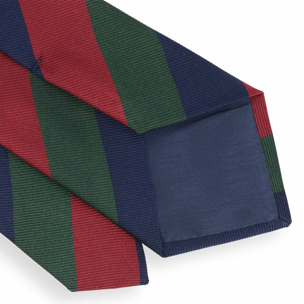 Cravate club bleu, vert, rouge. Très élégant, inspiré des cravates "regimental" des corps d'armée anglais. Elle est fabriquée à Paris chez une façonnier centenaire.