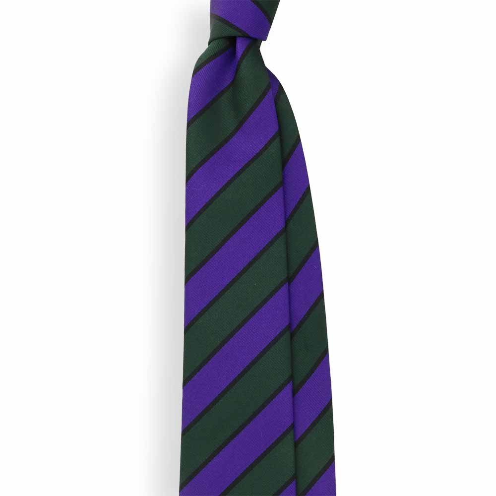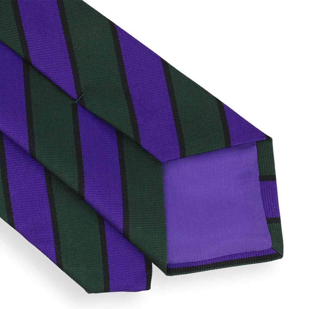 Cravate club vert et violet. Un peps fou ce club, le meilleur dessin pour écumer les bars le soir une pinthe à la main : dignité gardée avec un pantalon de flanelle et une chemise en chambray. Elle est fabriquée à Paris chez une façonnier centenaire.
