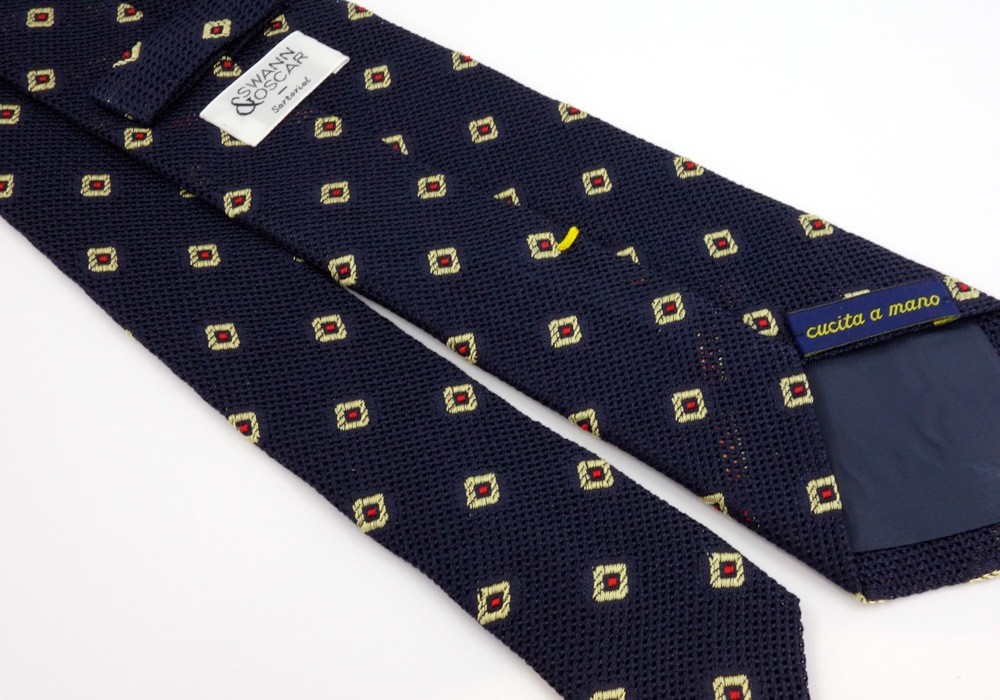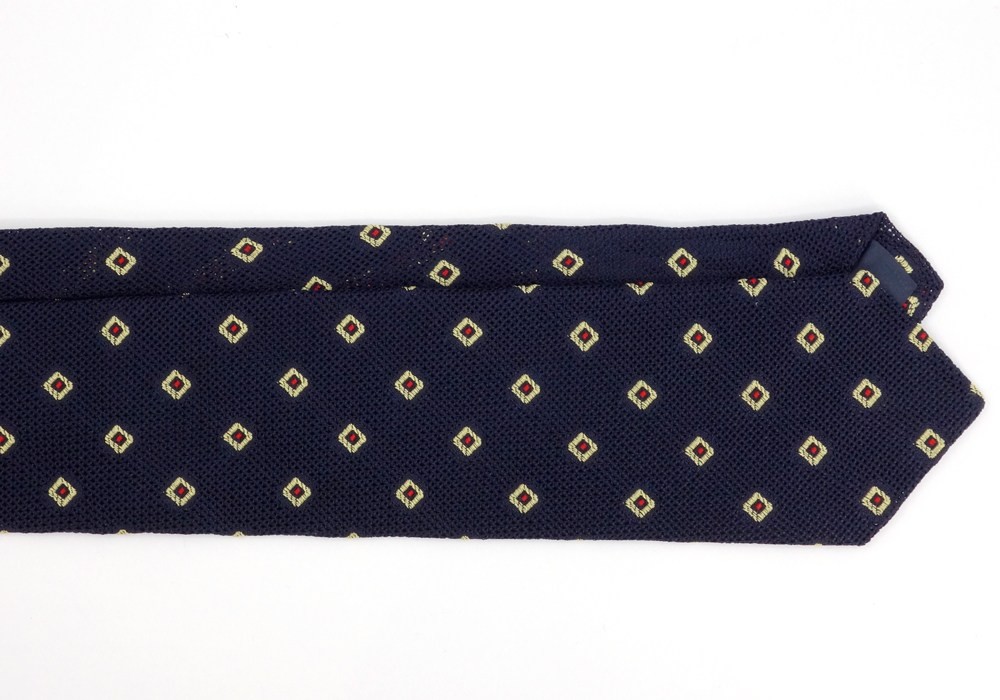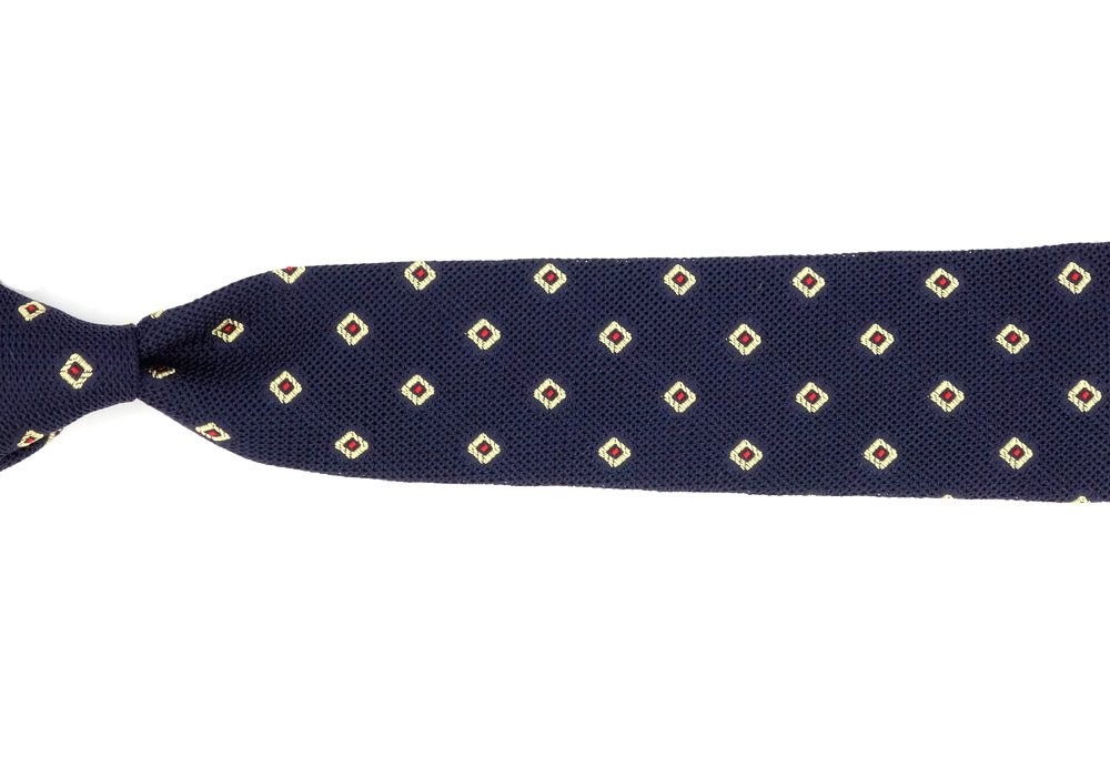 Le jacquard est une technique de tissage pour broder un motif. Un peu vintage, mais pas pour autant vieux-jeu ! Ce motif apporte de la couleur à une cravate au fond basique comme la grenadine de soie bleu marine.