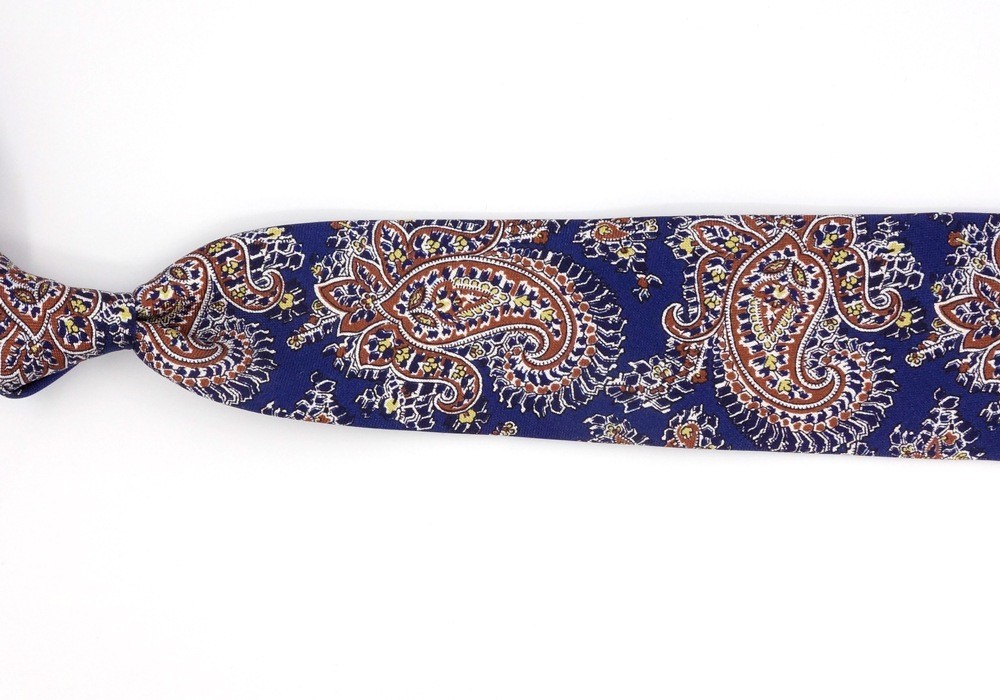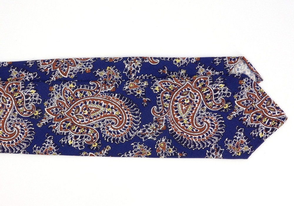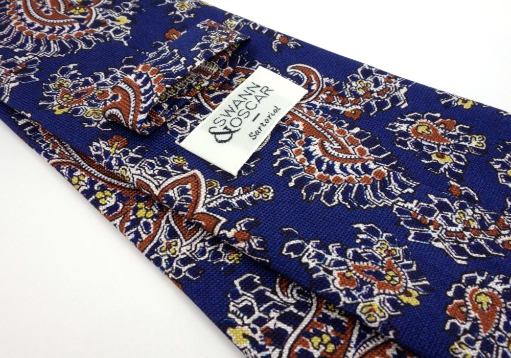 Cette cravate très légère possède un motif imprimé Paisley. Très old school, ce genre d'imprimé revient à la mode chez les amateurs de cravate. Sa construction souple et non doublée permet de donner beaucoup de fluidité pour une tenue d'été.