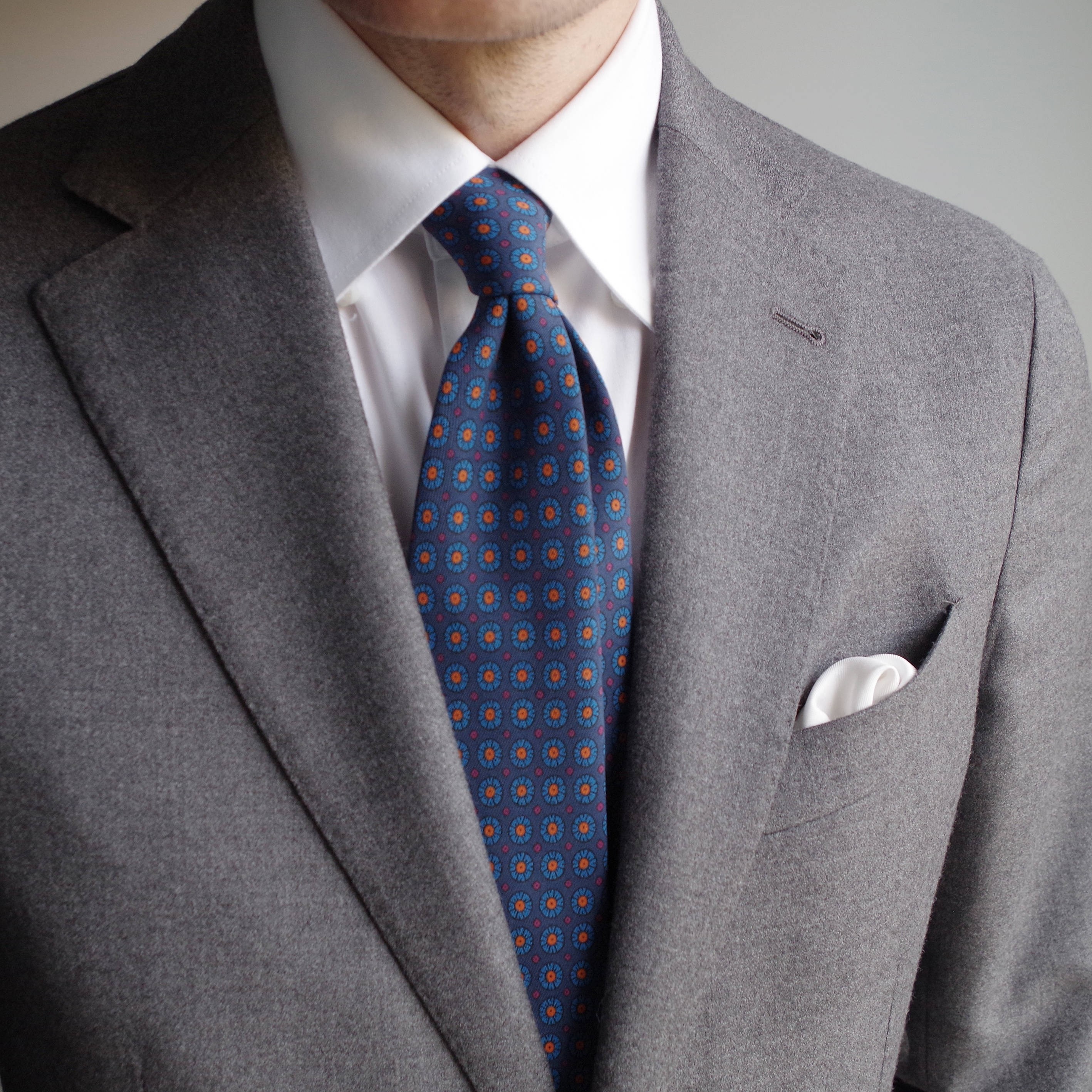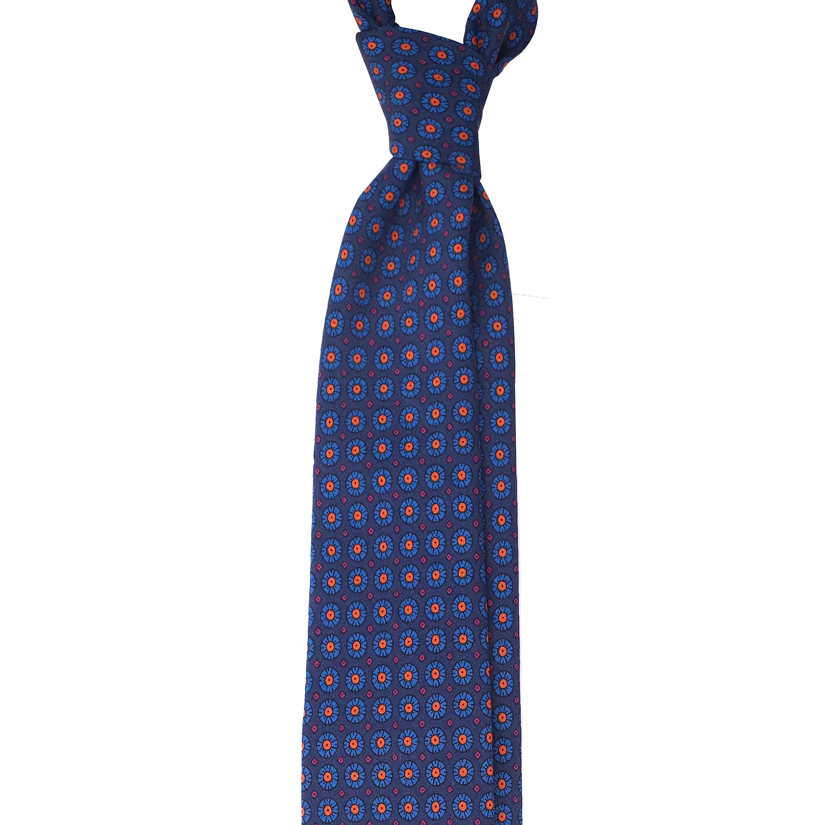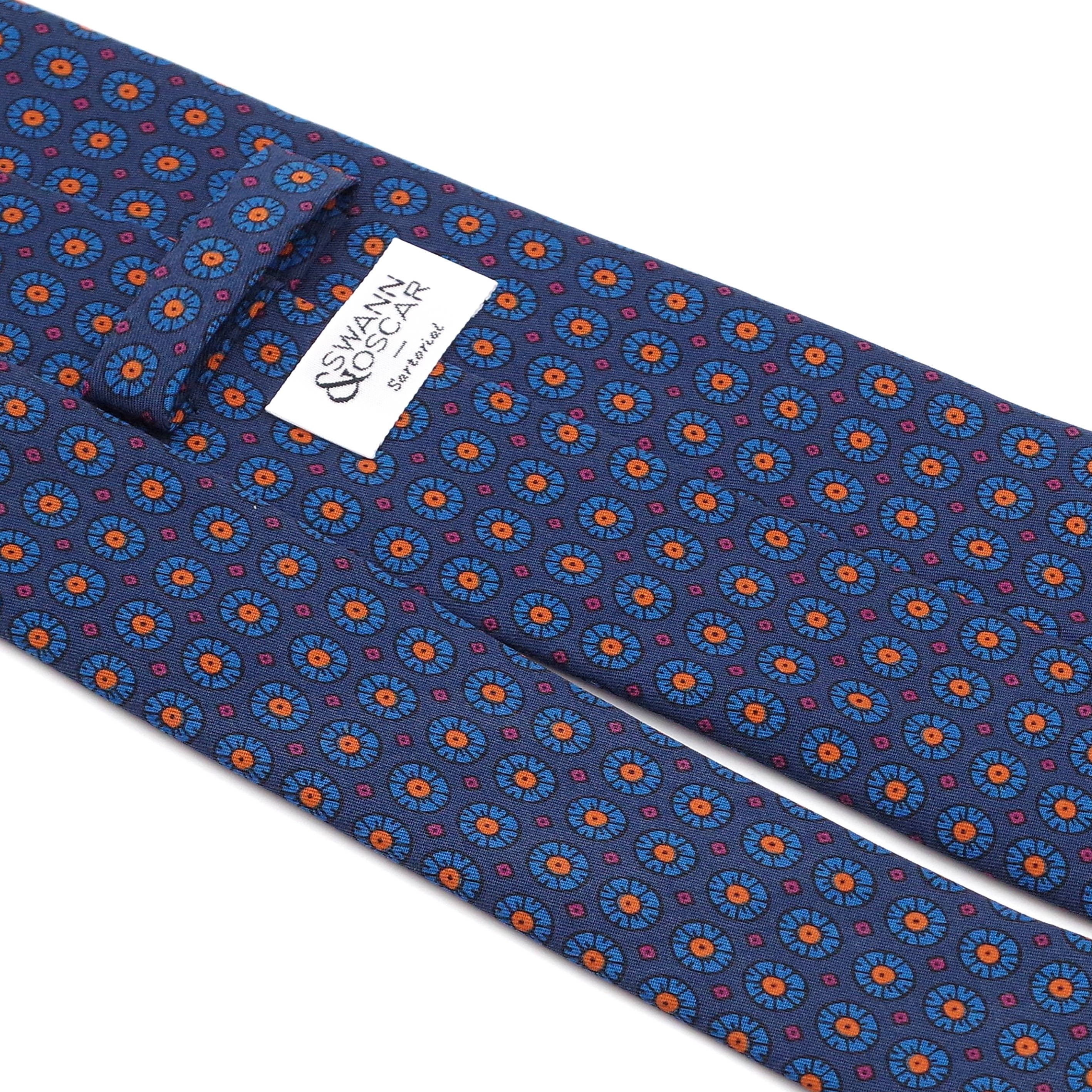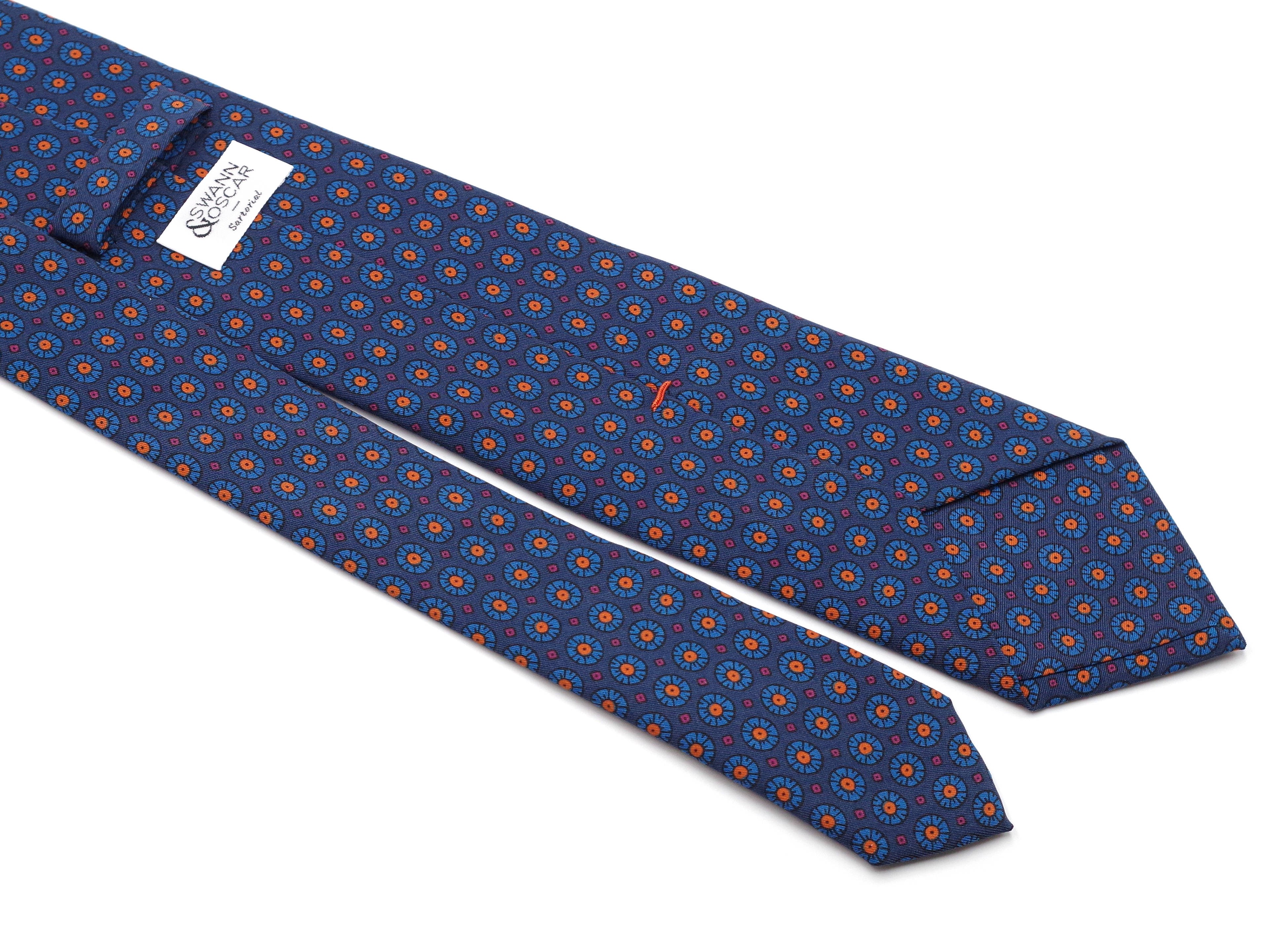 Cette cravate de soie  d'un bleu "cyan" la rend particulièrement luxueuse, toujours dans un esprit floral. Le rappel des fleurs du motif lui donne de l'originalité. Elle ira parfaitement avec un costume gris et une chemise blanche qui la mettra en valeur et une pochette blanche de soie. Vous pourrez aussi oser un style plus décalé et très Italien.