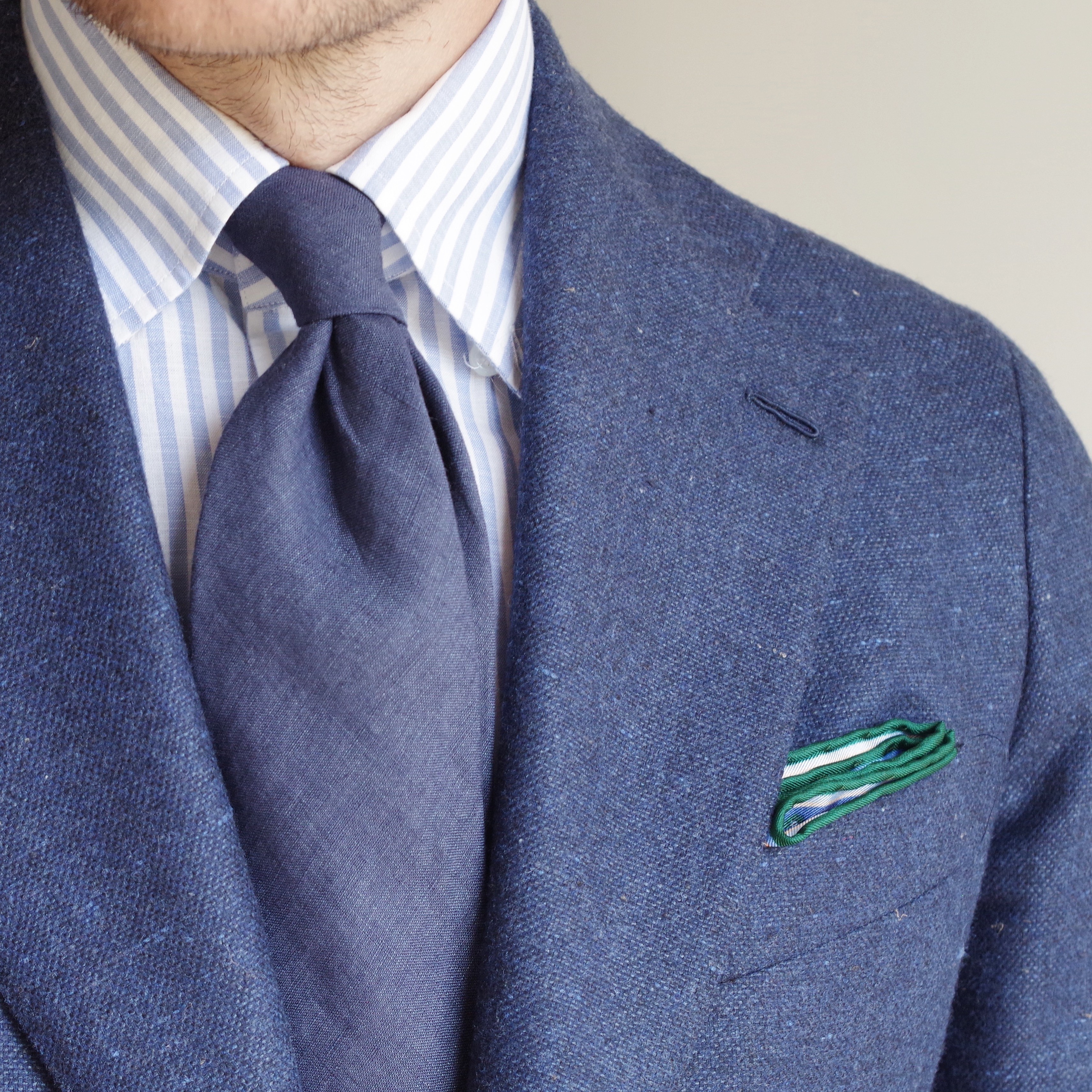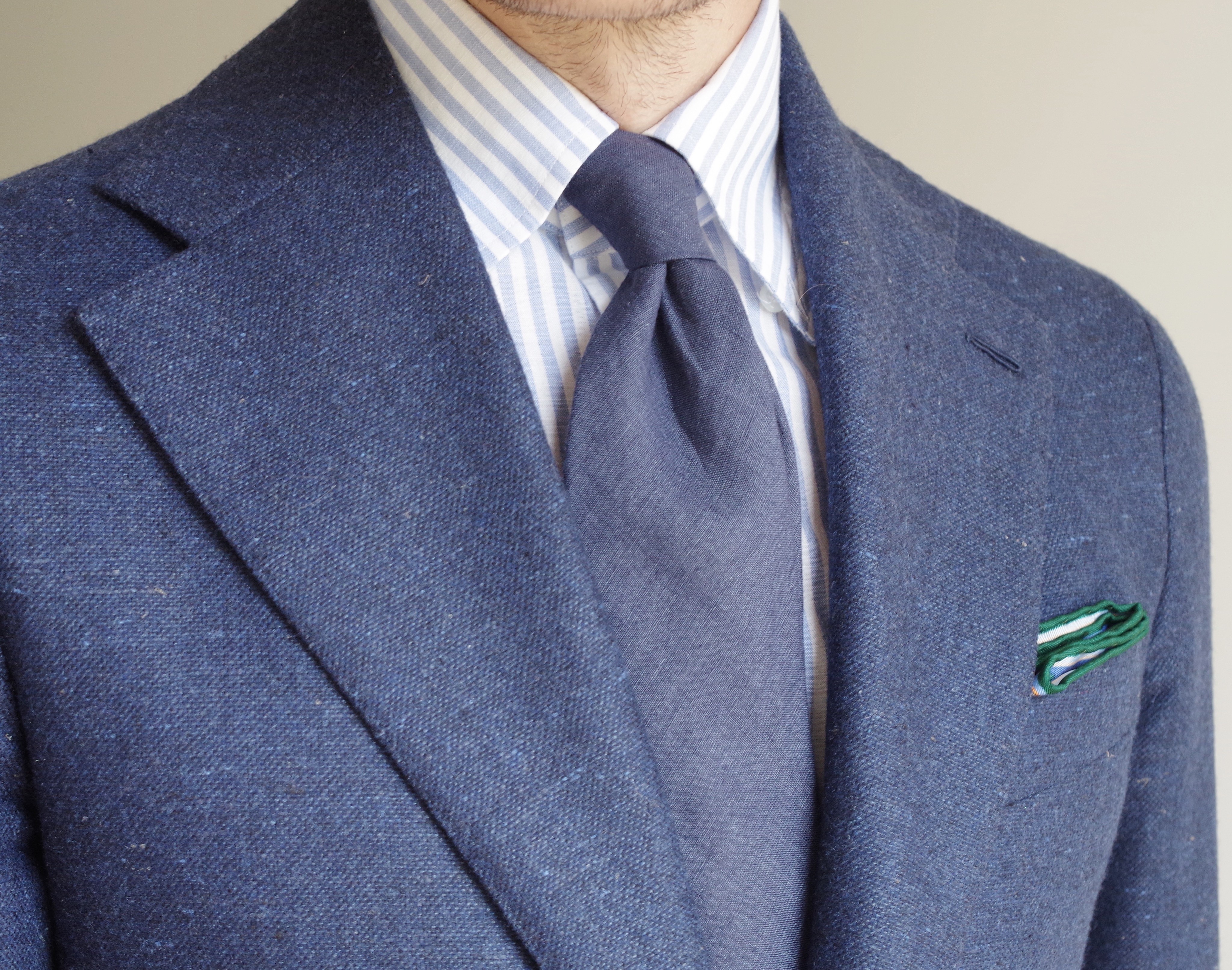 Voici un tissu spécial qui vous fera penser également à la matière d’une ramie japonnaise. La ramie est un tissu très fort et naturel, fabriqué à partir de l’ortie. Cependant le lin est à présent plus courant et vous retrouvez dans cette cravate un merveilleux tissu estival et légèrement décontracté. Cette cravate pourra s’associer à l’ensemble de vos tenues d’été. Elle pourra s’imaginer avec une pochette à motifs de fleurs.
