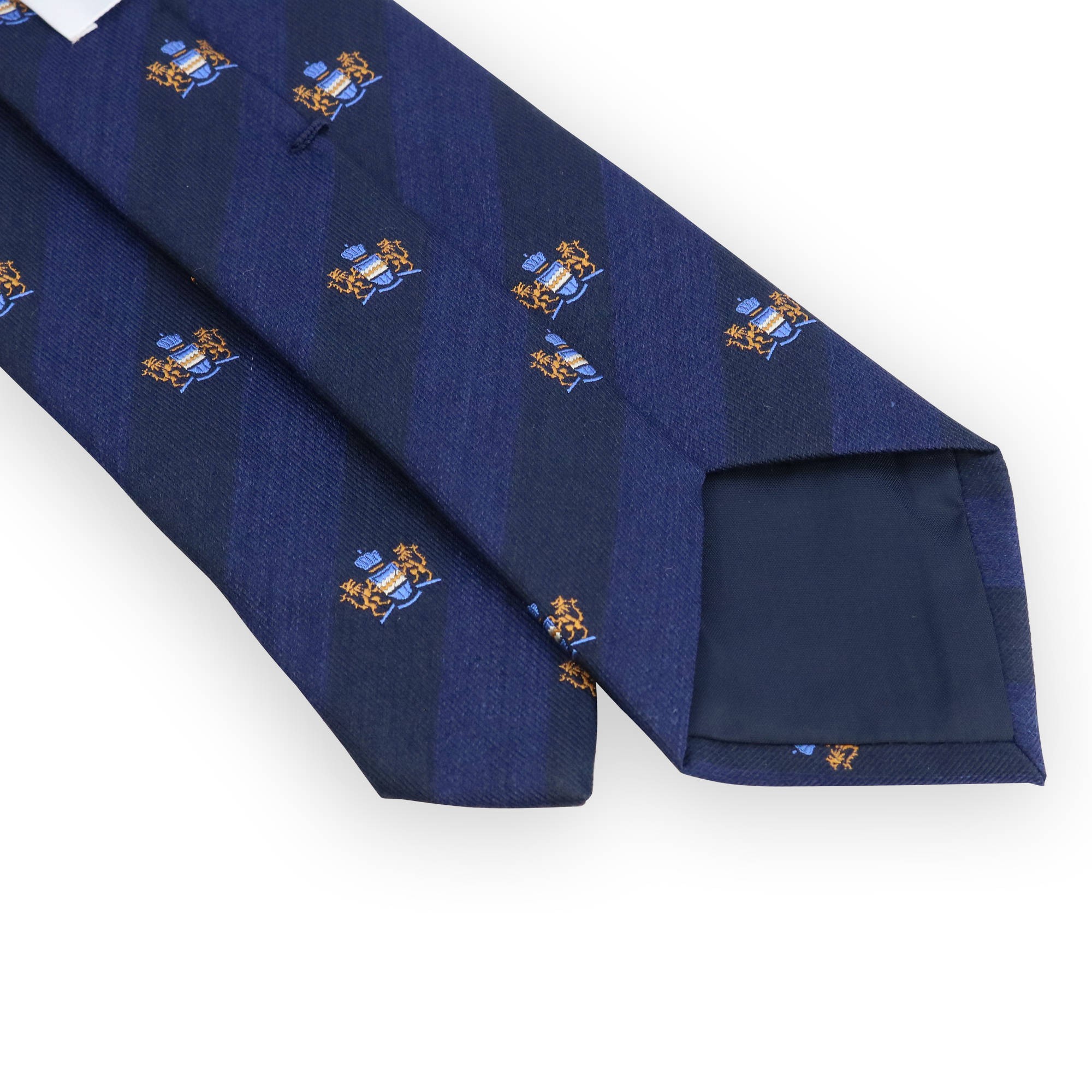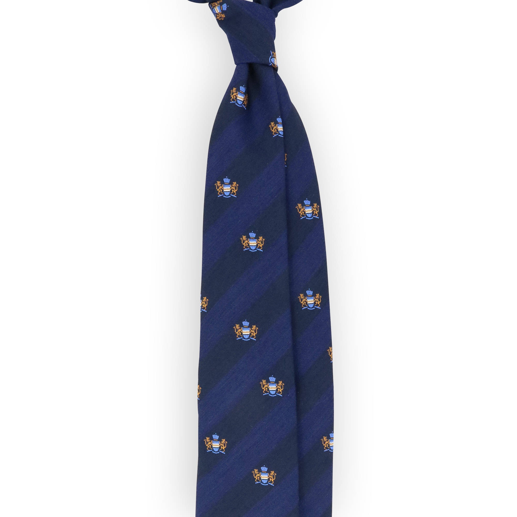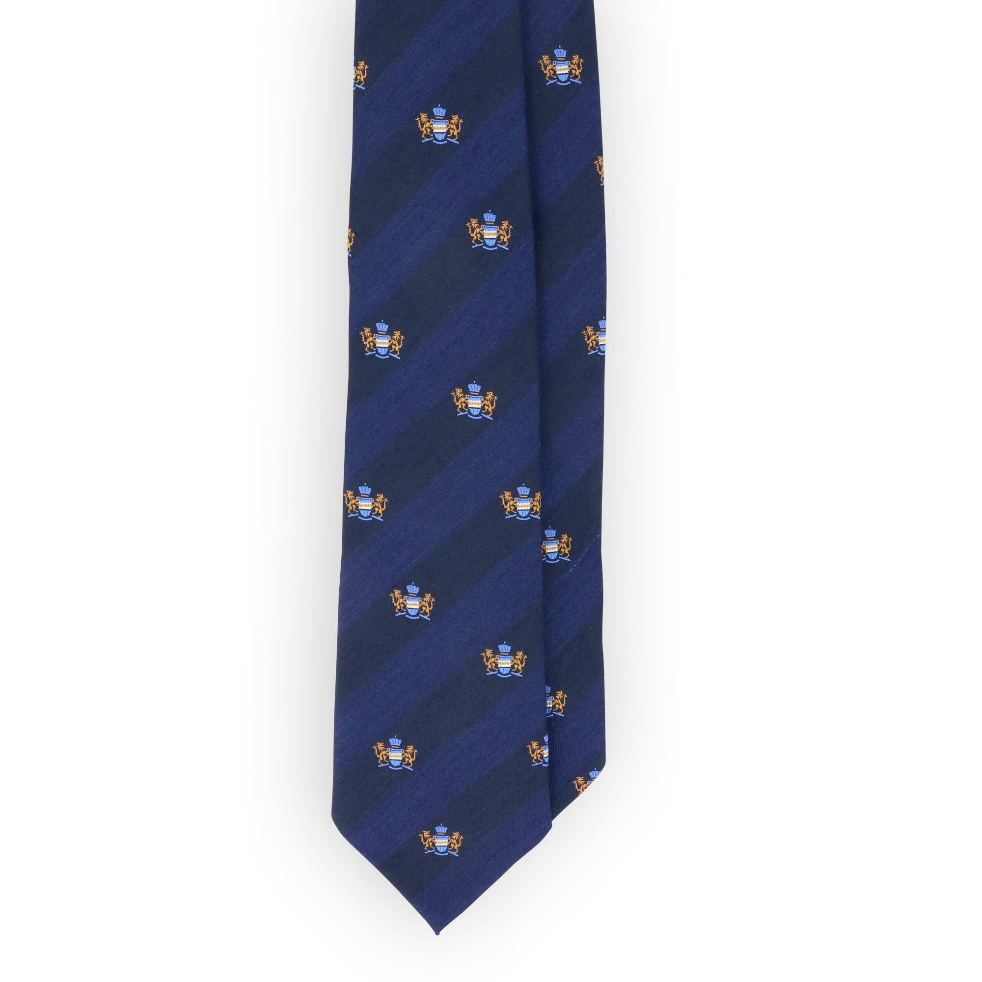 Cravate club marine et bleu blason doré