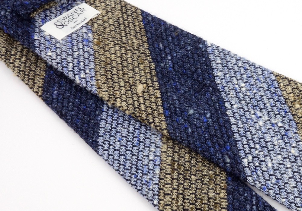 Une cravate en soie shantung, très texturée pour les amateurs de cravate. Son tissu est très surprenant, sec et "grossier", cette cravate a beaucoup de relief ce qui recquiert une parfaite connaissance du nouage de cravate pour la porter efficacement. Elle est aussi terriblement stylée ce qui vous différenciera facilement des autres...