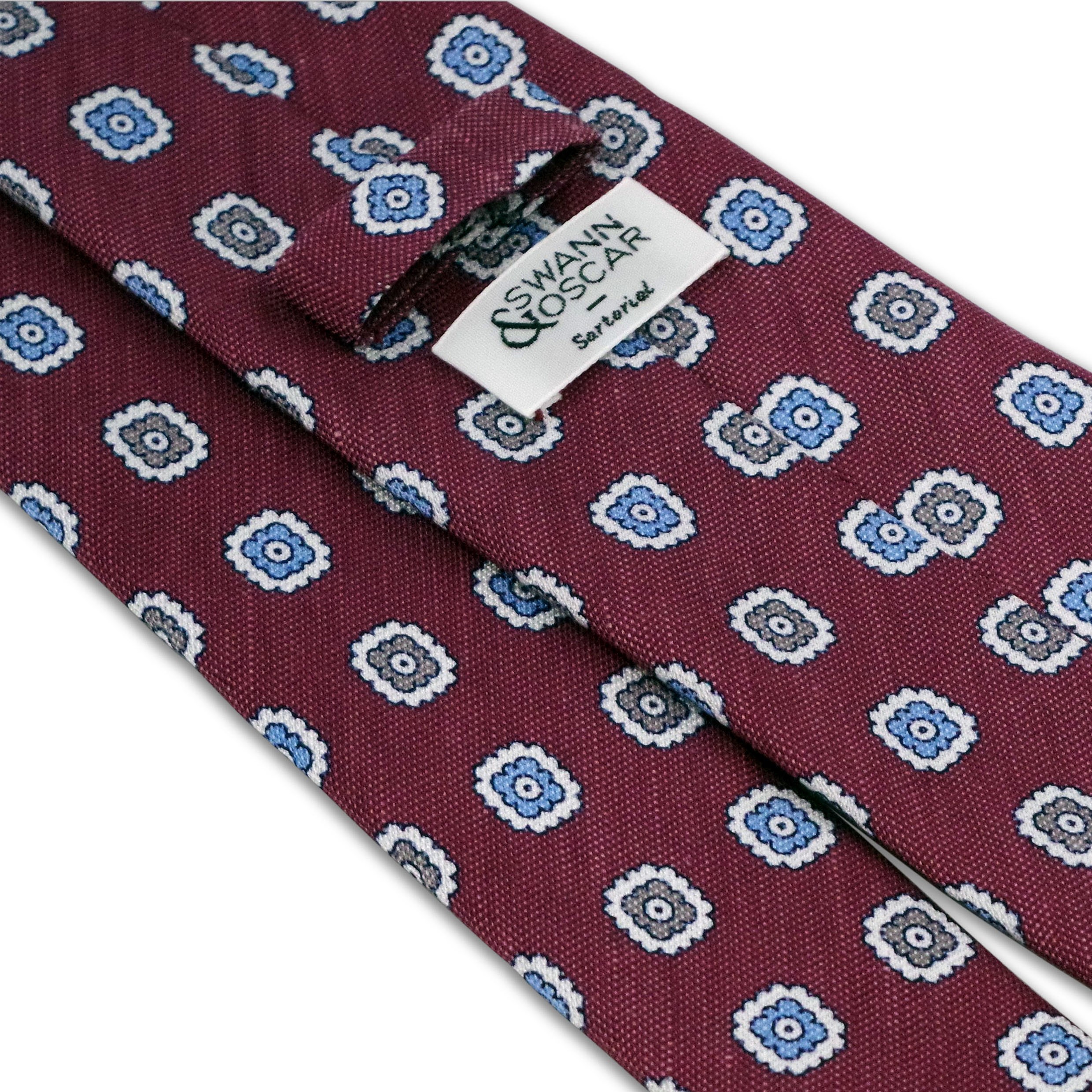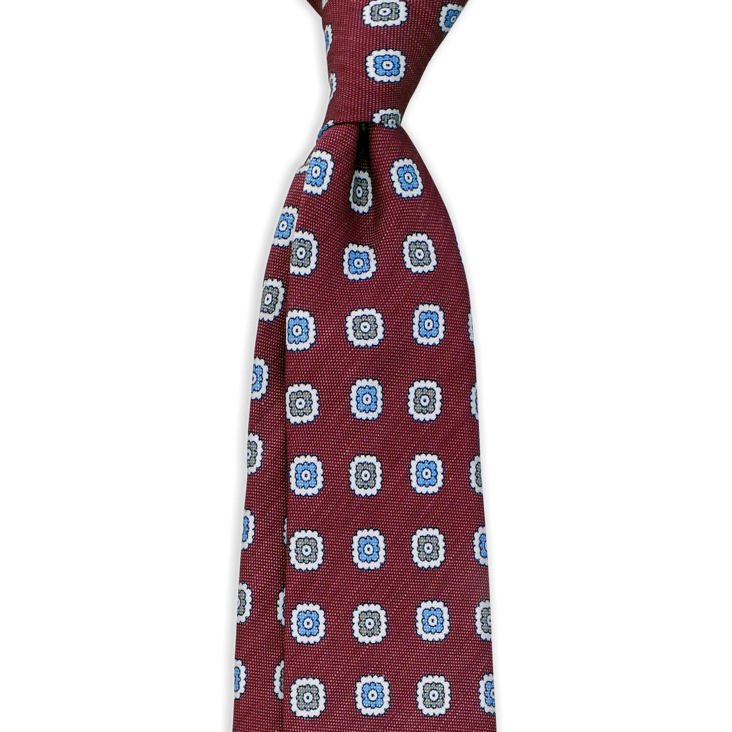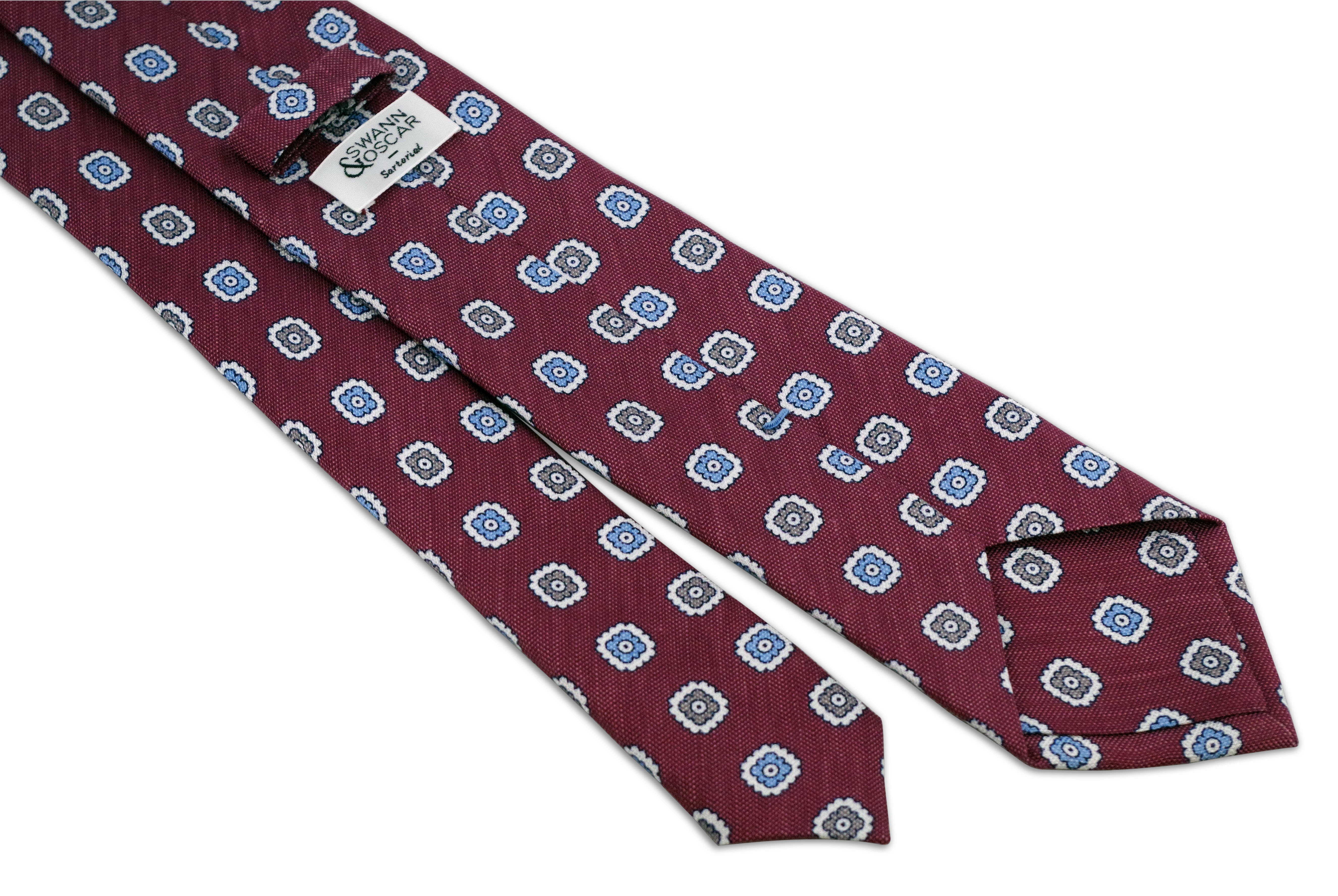 Cravate Framboise Motifs Fleurs Gris Bleu