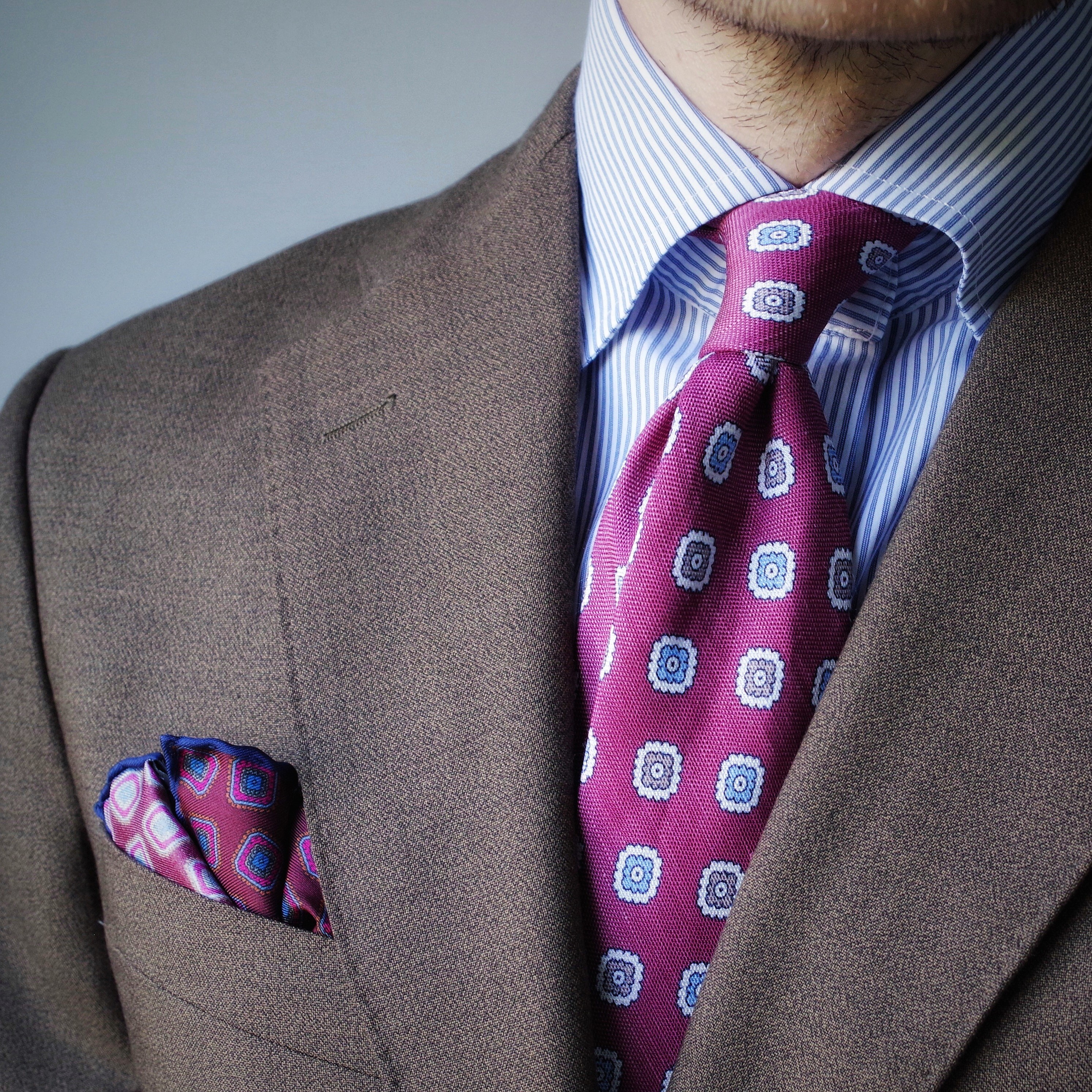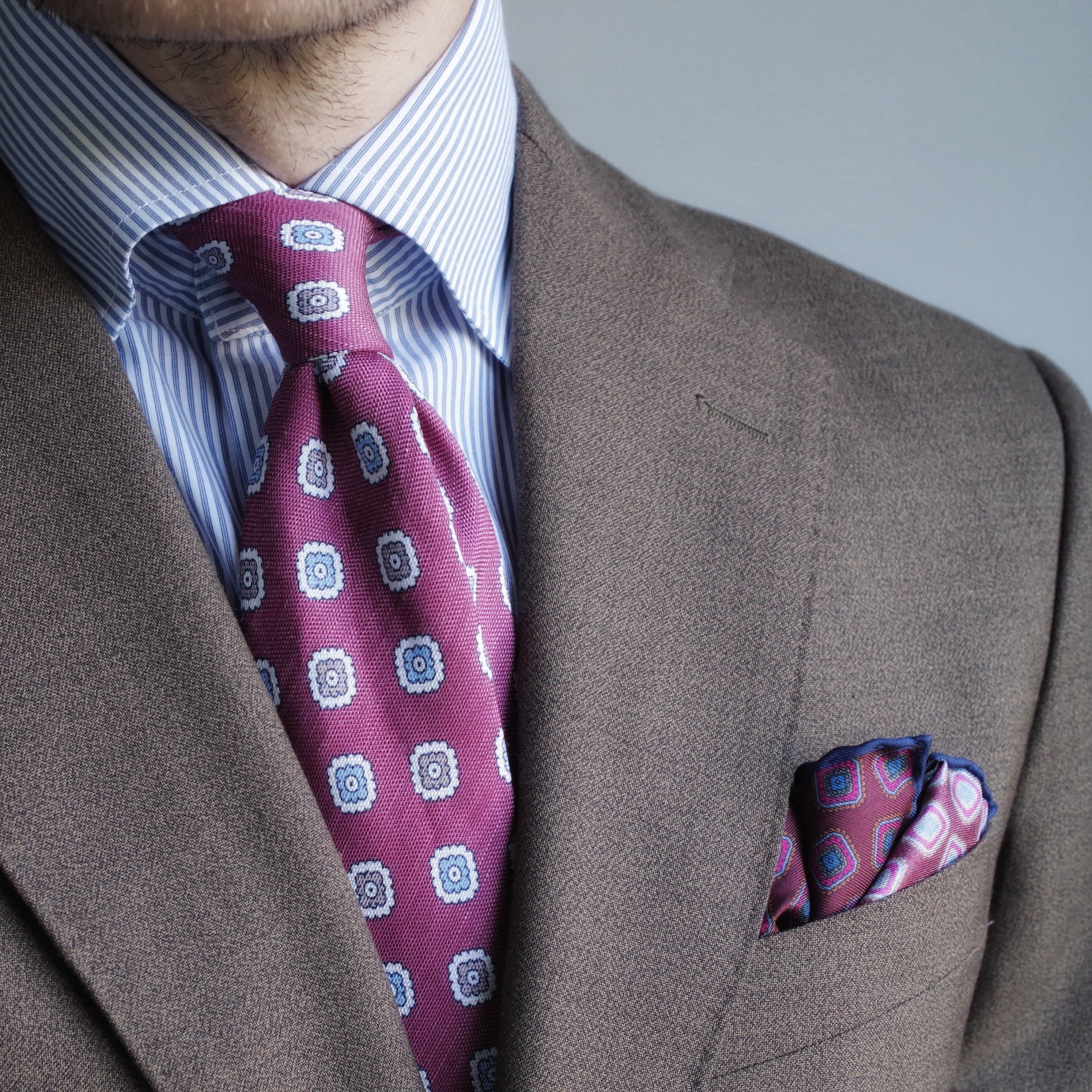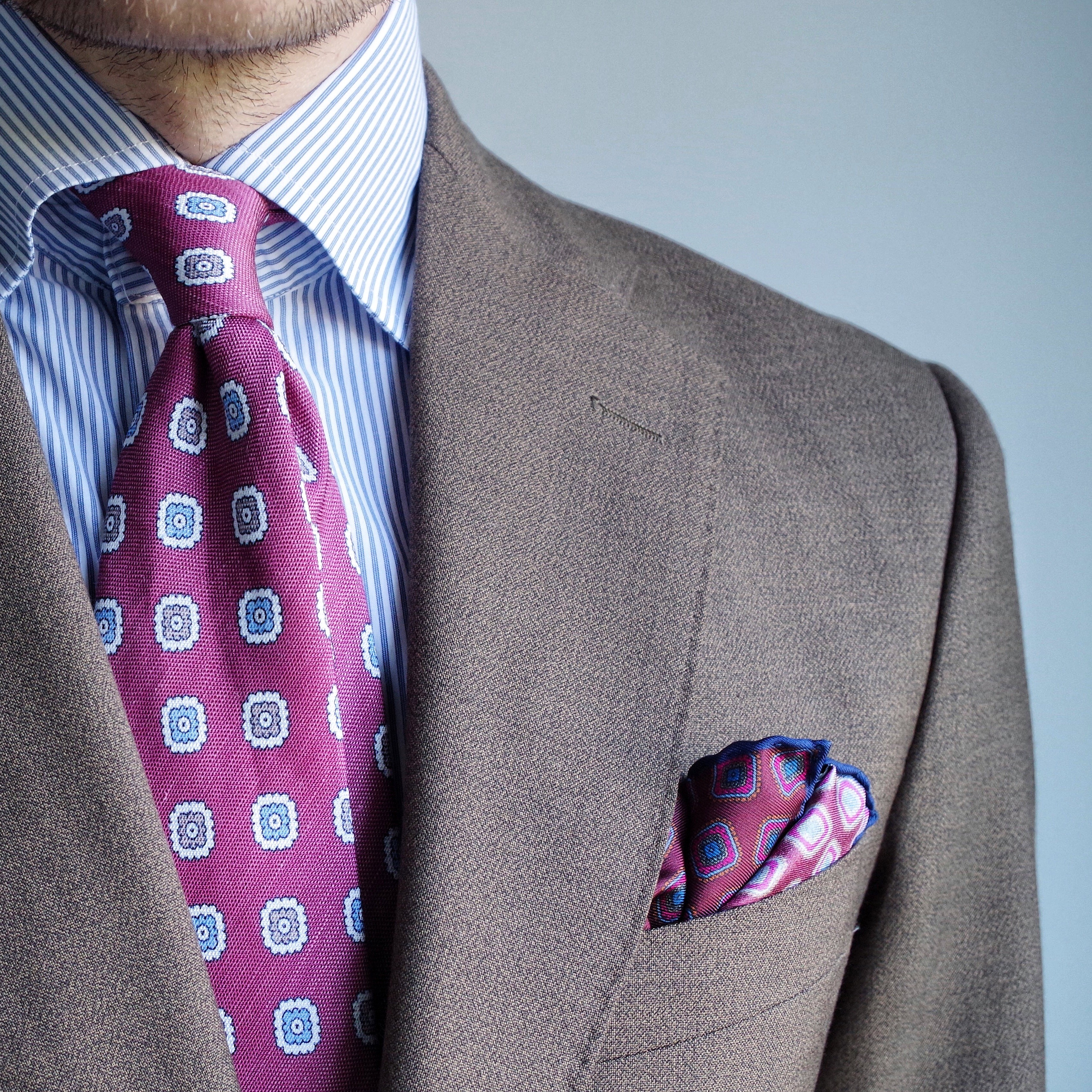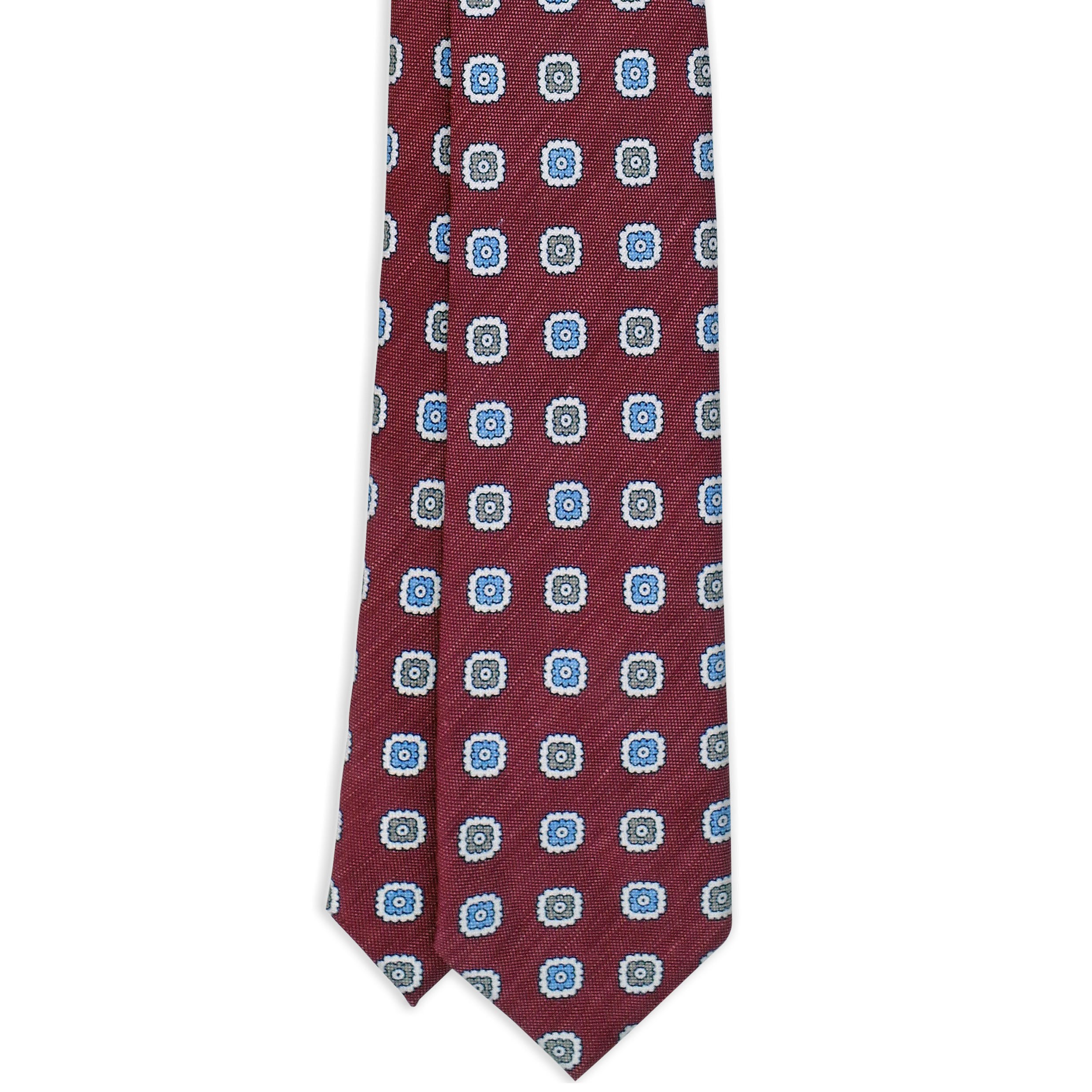 Cravate Framboise Motifs Fleurs Gris Bleu