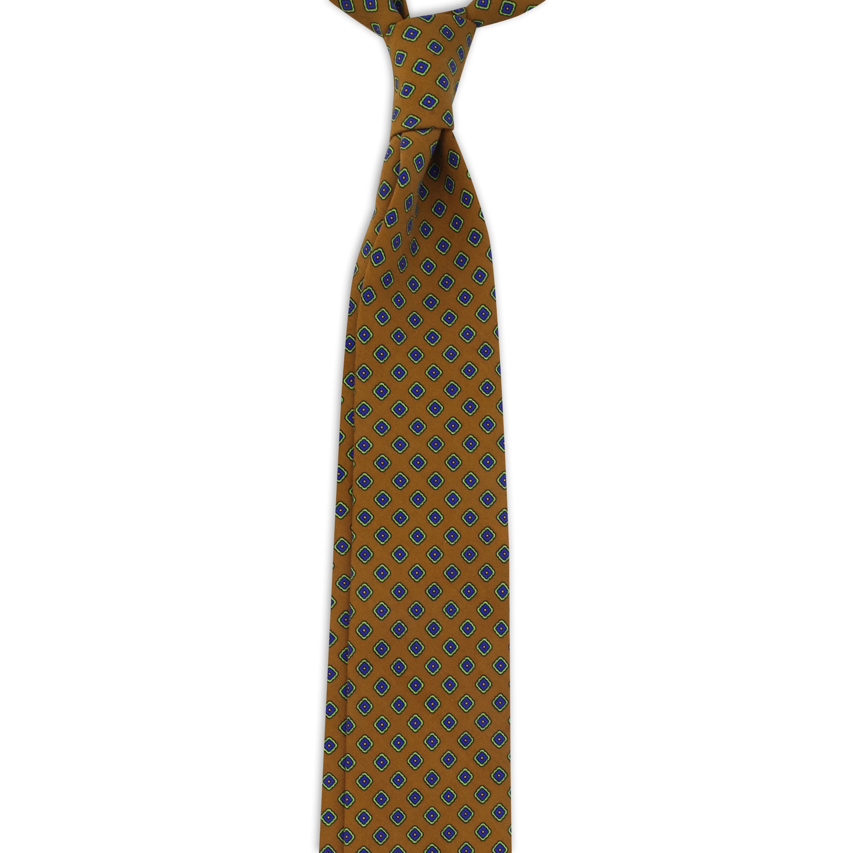 Cravate Jaune Orange Motifs Fleurs Bleu