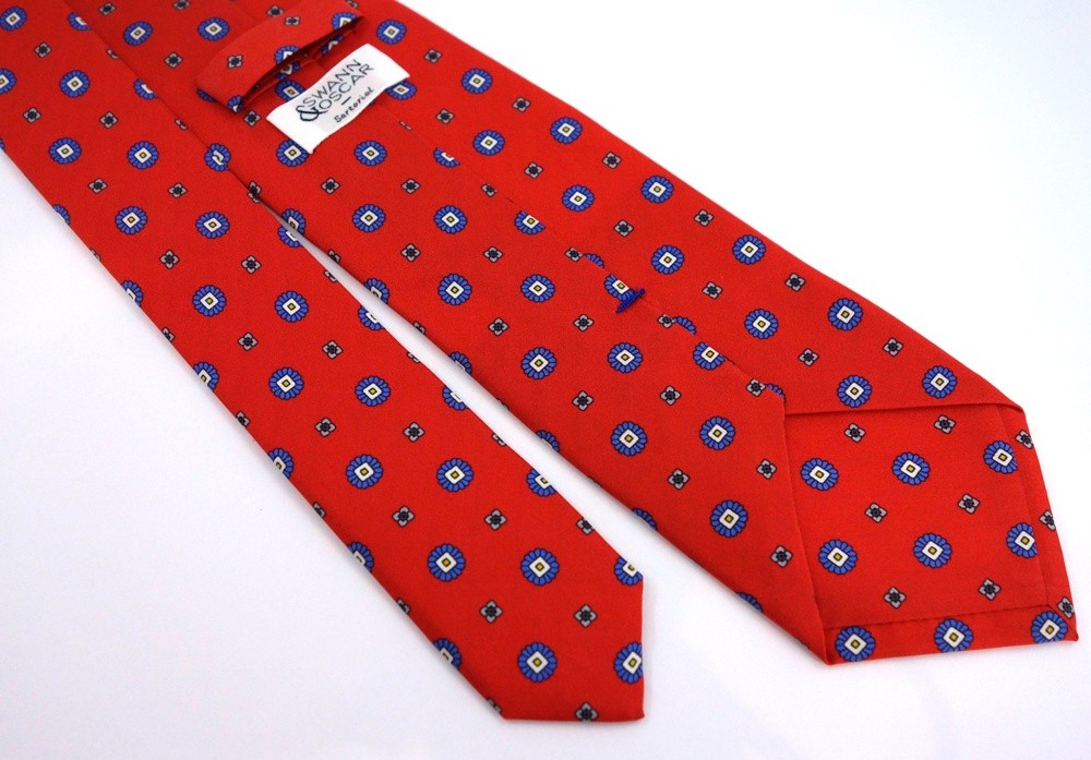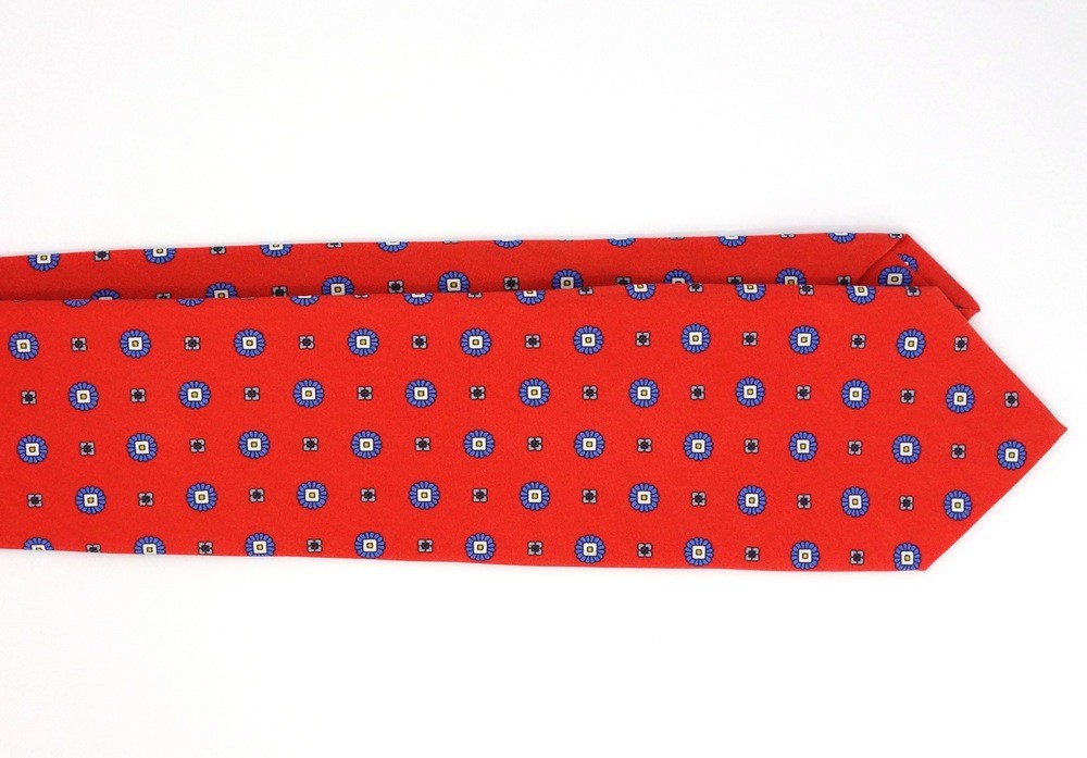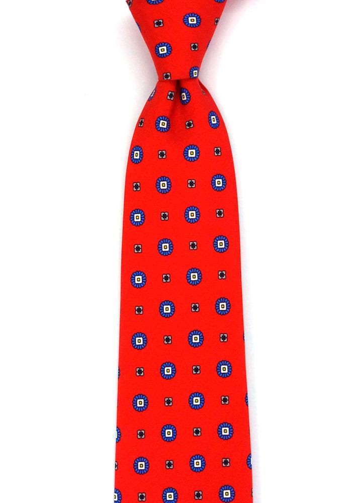 Une cravate en soie imprimée, typique du style italien ! C'est un modèle qui ira bien avec vos tenues formelles. Sa couleur rouge dominante permet de donner une belle touche de chaleur à votre tenue.