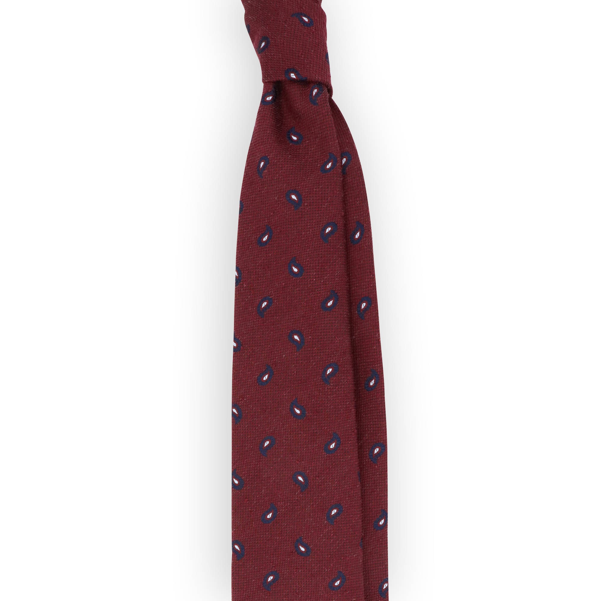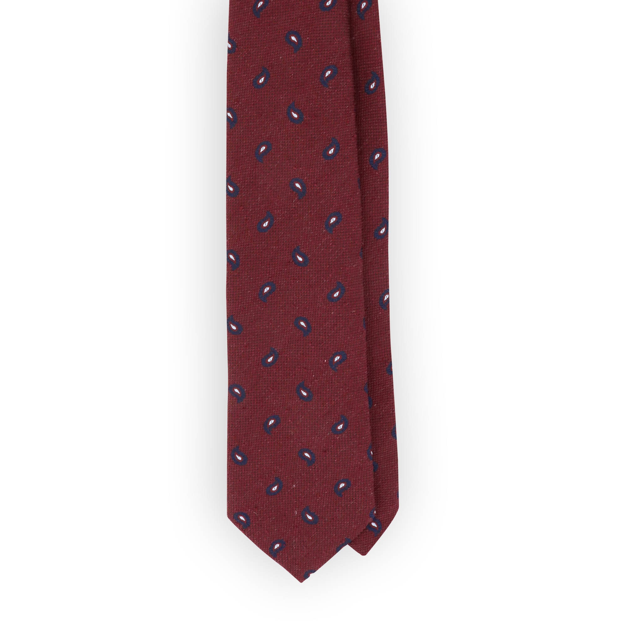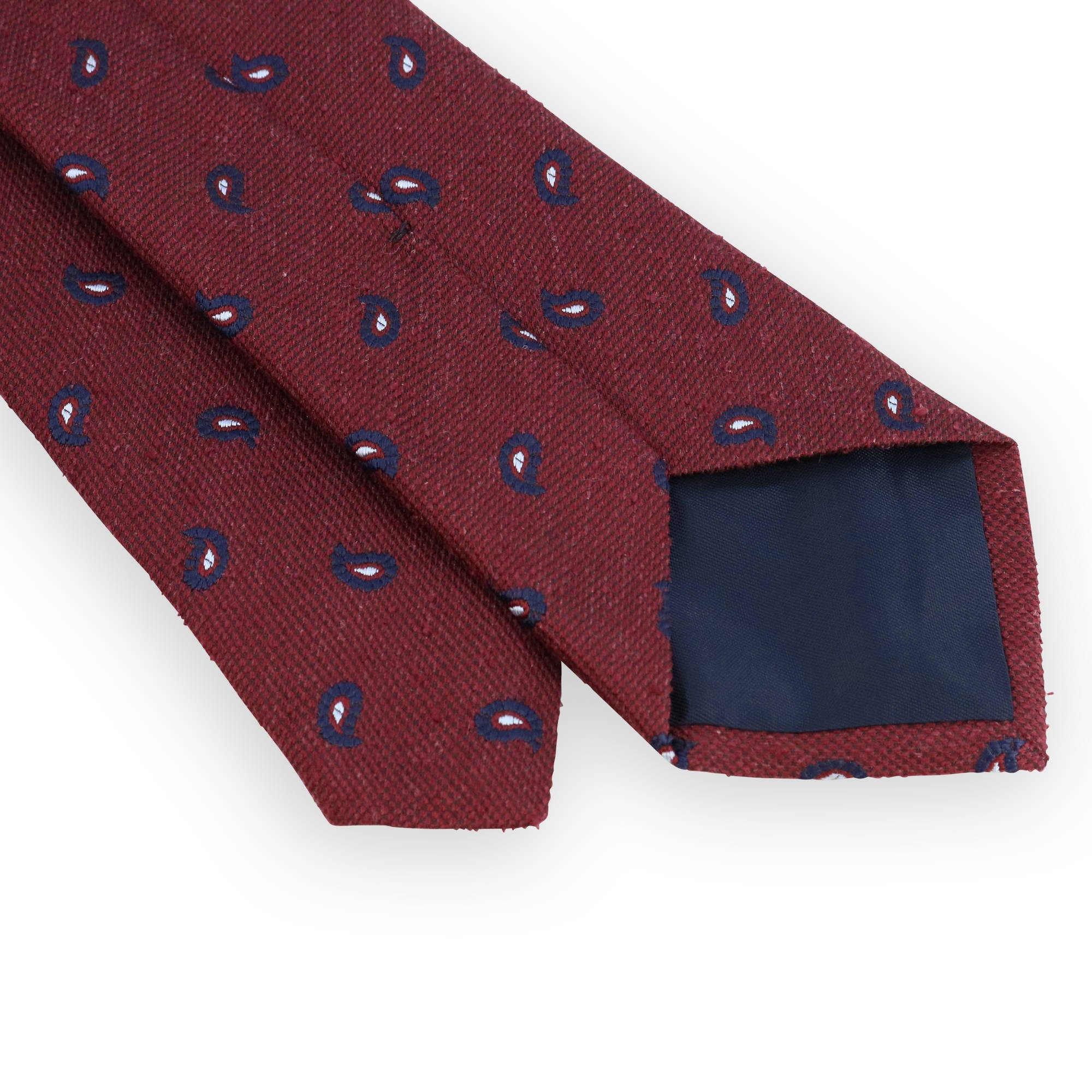 Cravate soie rouge motifs cachemire marine