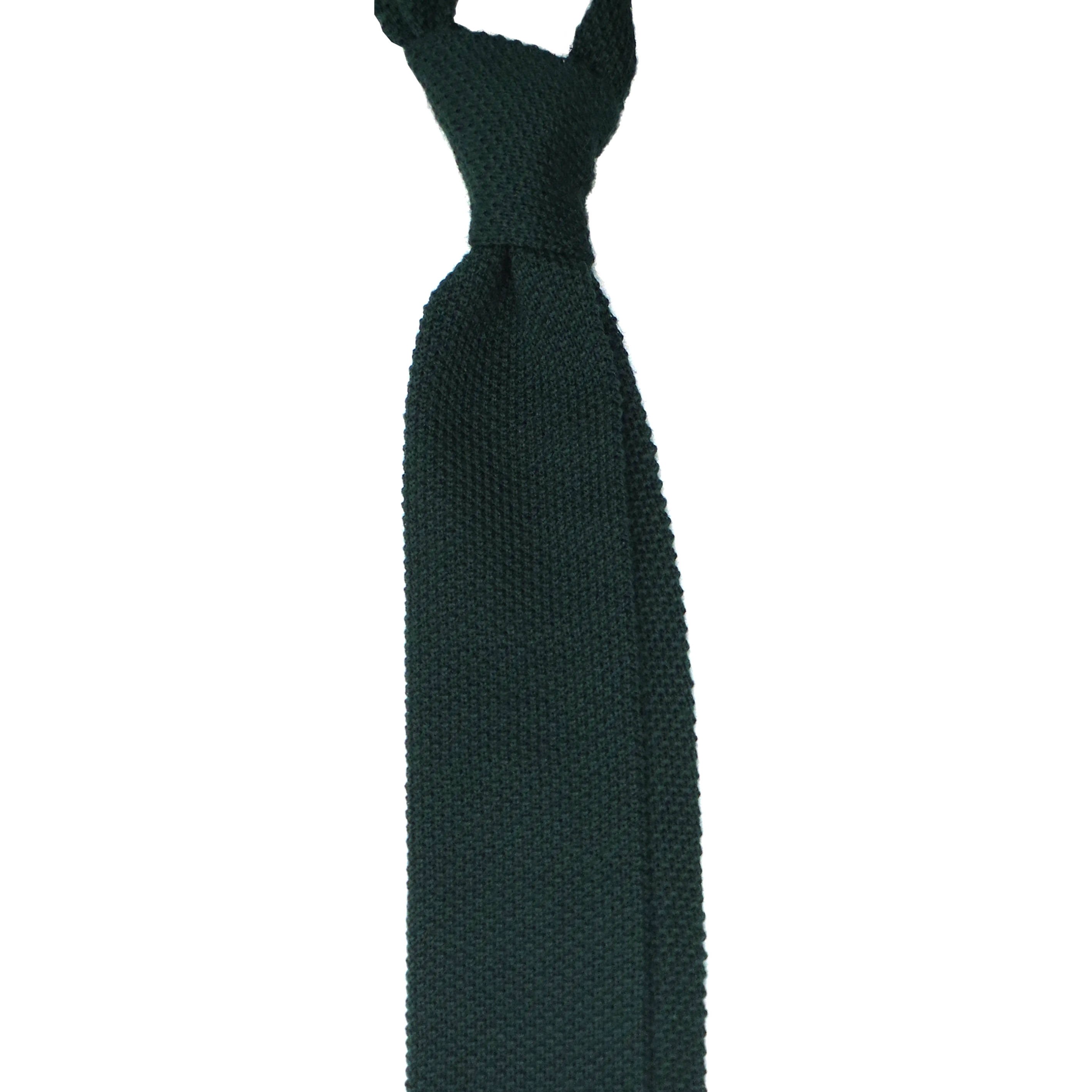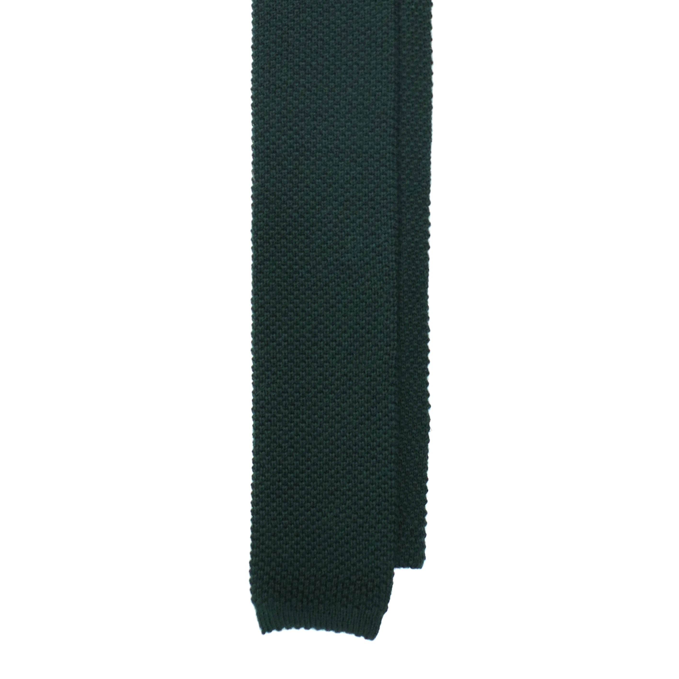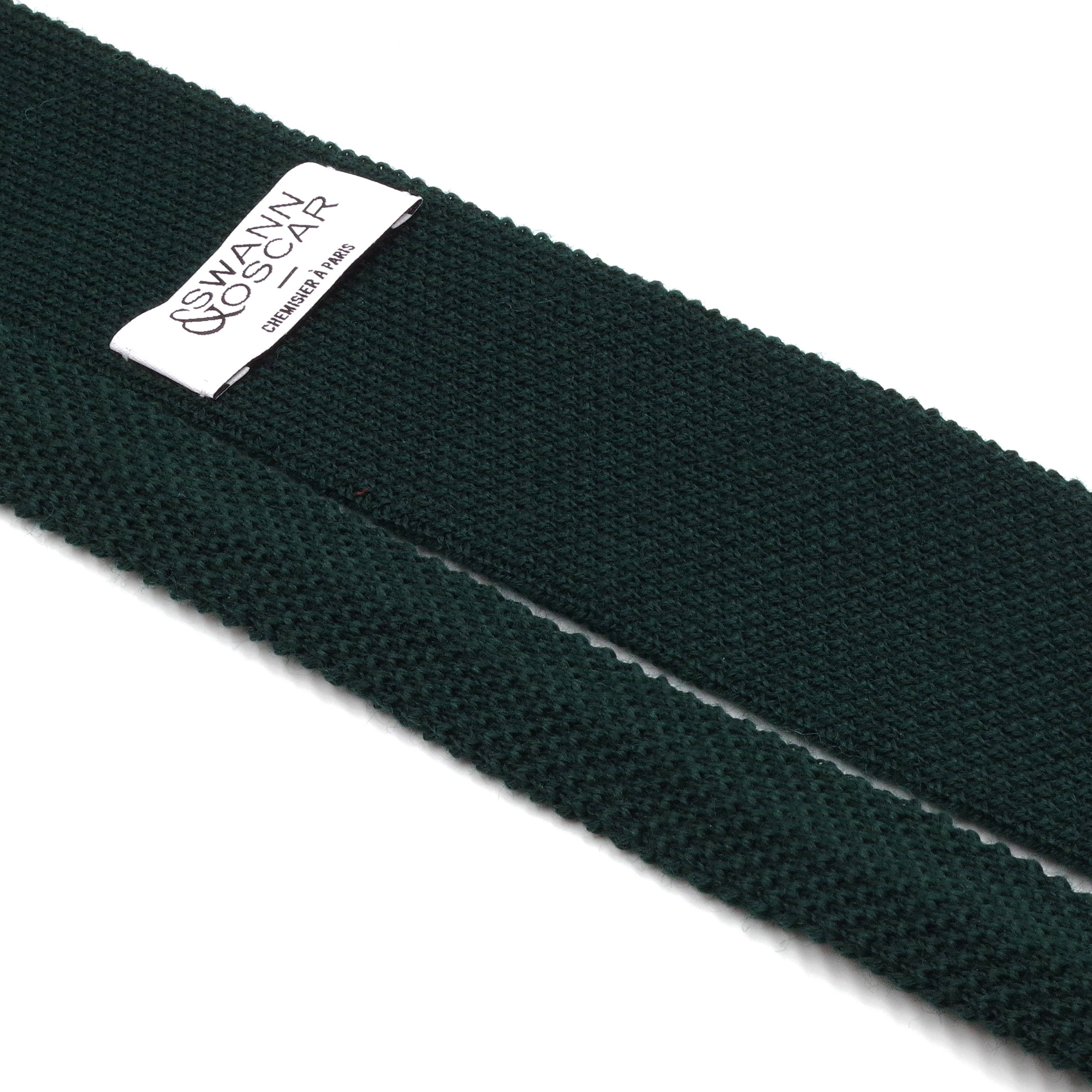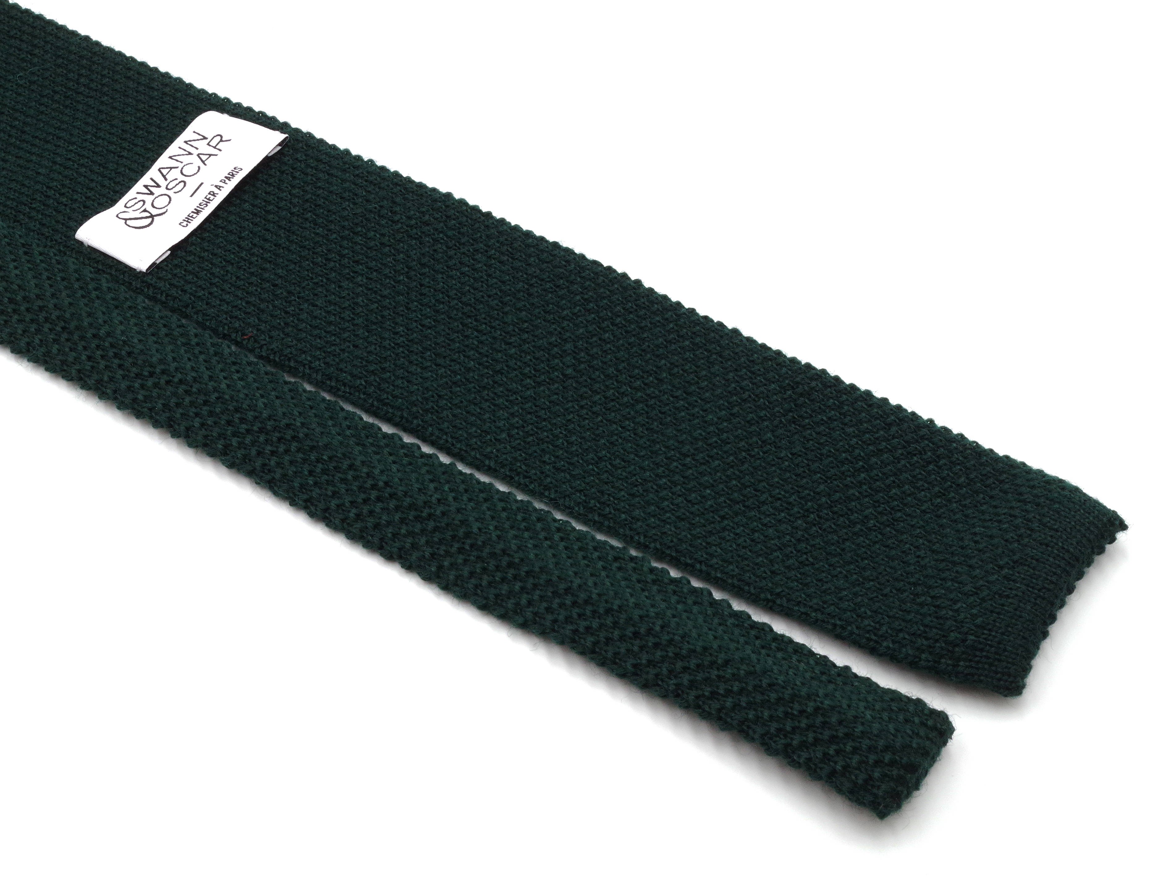 Cravate tricot de laine avec un caractère sportwear chic. Le vert s'allie parfaitement avec le bleu, vous pourrez l'imaginer, comme sur notre mannequin, avec une chemise en denim à col boutonné.