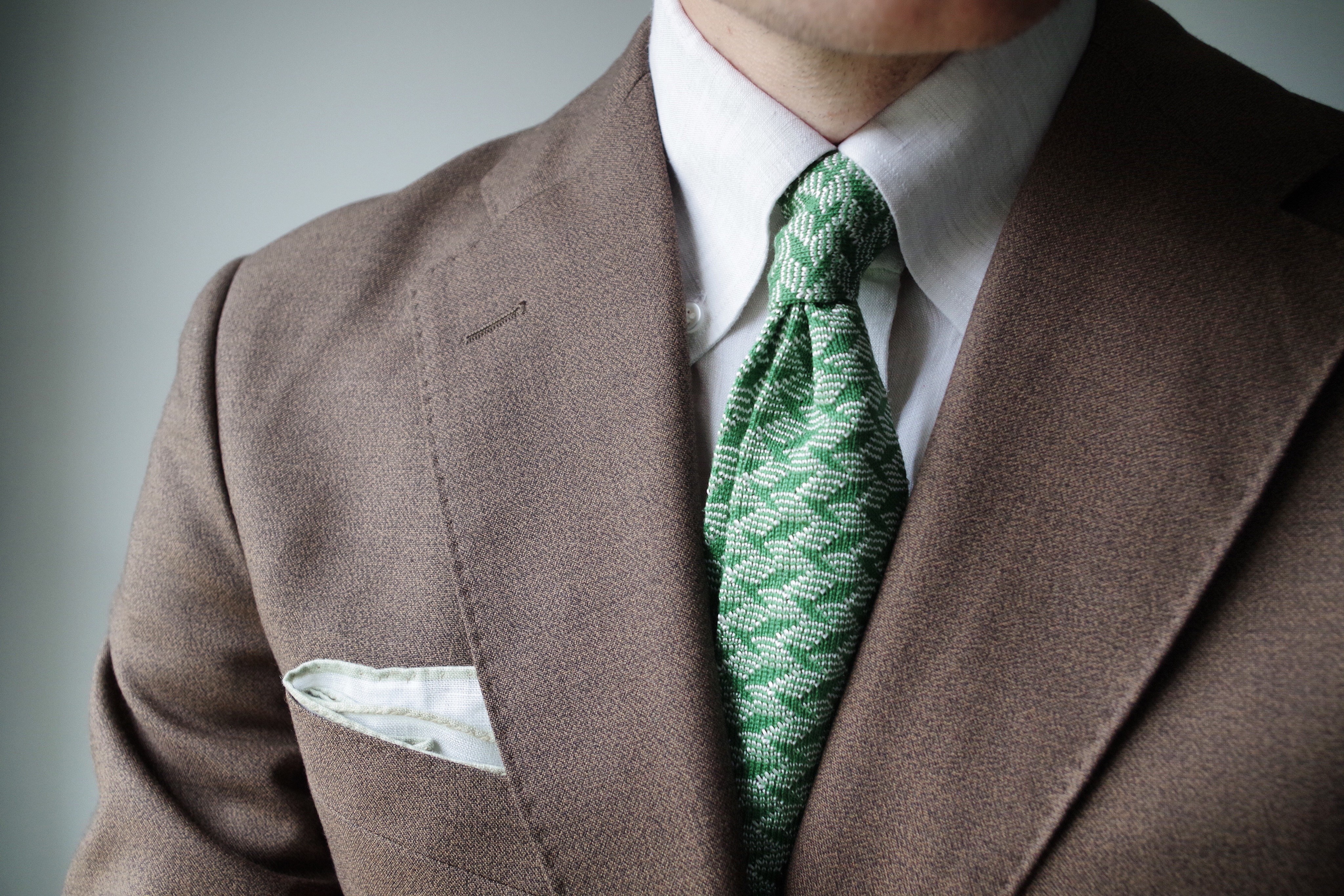 Nous avons là une cravate très typée sportwear chic, elle pourra se porter lors de vos afterwork en toute décontraction. Avec une chemise à col boutonné ou par exemple comme sur notre mannequin avec une chemise en lin d’un ton crème.