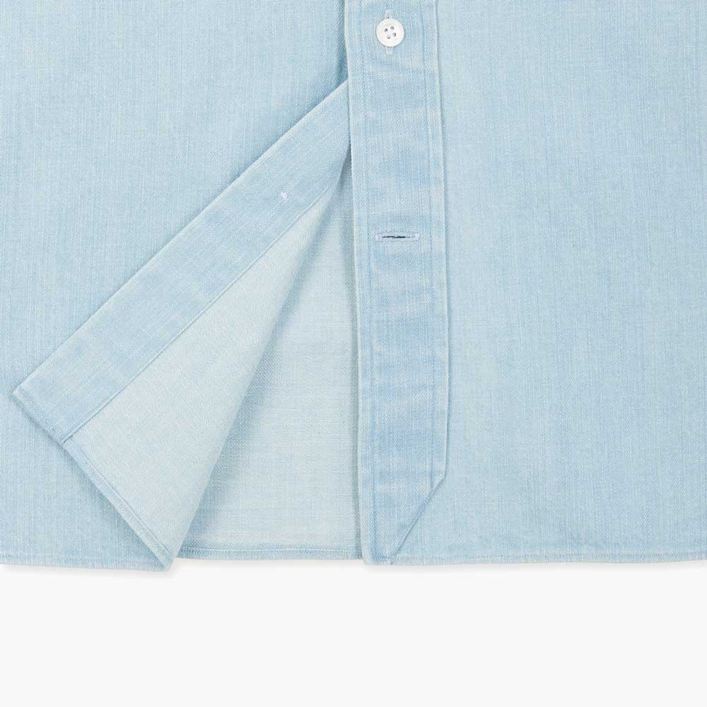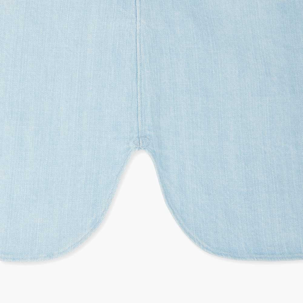 Chemise en jean coupée dans notre denim japonais, épais et robuste. Col hirondelle souple, boutons en nacre, poche. La chemise a été montée avant d'être lavée pour lui donner un aspect patiné. Délaver des chemises sur mesure en tenant compte du rétrécissement est une technique complexe que notre atelier maitrise à la perfection.