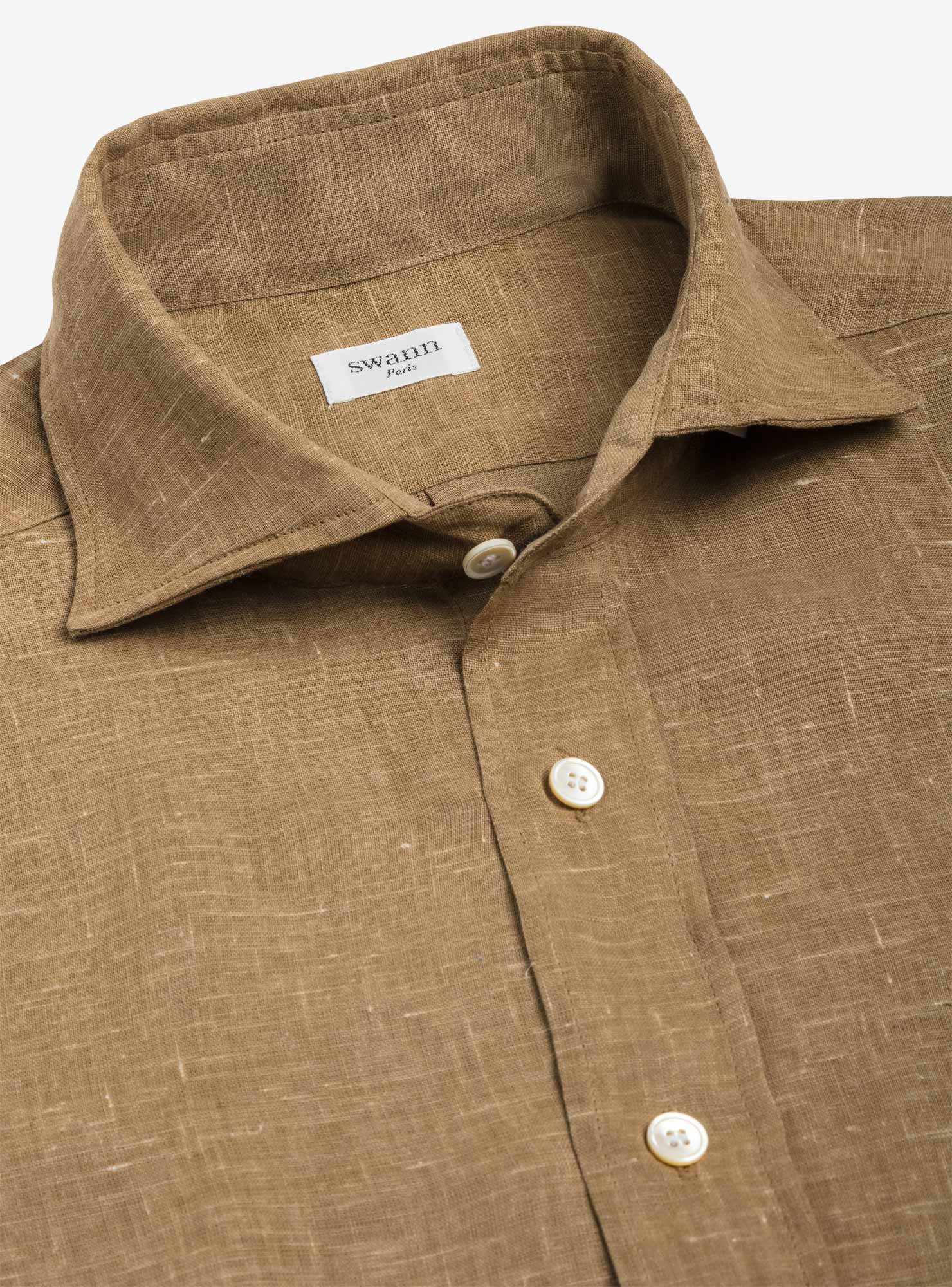 Un tissu d''exception en lin : le lin est récolté en Normandie, tissé en Italie. Couleur tabac.