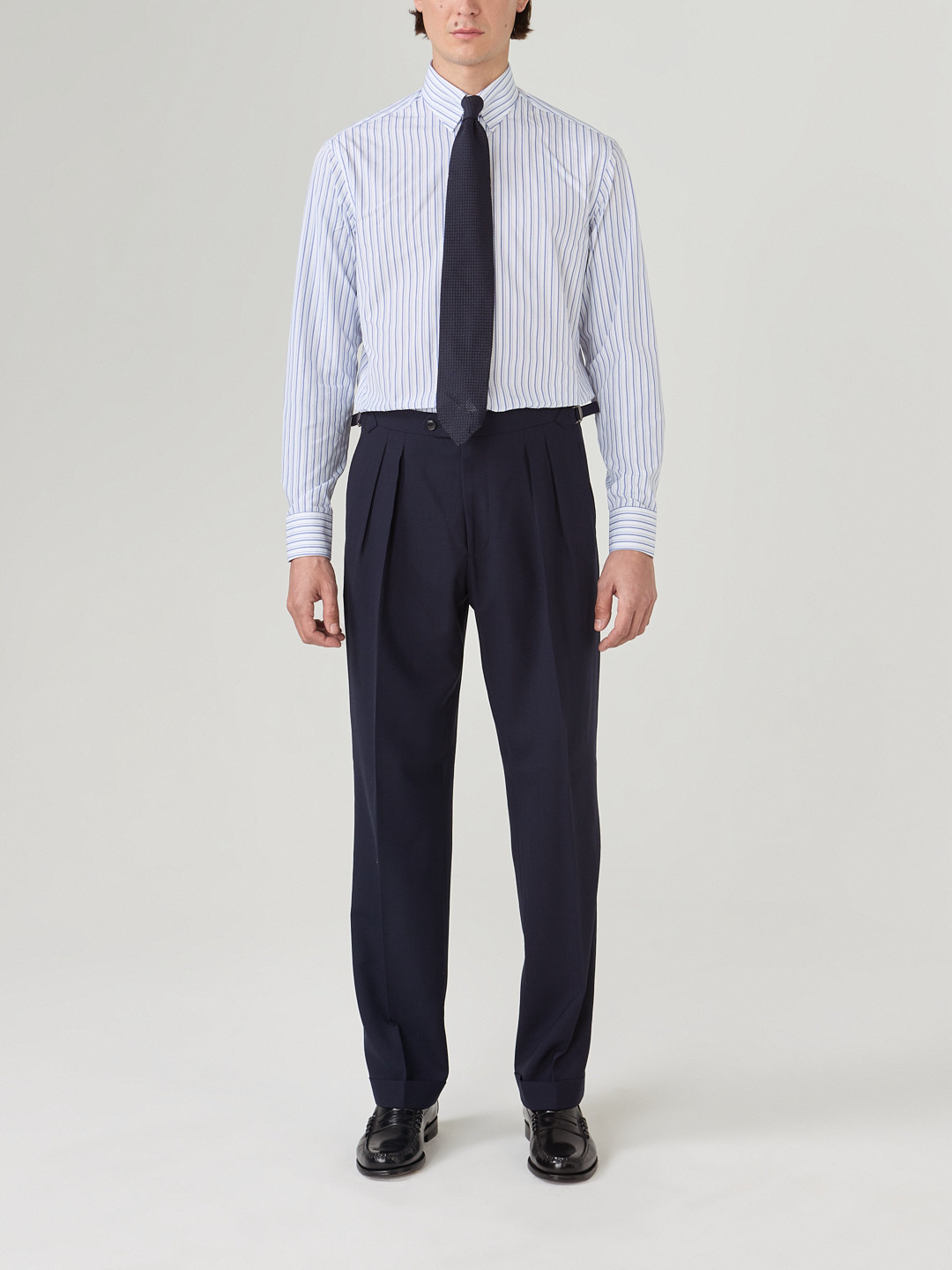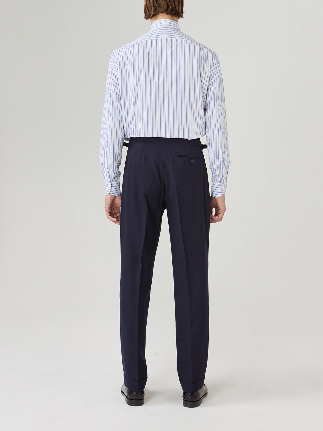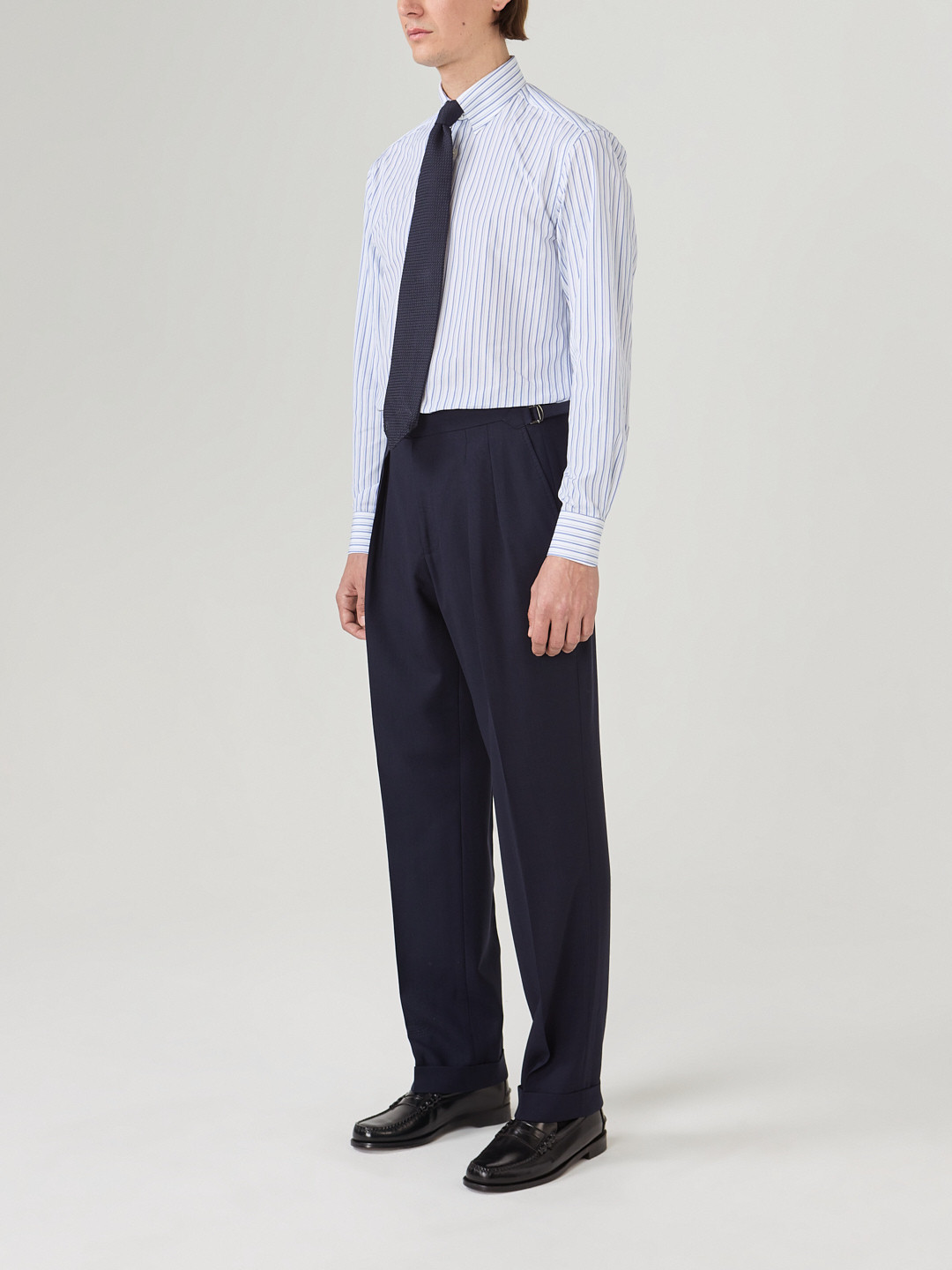 Tous nos vêtements sont coupés à la demande, nous pouvons donc réaliser la coupe ou le style que vous souhaitez indépendamment des modèles présentés ici. Demandez-nous.