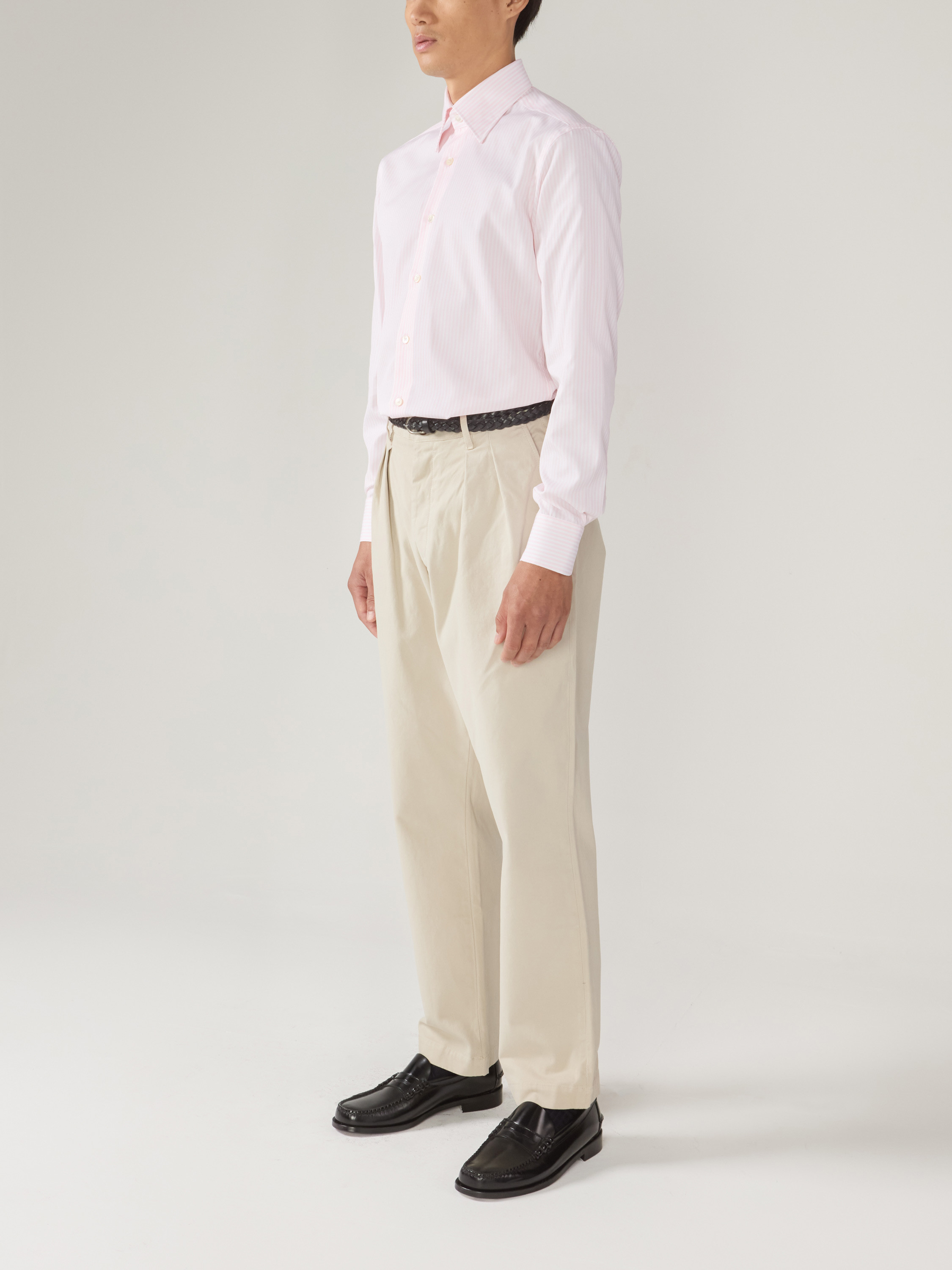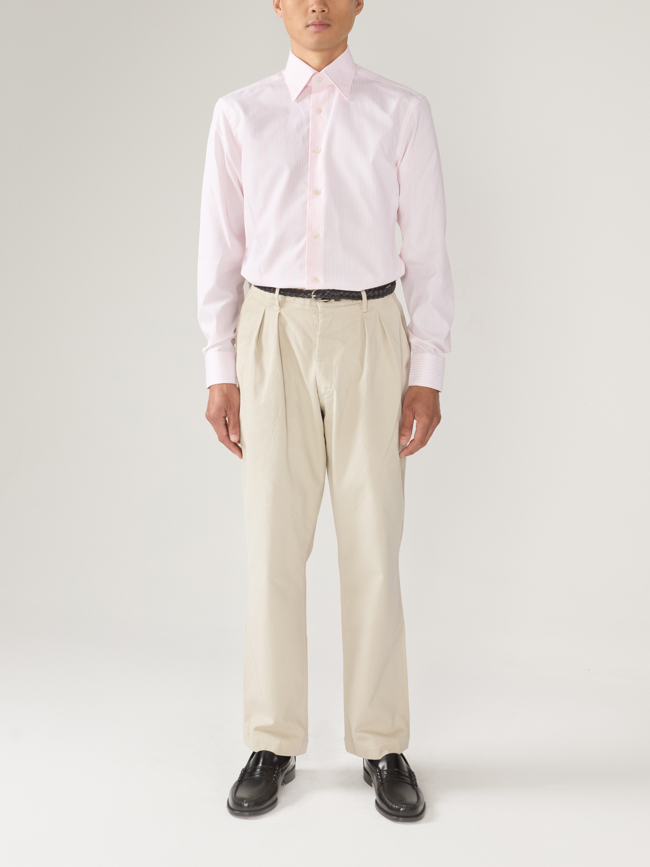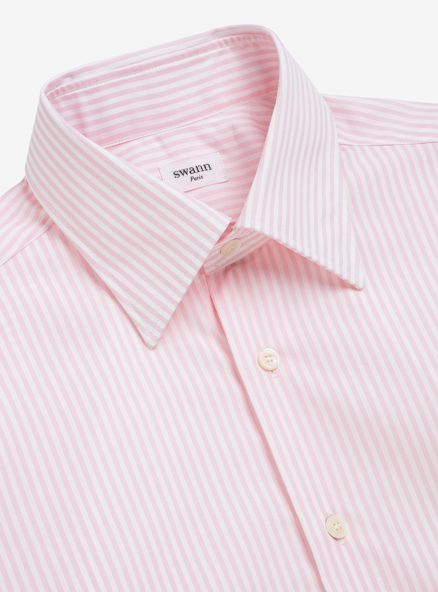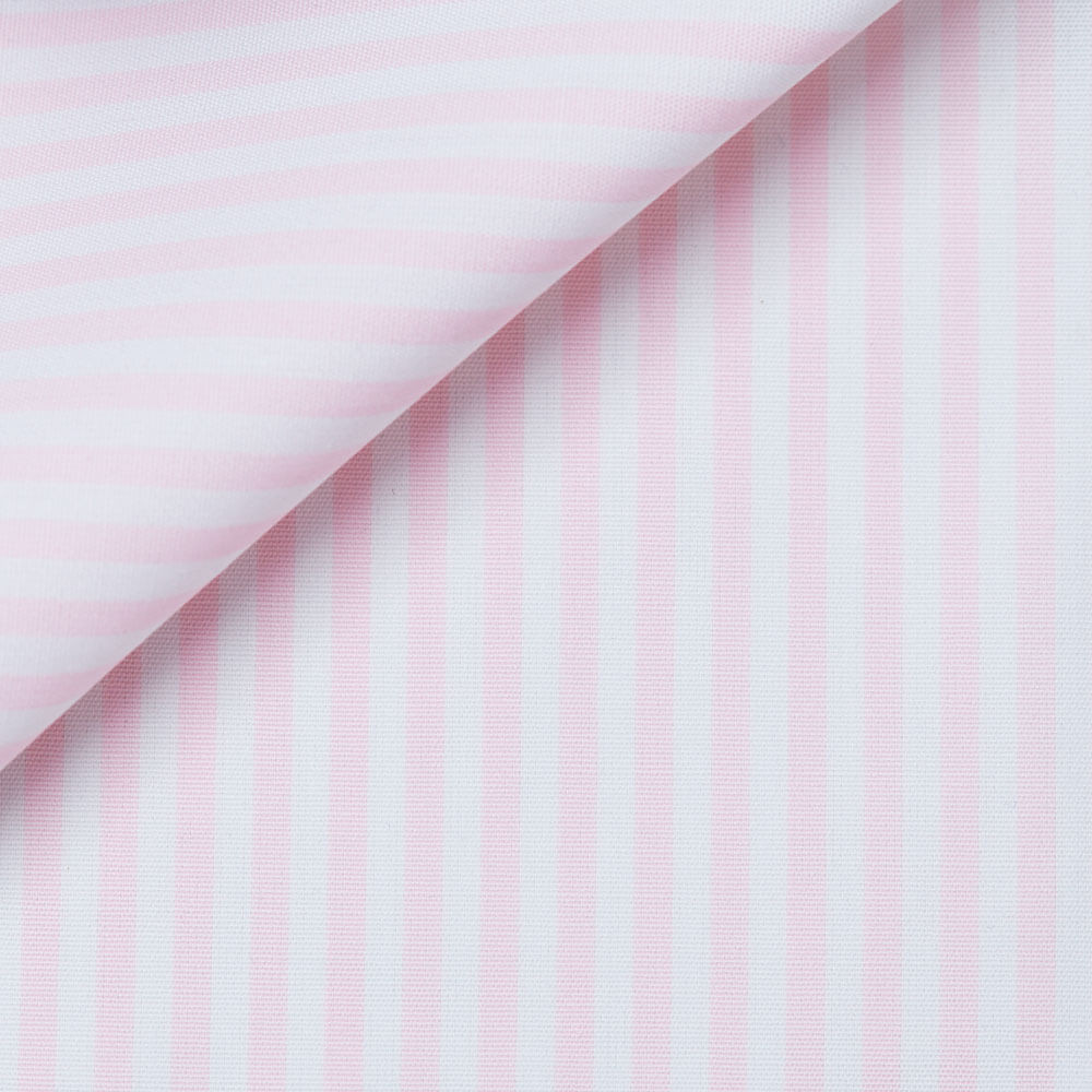 Popeline rayé rose double retors, un classique. Idéal pour des chemises habillées classiques.
