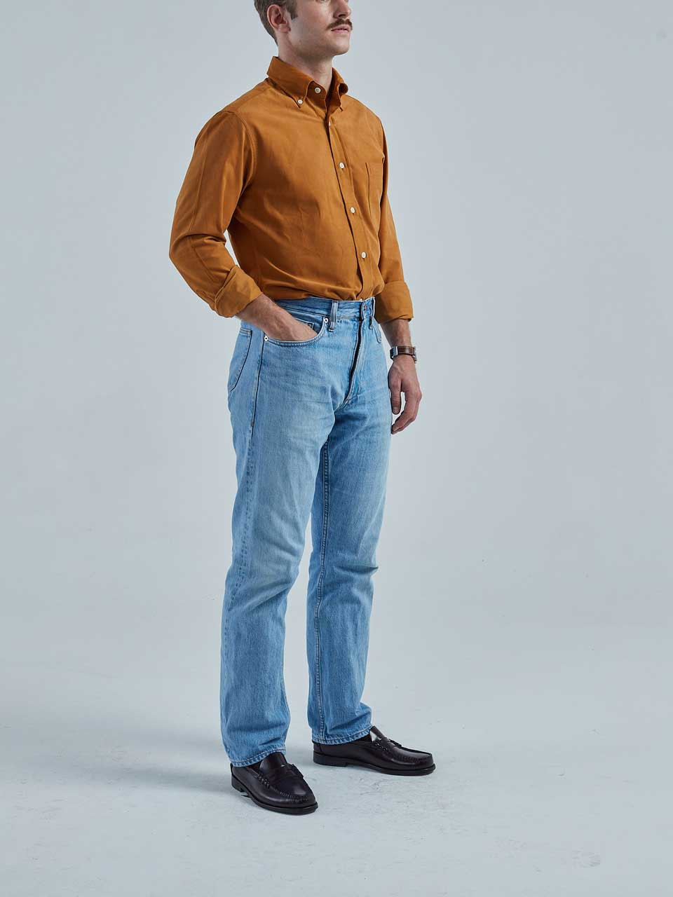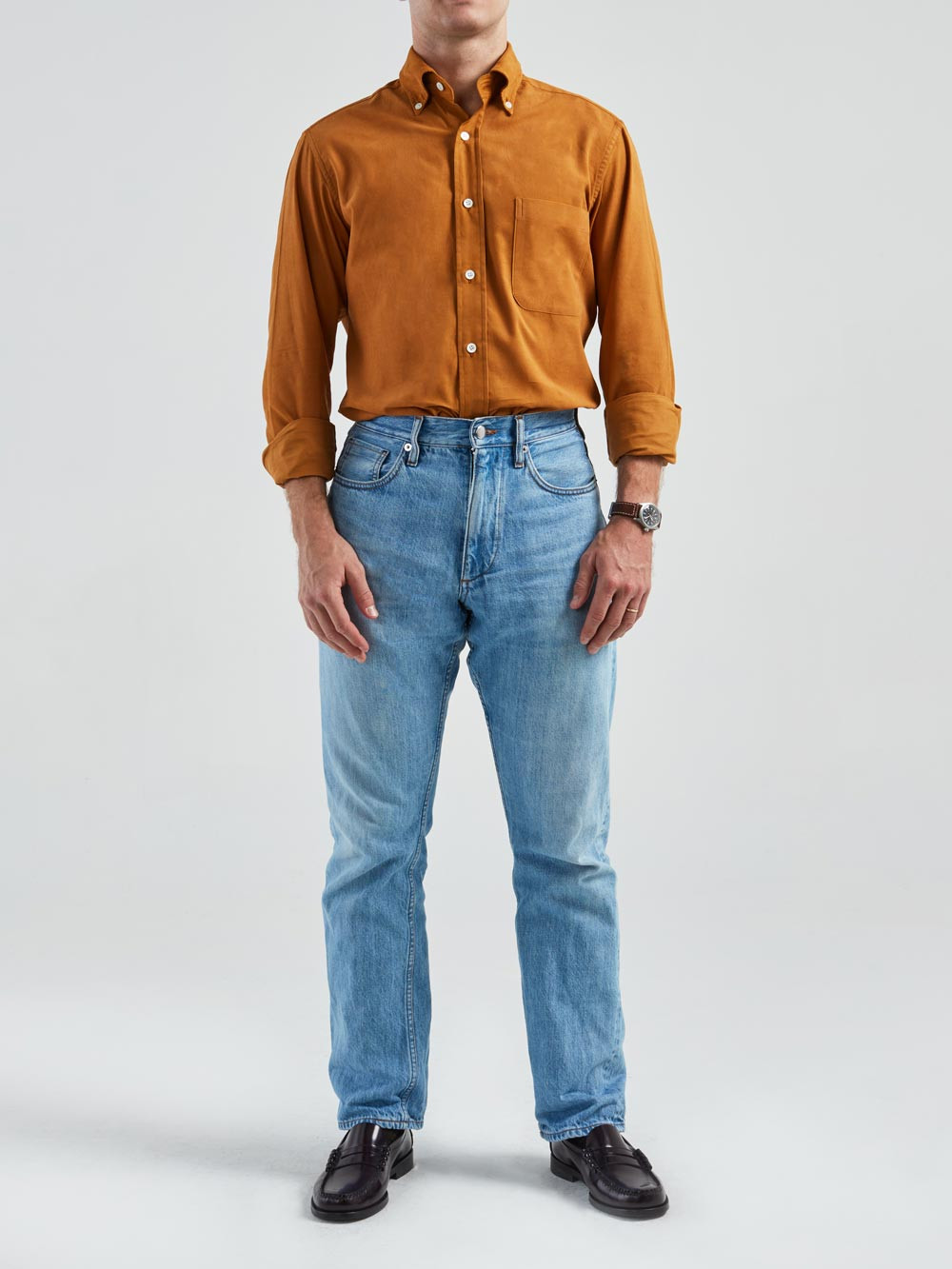 Velours camel de chez Albini. Tissu à fines cotes, souvent appelé "baby cord", chaud et confortable, c'est une super chemise sport. Les cols que nous vous conseillons : Amalfi boutonné, Hirondelle souple ou Positano.
