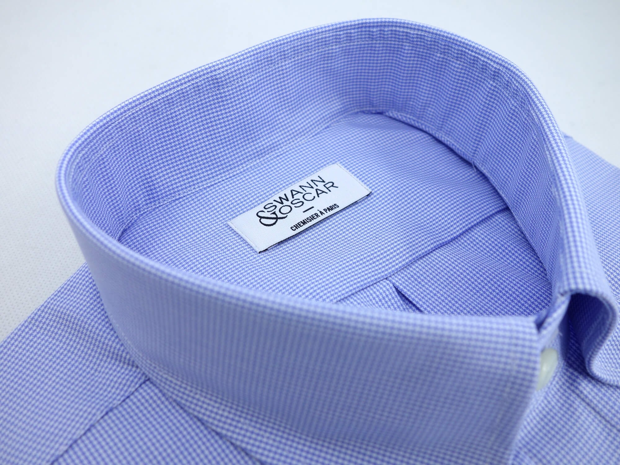 Chemise Pied de Poule Uni Bleu
