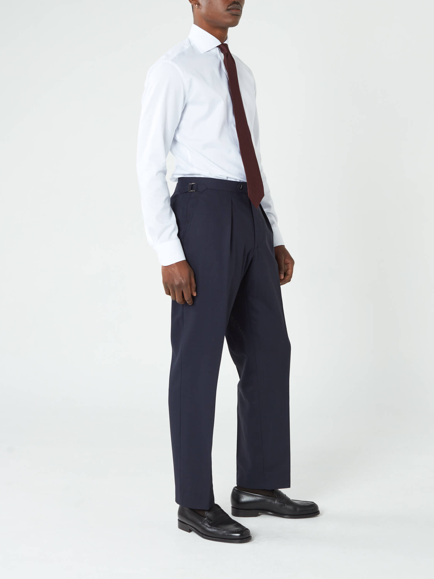Tous nos vêtements sont coupés à la demande, nous pouvons donc réaliser la coupe ou le style que vous souhaitez indépendamment des modèles présentés ici. Demandez-nous.