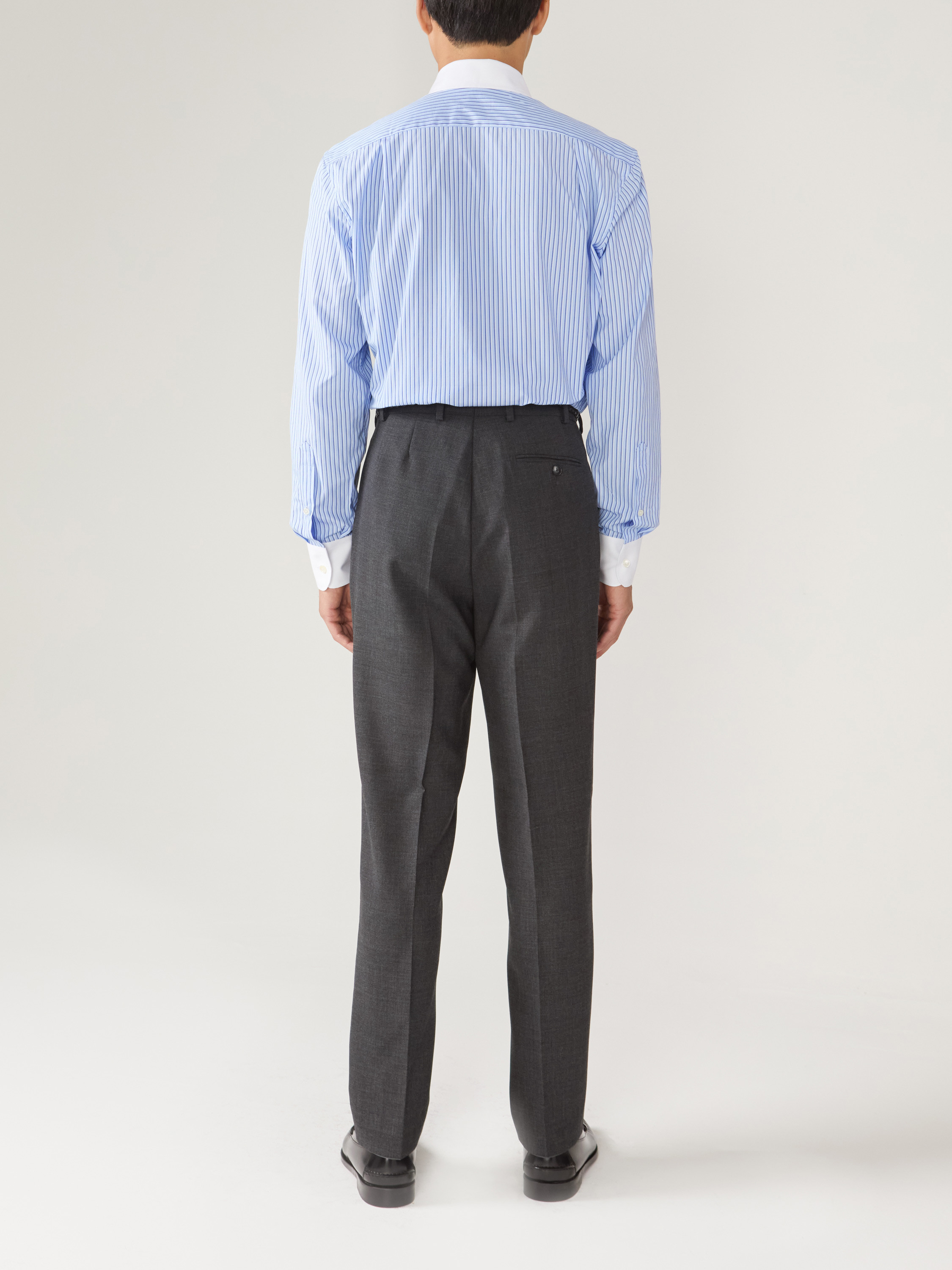 Tous nos vêtements sont coupés à la demande, nous pouvons donc réaliser la coupe ou le style que vous souhaitez indépendamment des modèles présentés ici. Demandez-nous.