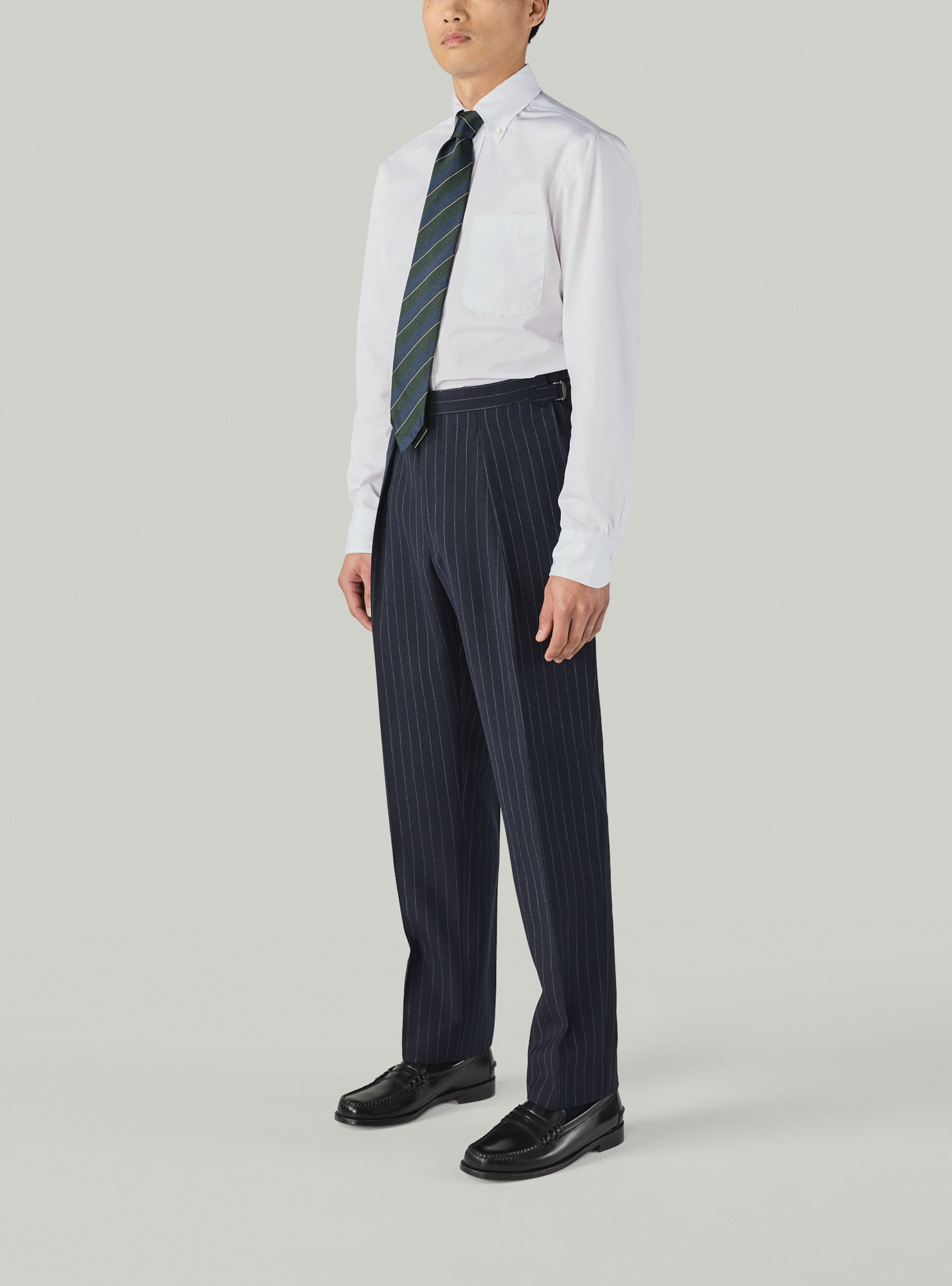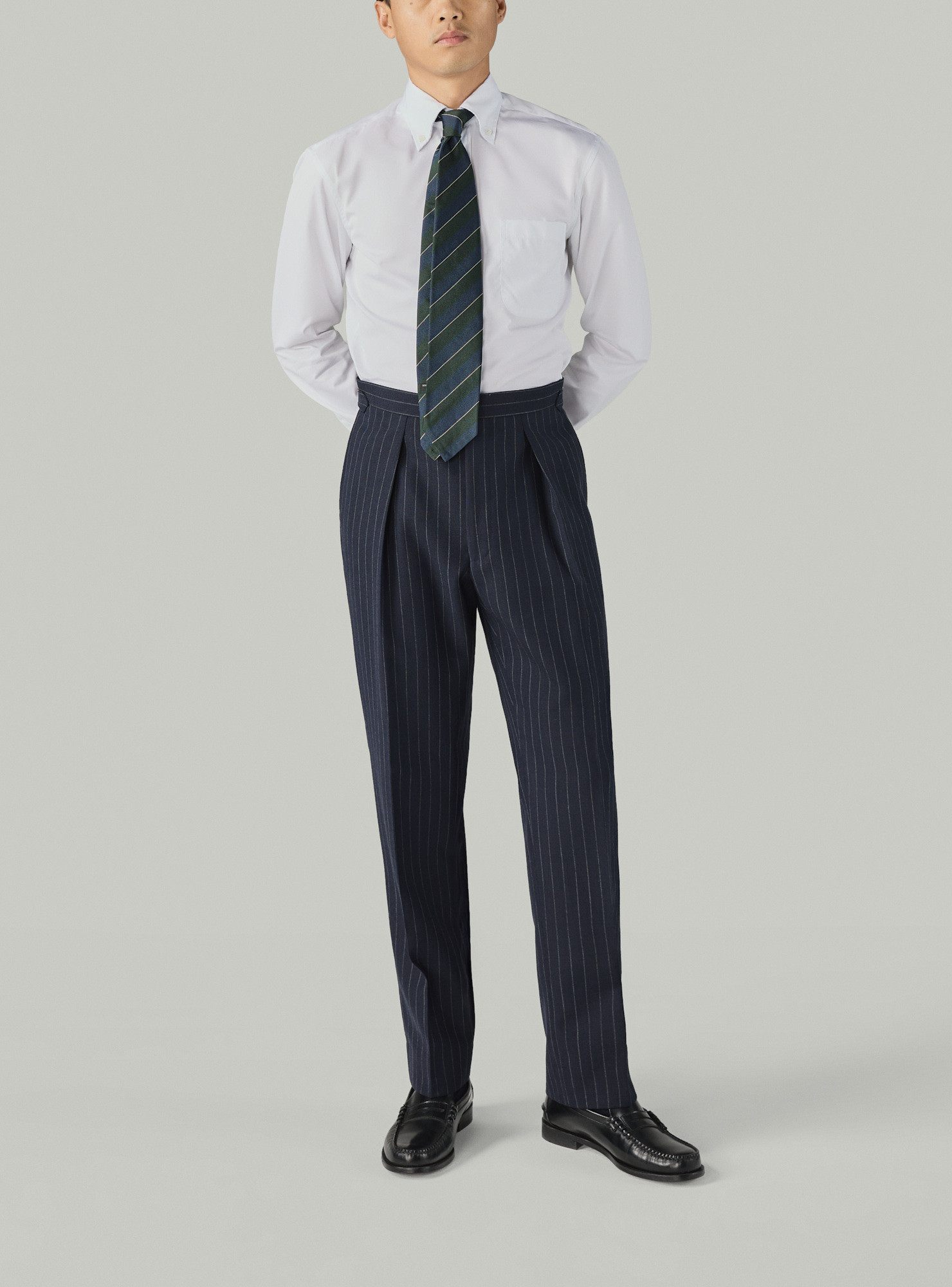 Tous nos vêtements sont coupés à la demande, nous pouvons donc réaliser la coupe ou le style que vous souhaitez indépendamment des modèles présentés ici. Demandez-nous.