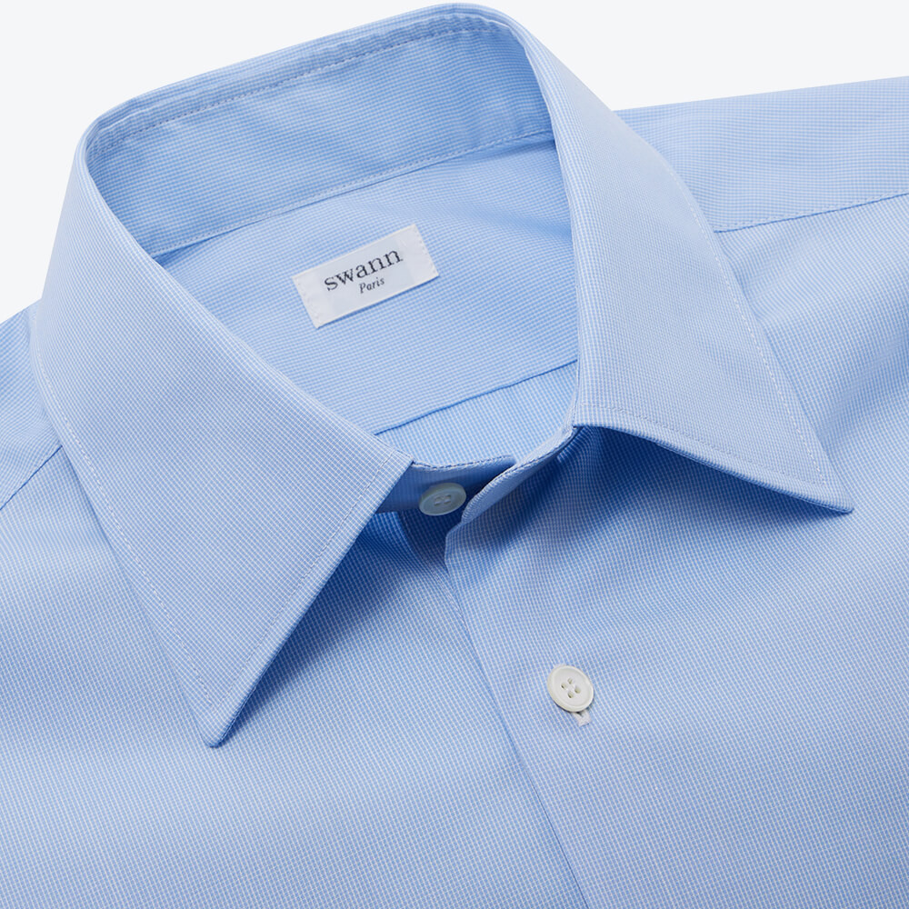Popeline Carreaux bleu double retors, un classique. Idéal pour des chemises habillées classiques.
