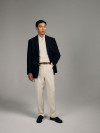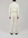 Pantalon en Cavalry Twill Ecru avec passants de ceintures de serrages, deux poches cavalières, sans pinces, bas simple sans revers.