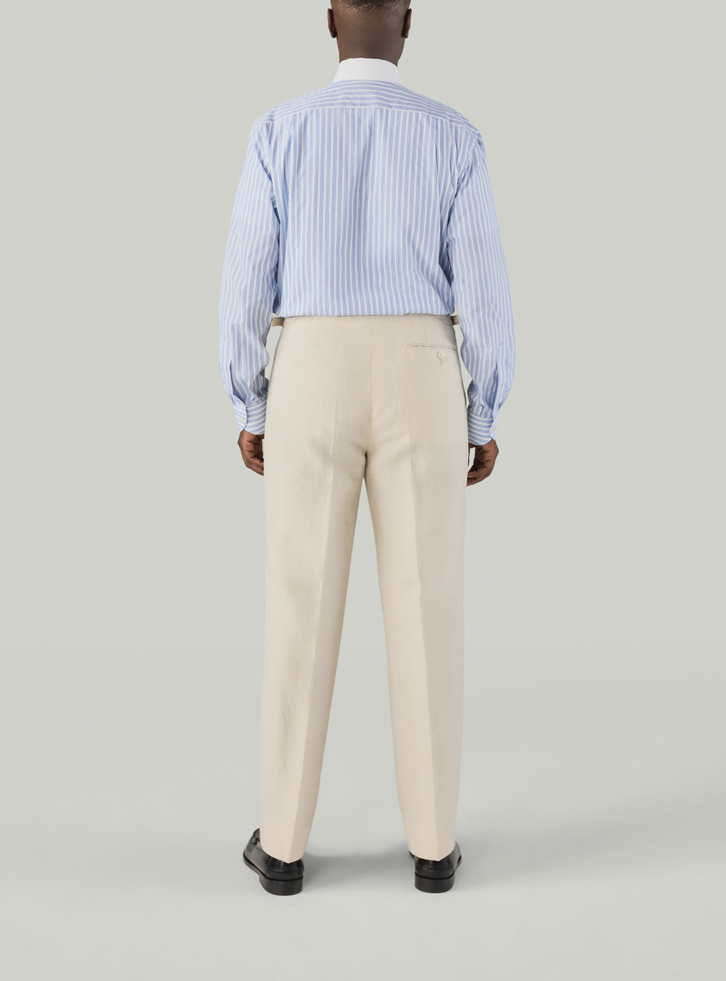 Tous nos vêtements sont coupés à la demande, nous pouvons donc réaliser la coupe ou le style que vous souhaitez indépendamment des modèles présentés ici. Demandez-nous.