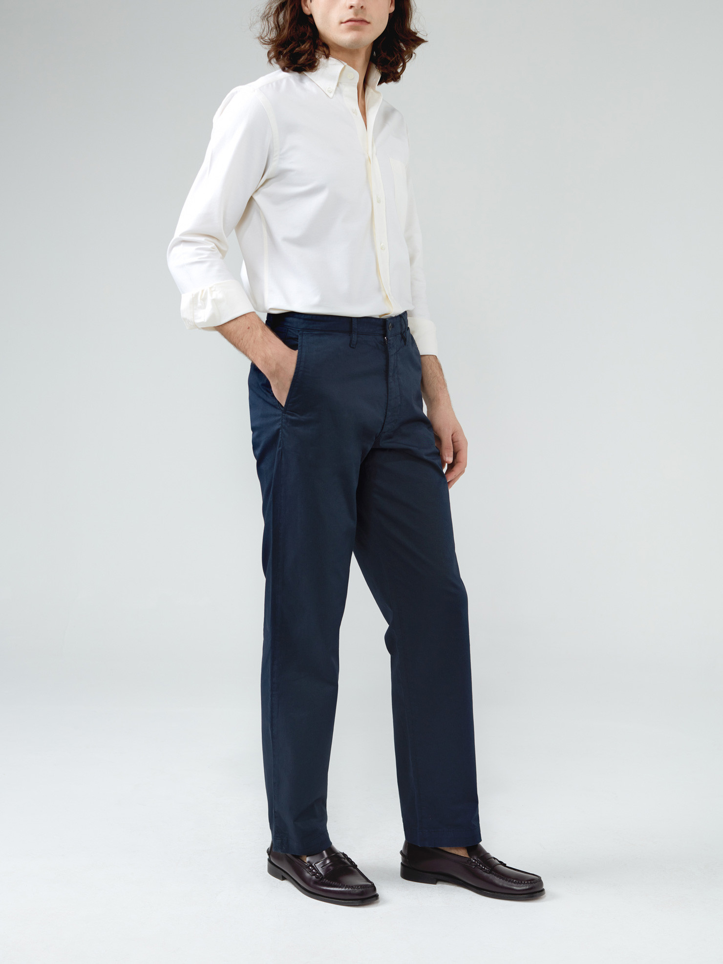 Notre coupe est une coupe droite légèrement ajustée : choisissez votre taille habituelle de pantalon ou de jean (taille US). Nous proposons 3 longueurs de jambe. S'il est un peu long, vous pourrez faire un revers à la main (tout à fait acceptable sur un chino) ou faire faire un ourlet chez votre retoucheur préféré.