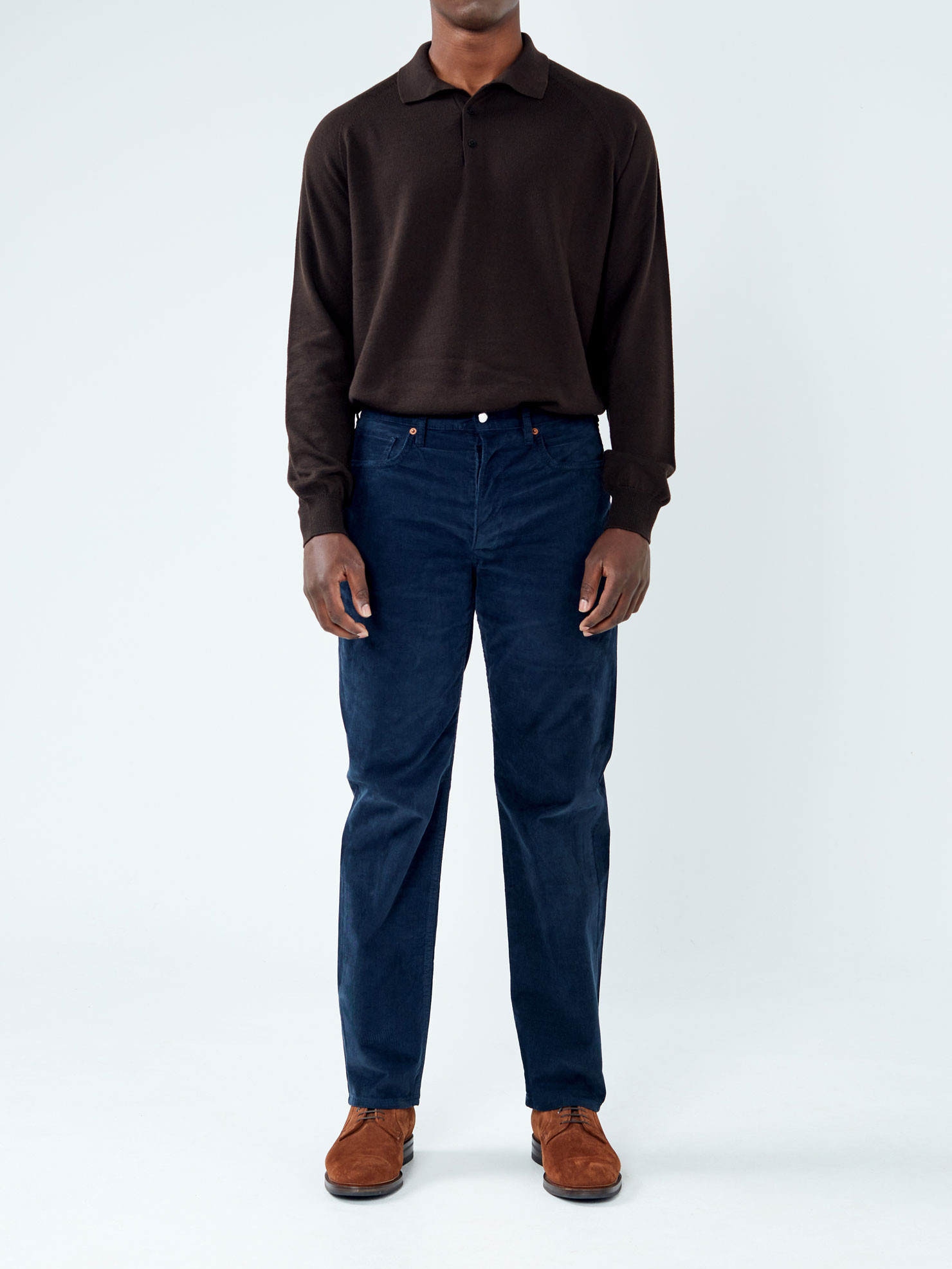 Pull à col polo et manches raglan marron en laine mérinos. Nos pulls sont tricotés dans un atelier spécialiste de la maille dans le nord de l’Italie. Les fils sont tissés et peignés sur place à partir de laine mérinos australienne extrafine. Un pull doux, confortable et chaud. Chaque pull est fabriqué à l’unité, à votre taille.