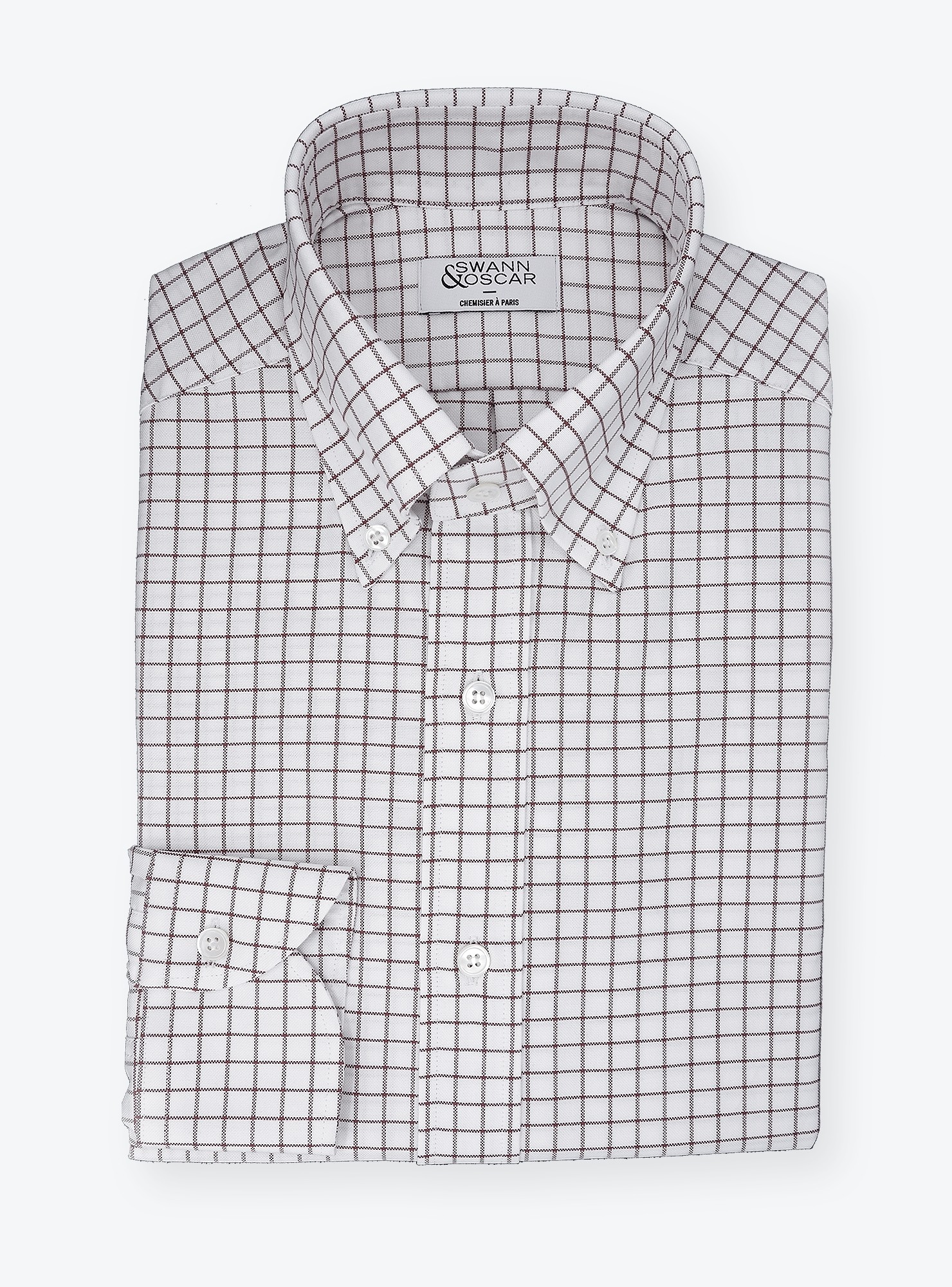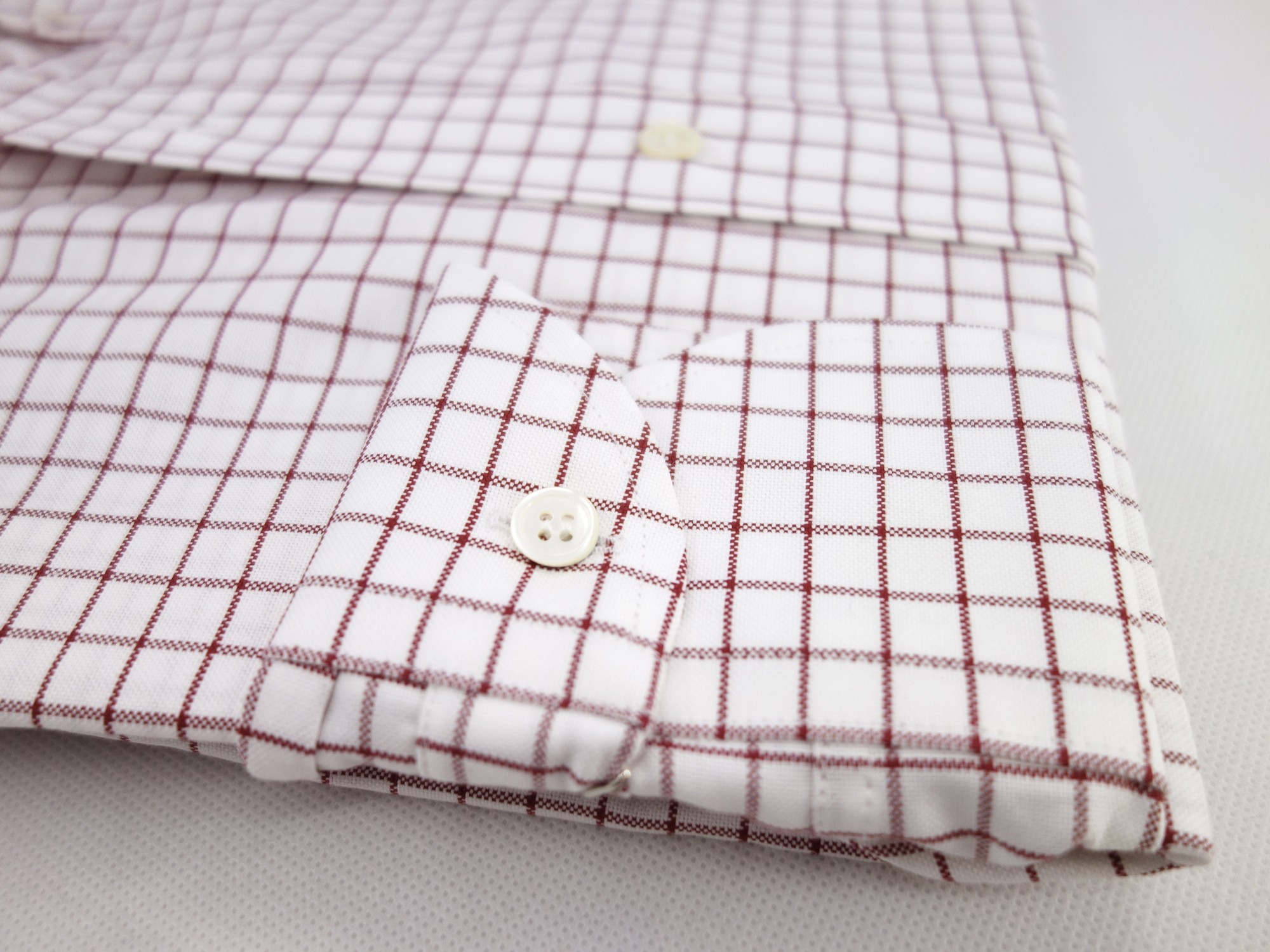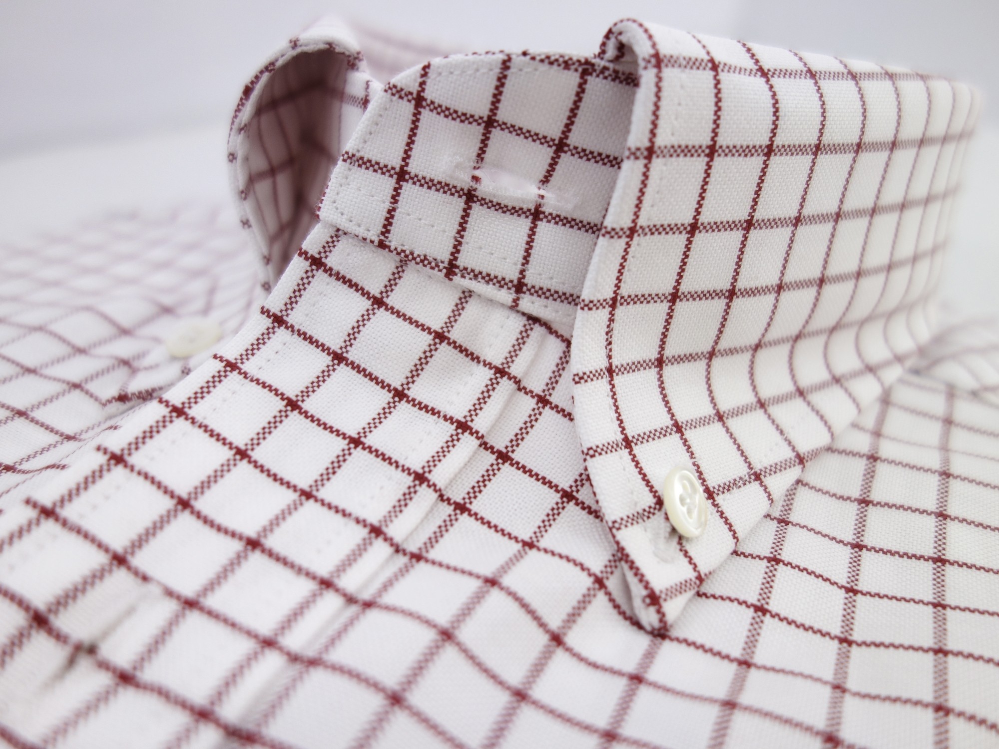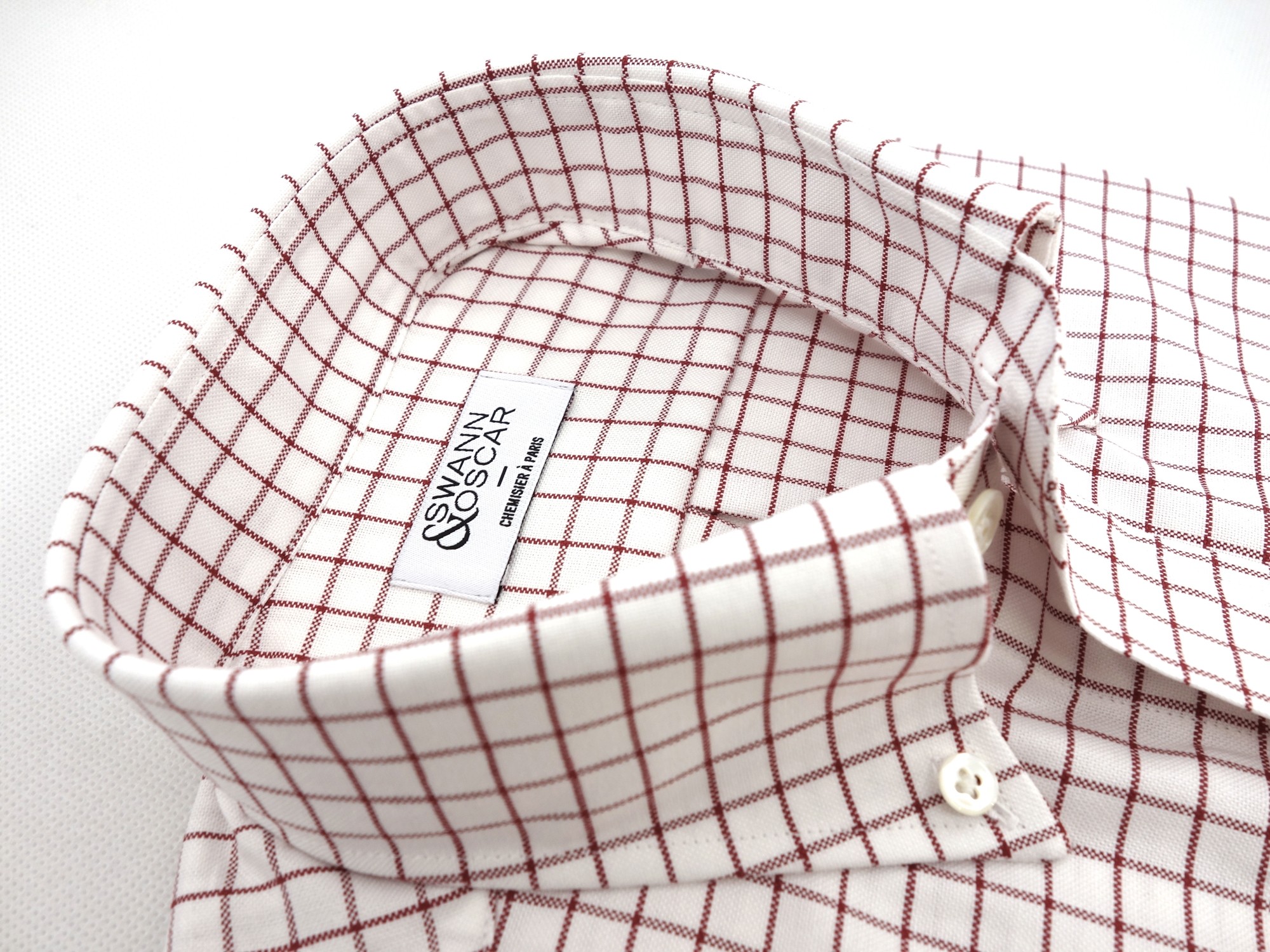 Oxford retors de chez Mileta. Un tissu épais avec une bonne tenue. Carreaux rouge bordeaux.