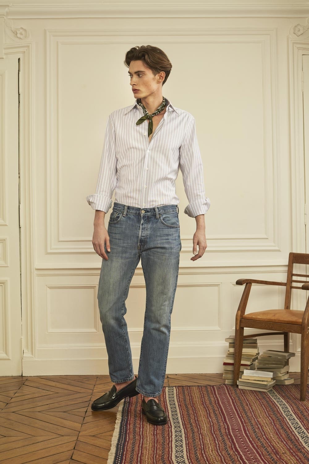 Oxford rayé bleu et rouge Thomas Mason. Un grand classique, une construction solide à porter hiver comme été qui va se patiner et gagner en confort avec le temps. Les larges rayures lui donne un aspect vintage très réussi.