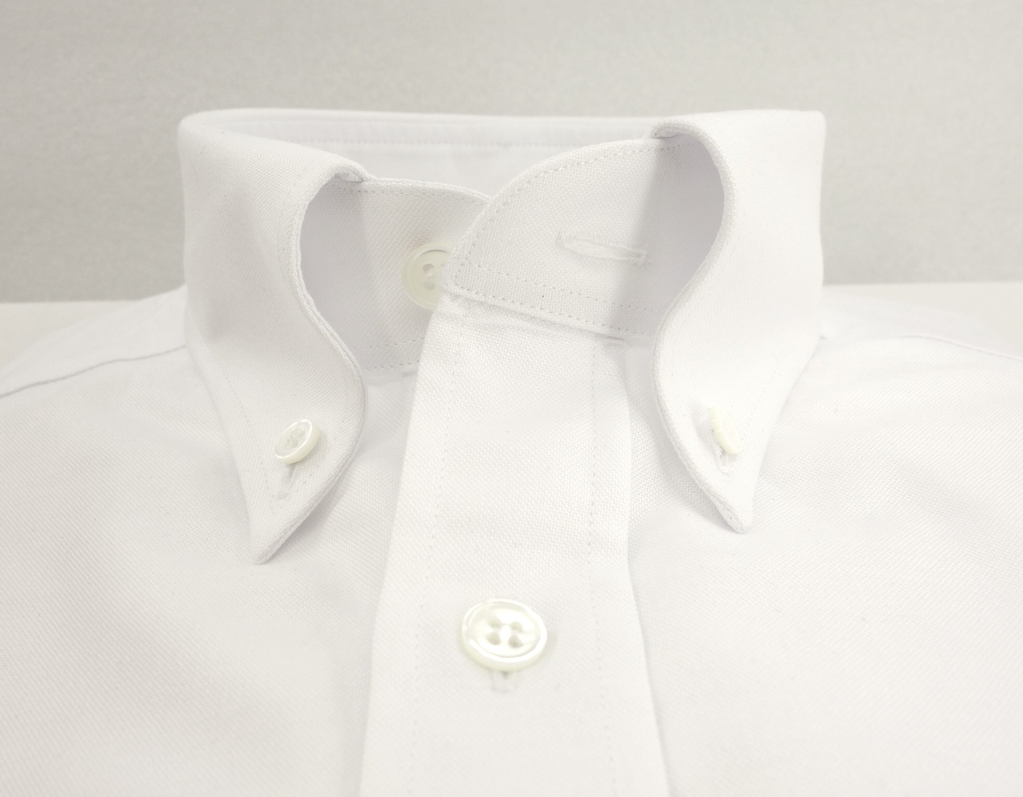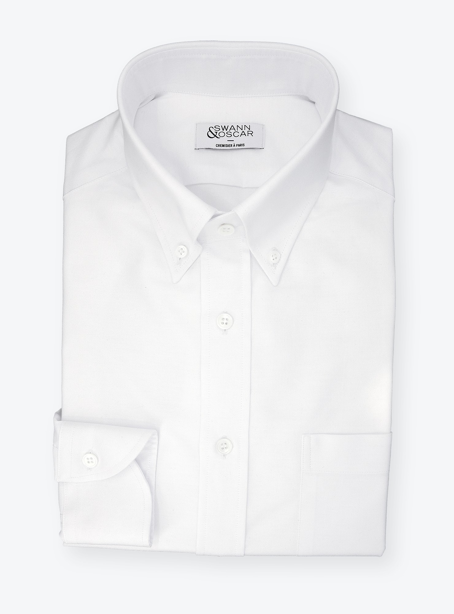 Oxford retors uni blanc de chez Mileta. Un tissu épais avec une bonne tenue, une valeur sure. Nous vous conseillons d'opter pour un col boutonné, une gorge américaine et une poche, la vraie chemise collège.