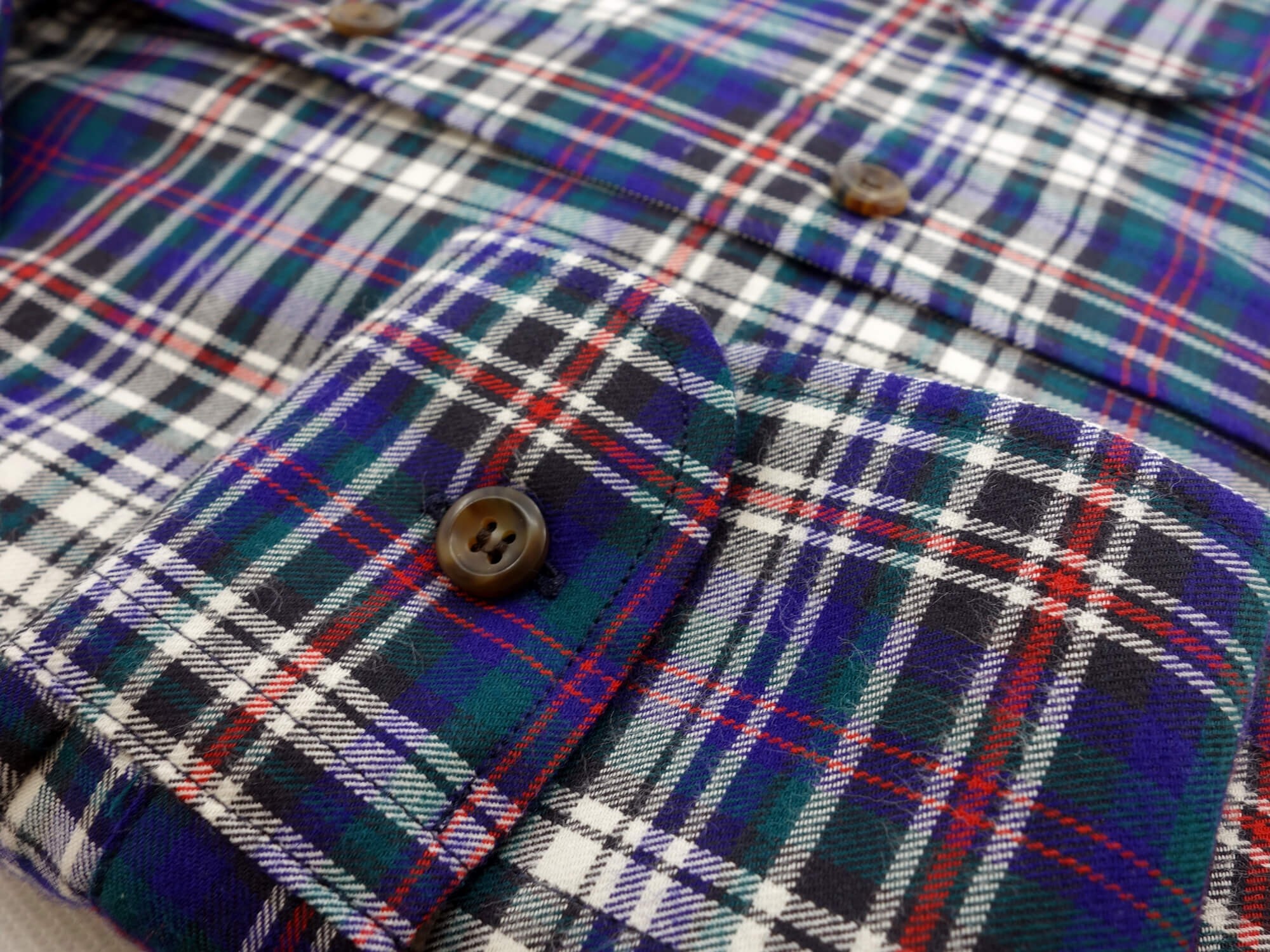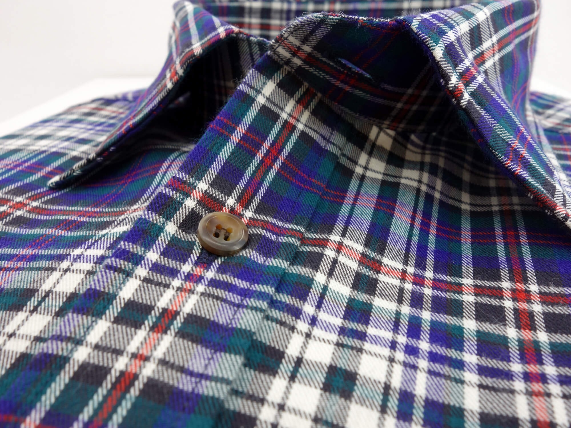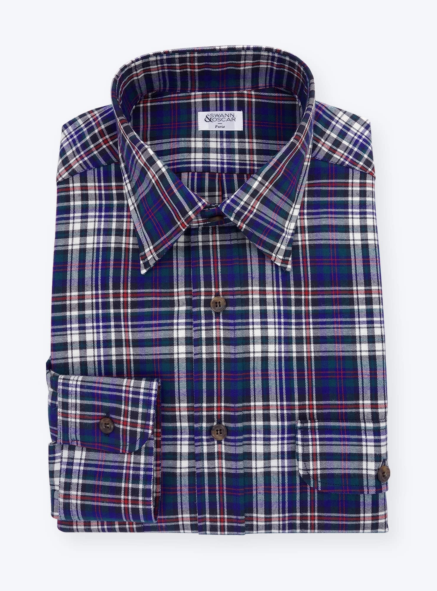 Flanelle de coton Thomas Mason bleu et rouge, un dessin scottish pour une chemise à carreaux d'hiver